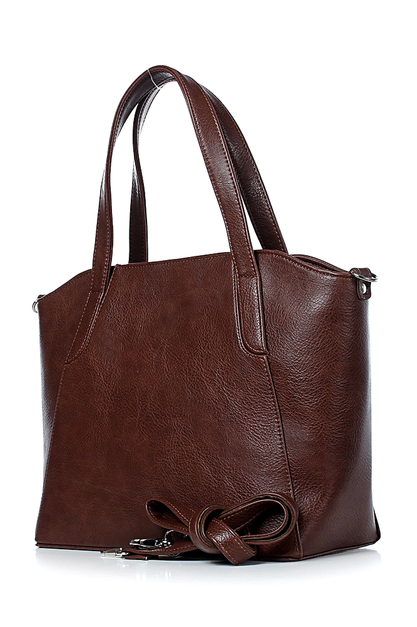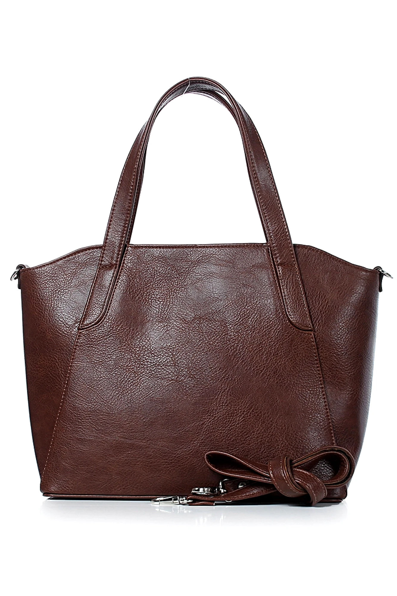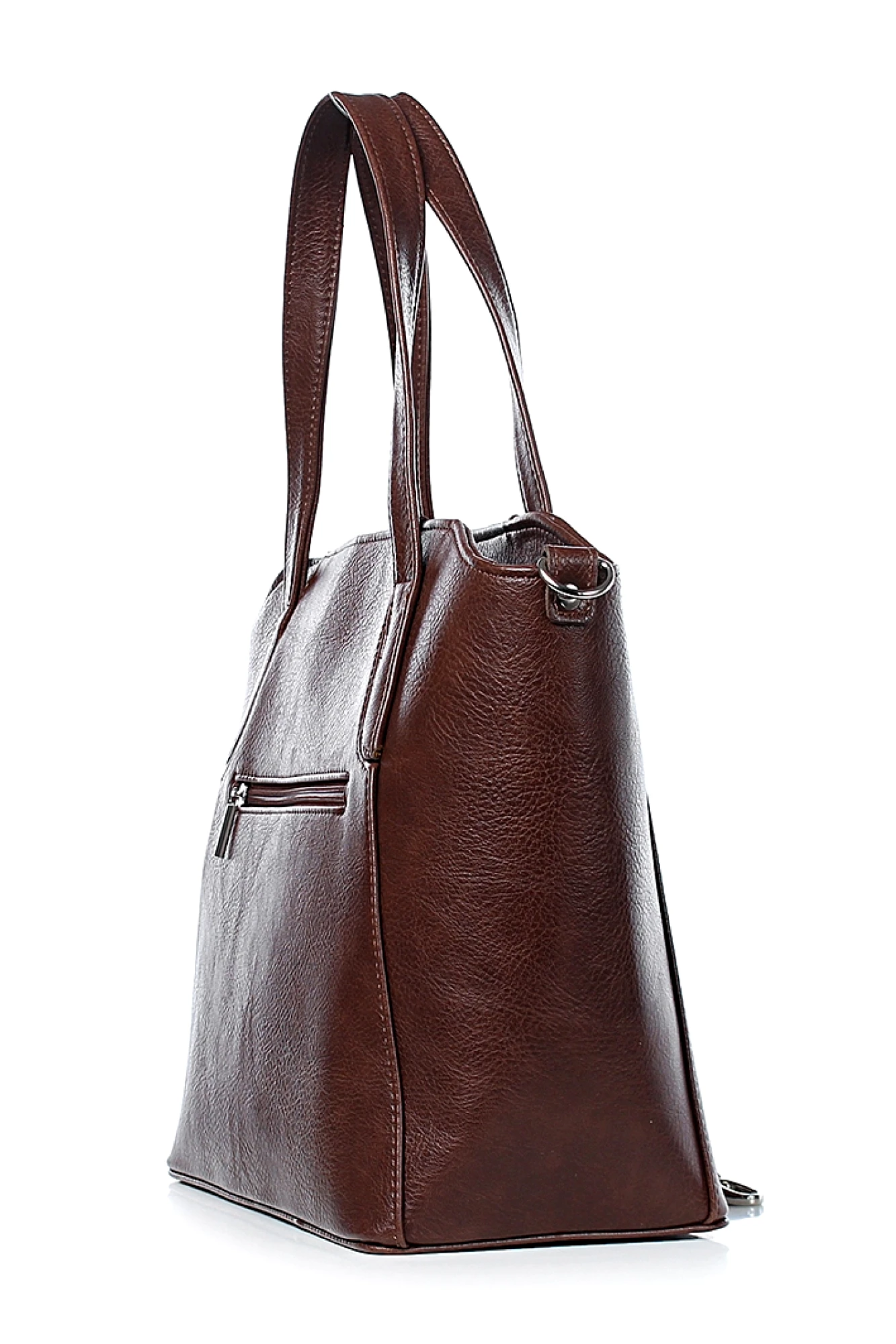 Женская сумка из искусственной кожи жесткой конструкции — элегантное сочетание строгих форм и функциональности. Одно основное отделение, надежно закрывающееся на застежку-молнию, гарантирует безопасность и порядок ваших вещей. Сумка оснащена двумя прочными ручками для комфортного ношения в руке, а съемный ремень-ручка с боковыми держателями позволяет носить её на плече или через плечо, меняя образ и удобство по вашему желанию. На задней стенке расположен карман на молнии — удобное место для мелочей, требующих быстрого доступа. Внутреннее пространство организовано максимально рационально: подкладка, открытый карман для нужных в быстром доступе предметов, подвесной карман на молнии и карман-перегородка, разделяющая сумку на два отделения и закрывающаяся на застежку-молнию. Такая конструкция позволяет поддерживать порядок и комфорт при использовании. Строгий и лаконичный дизайн объединяет стиль с практичностью, делая эту сумку идеальным выбором для деловых и повседневных образов.