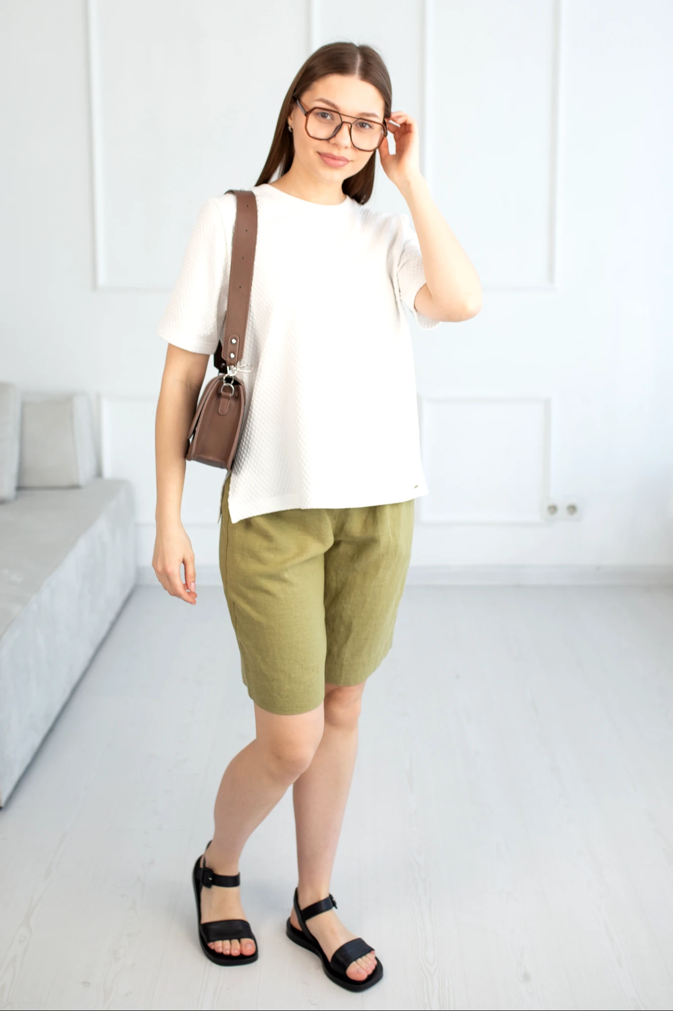 • Блузка с запахом - визуально скрывает объем груди.