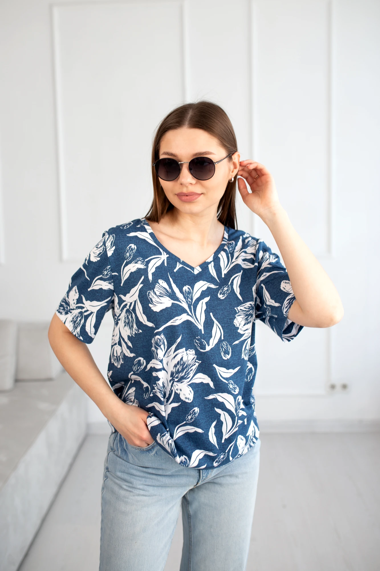 • Блузка с V –образным вырезом горловины – такая модель, наглядно делает больше длину вашей шеи.