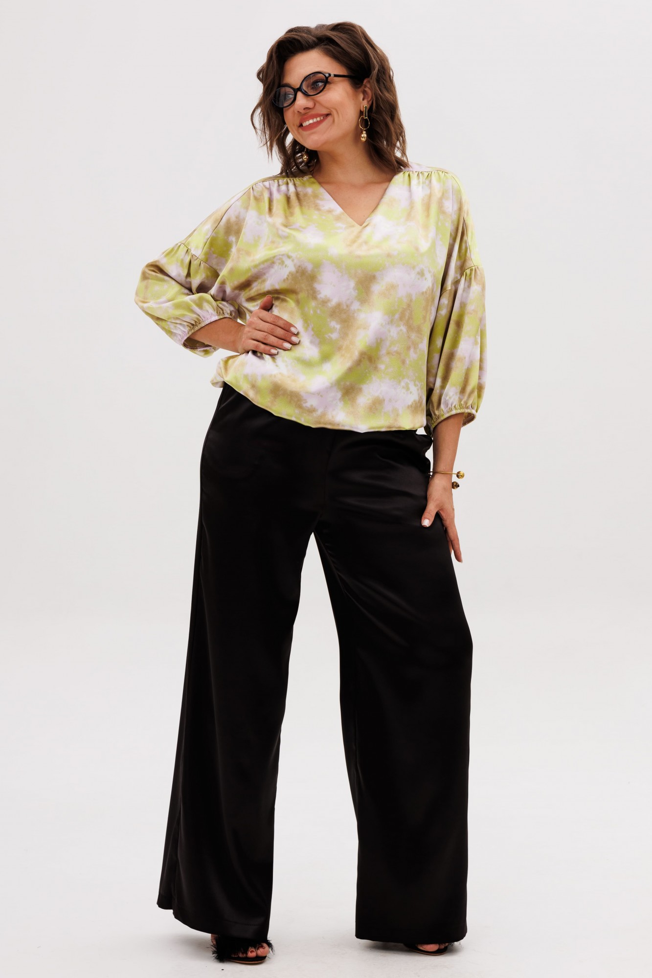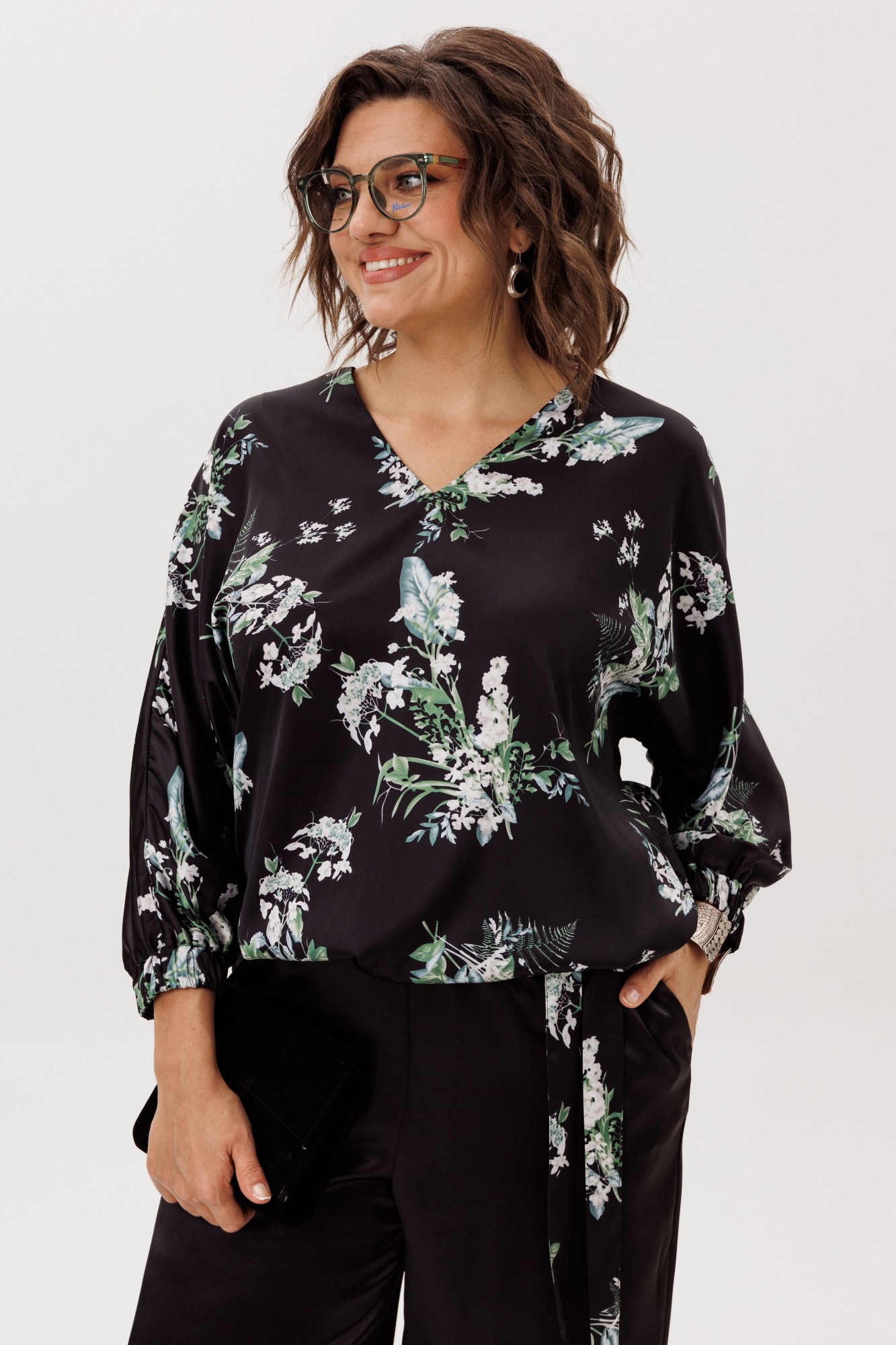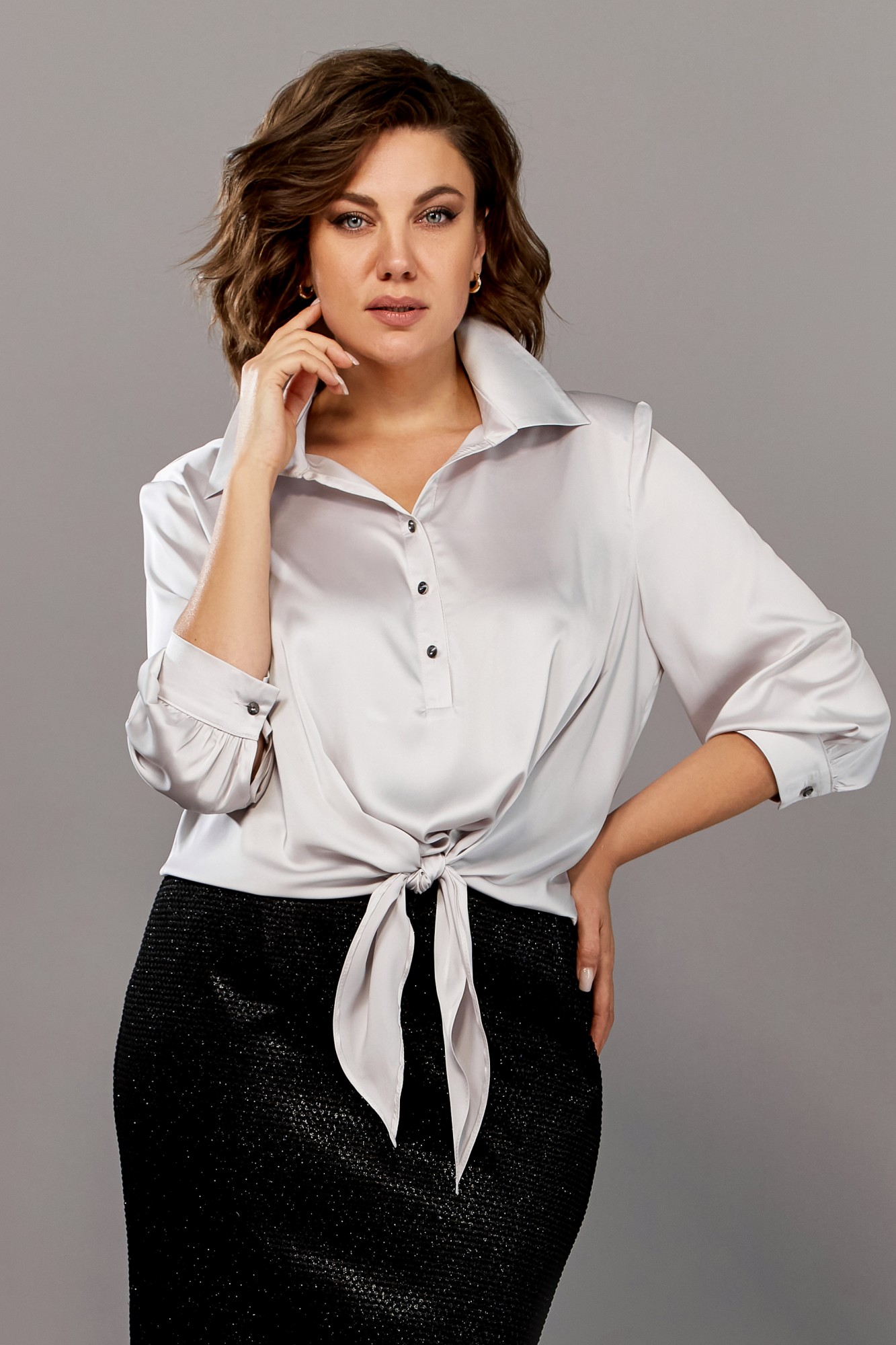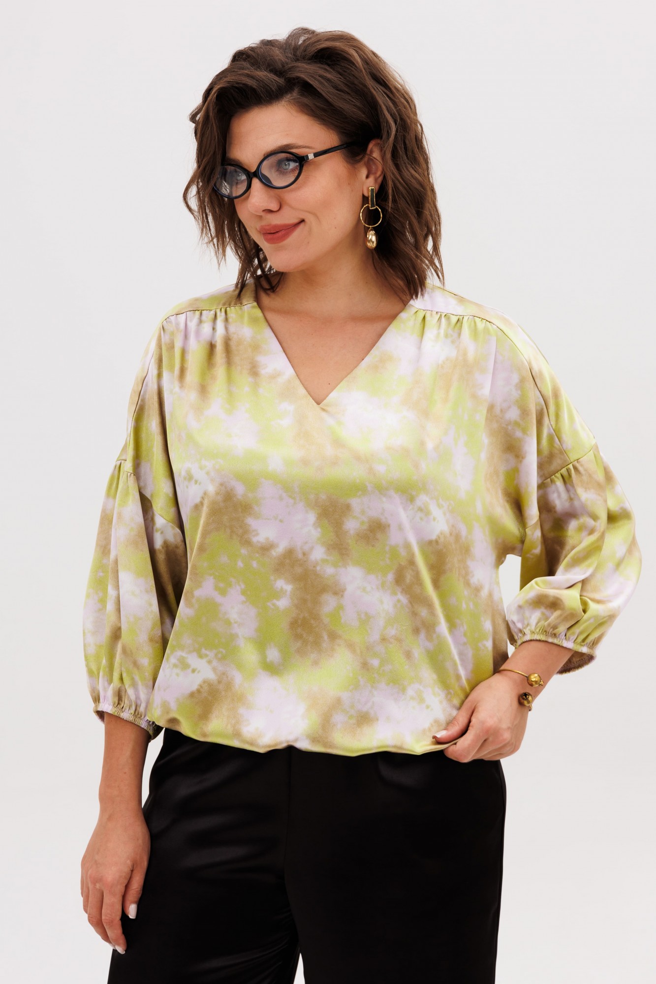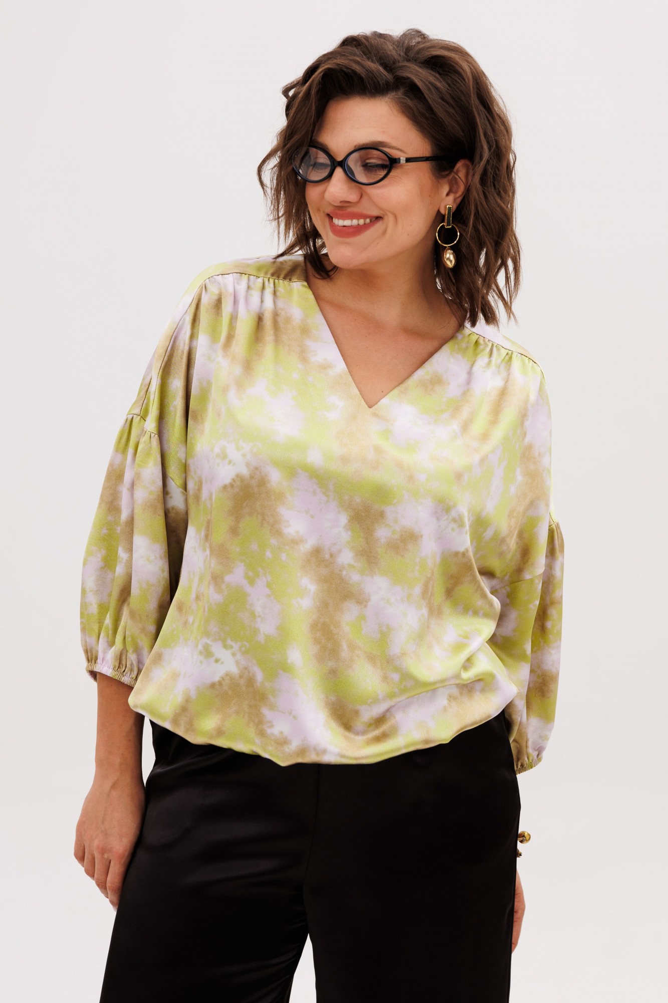 • Блузка с запахом - визуально скрывает объем груди.