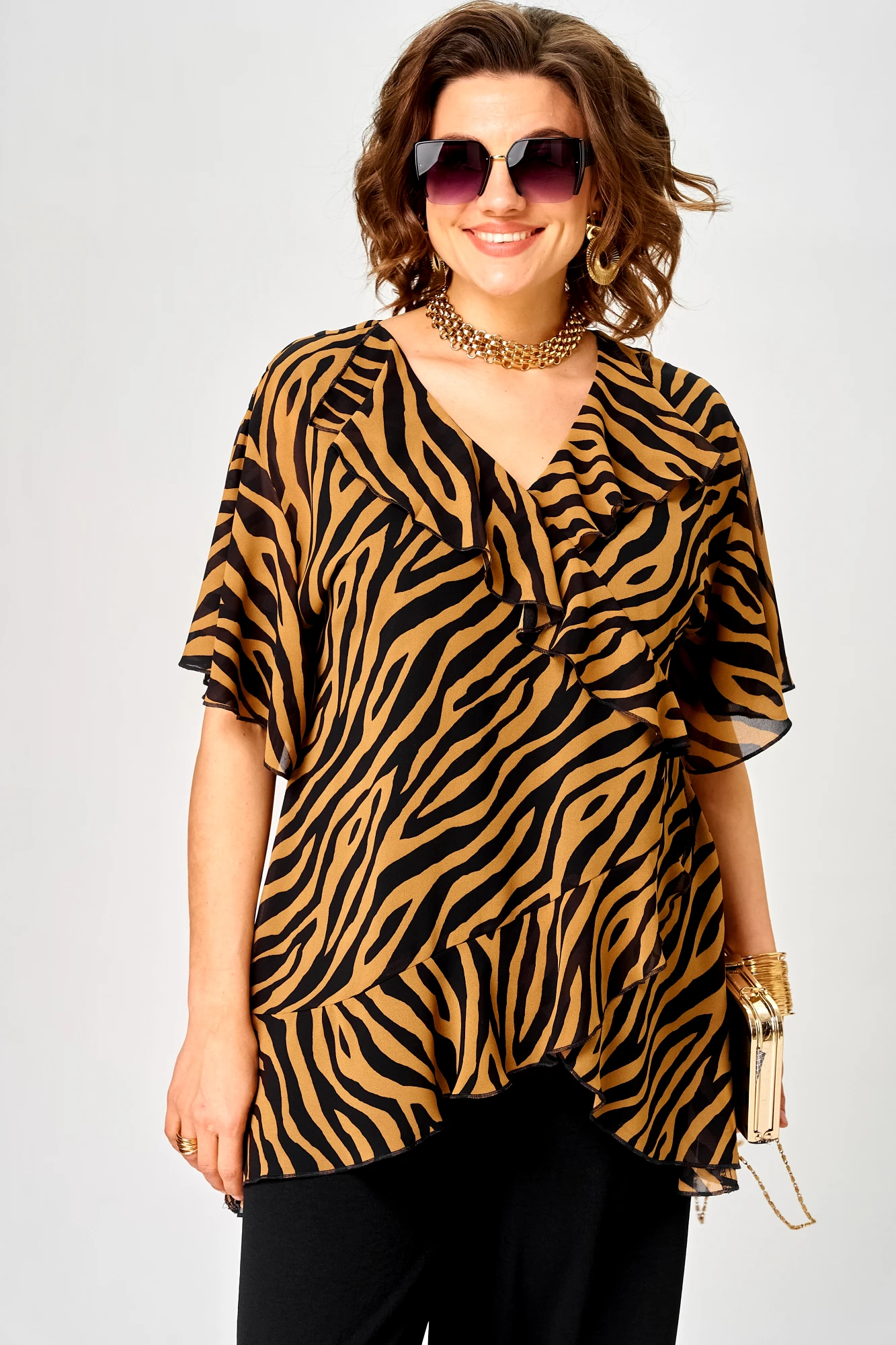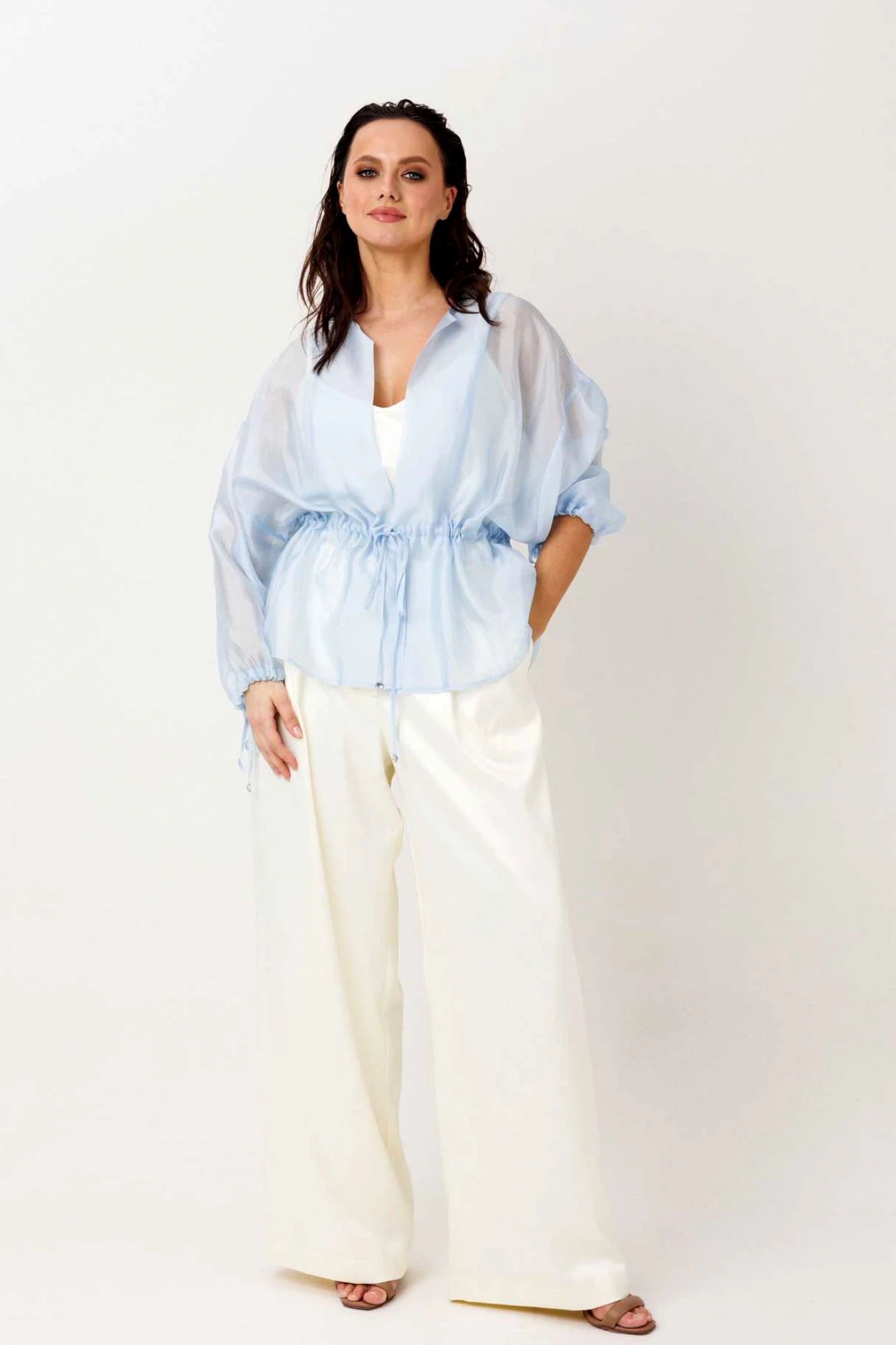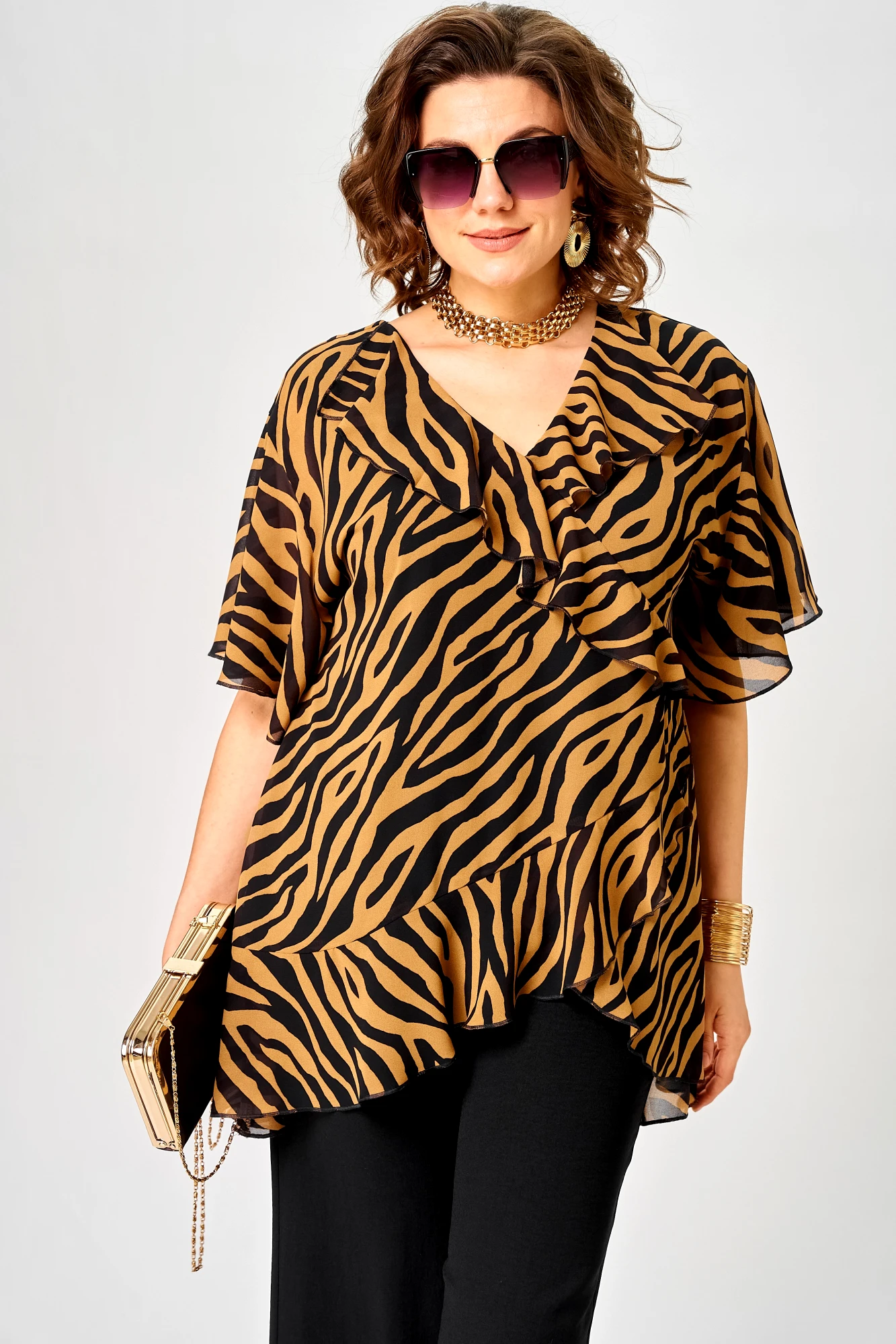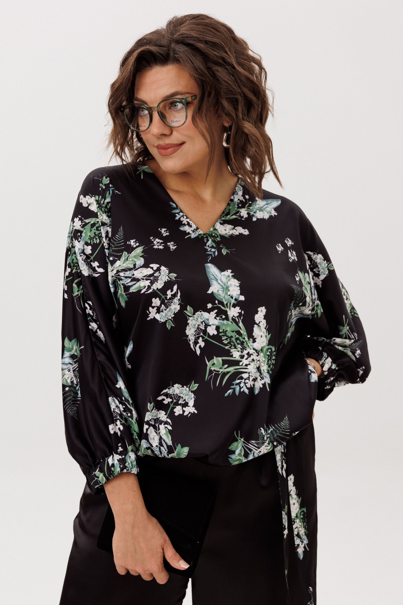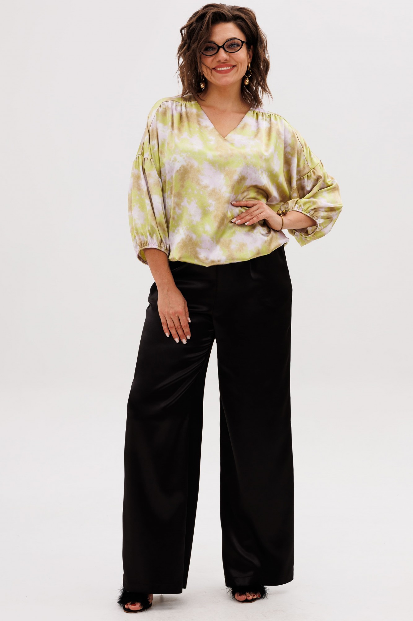 • Блузка с запахом - визуально скрывает объем груди.