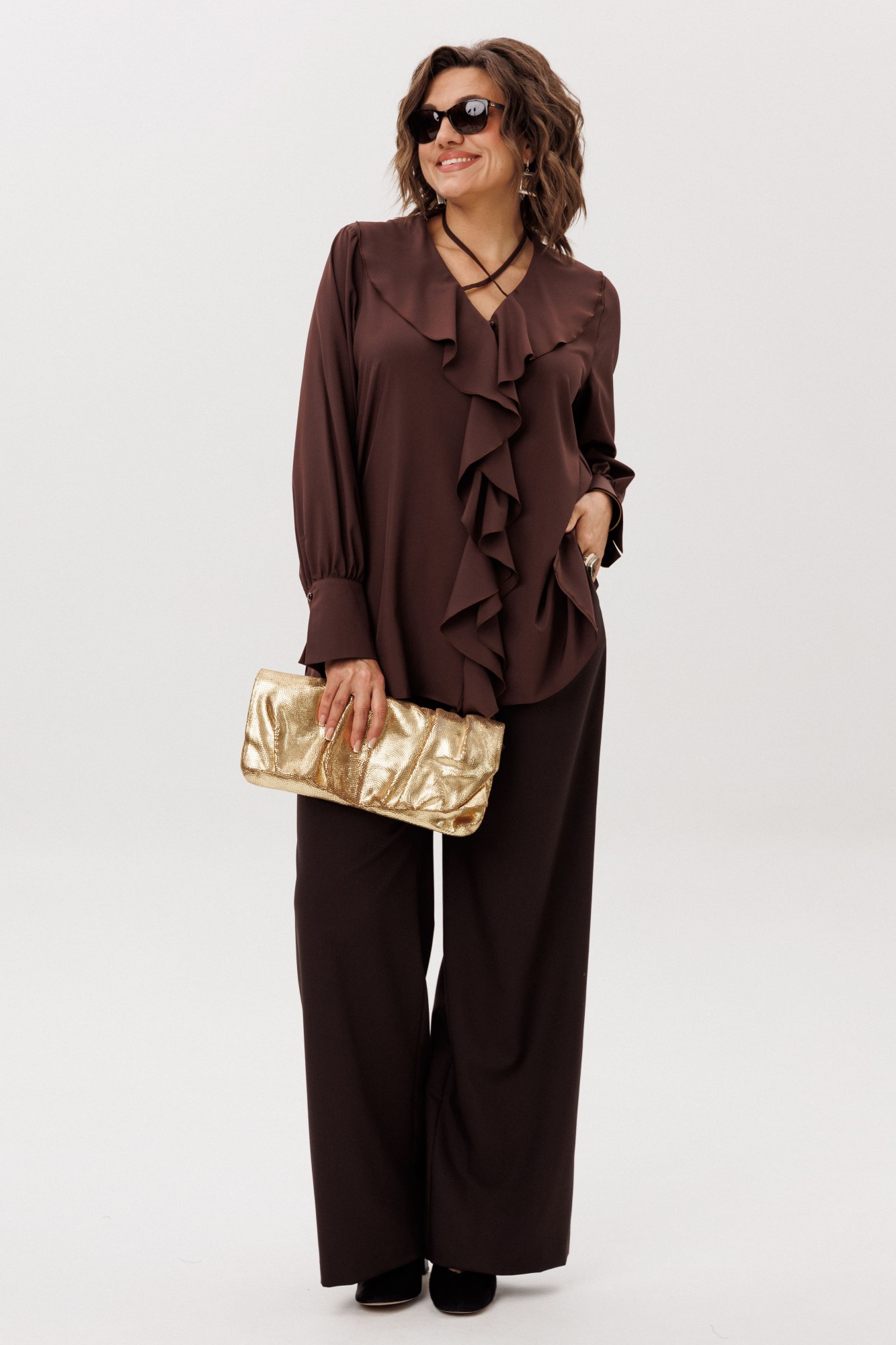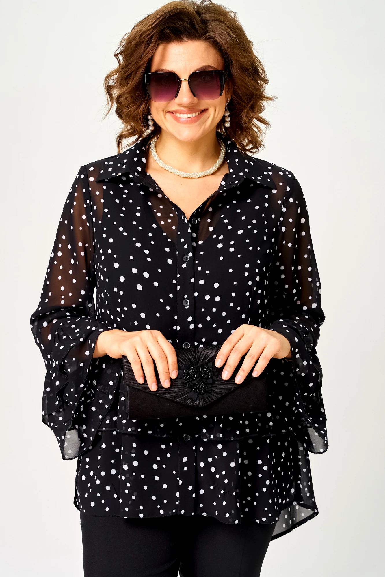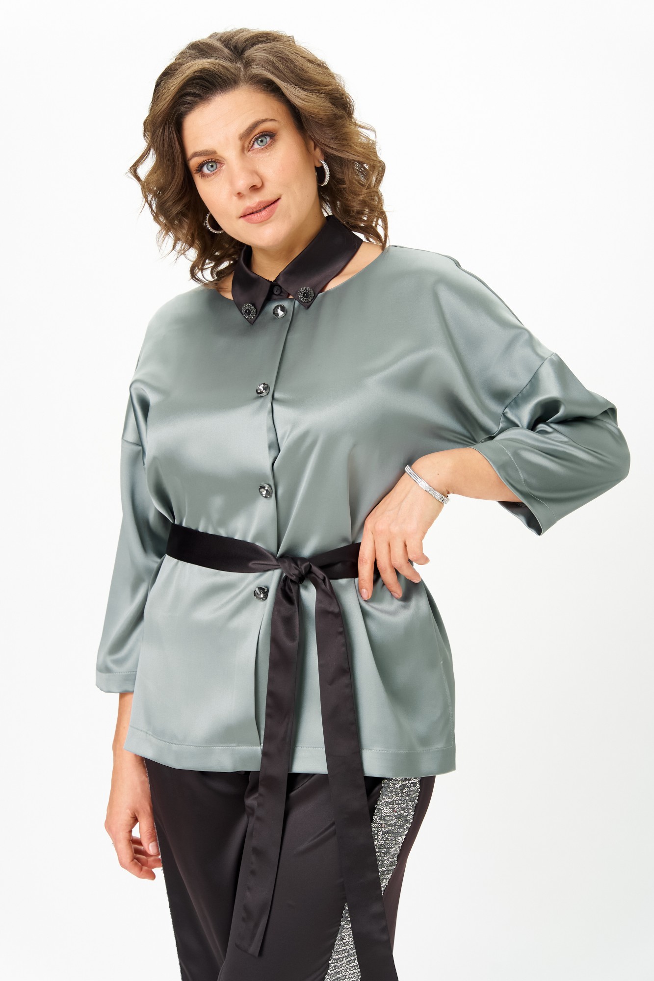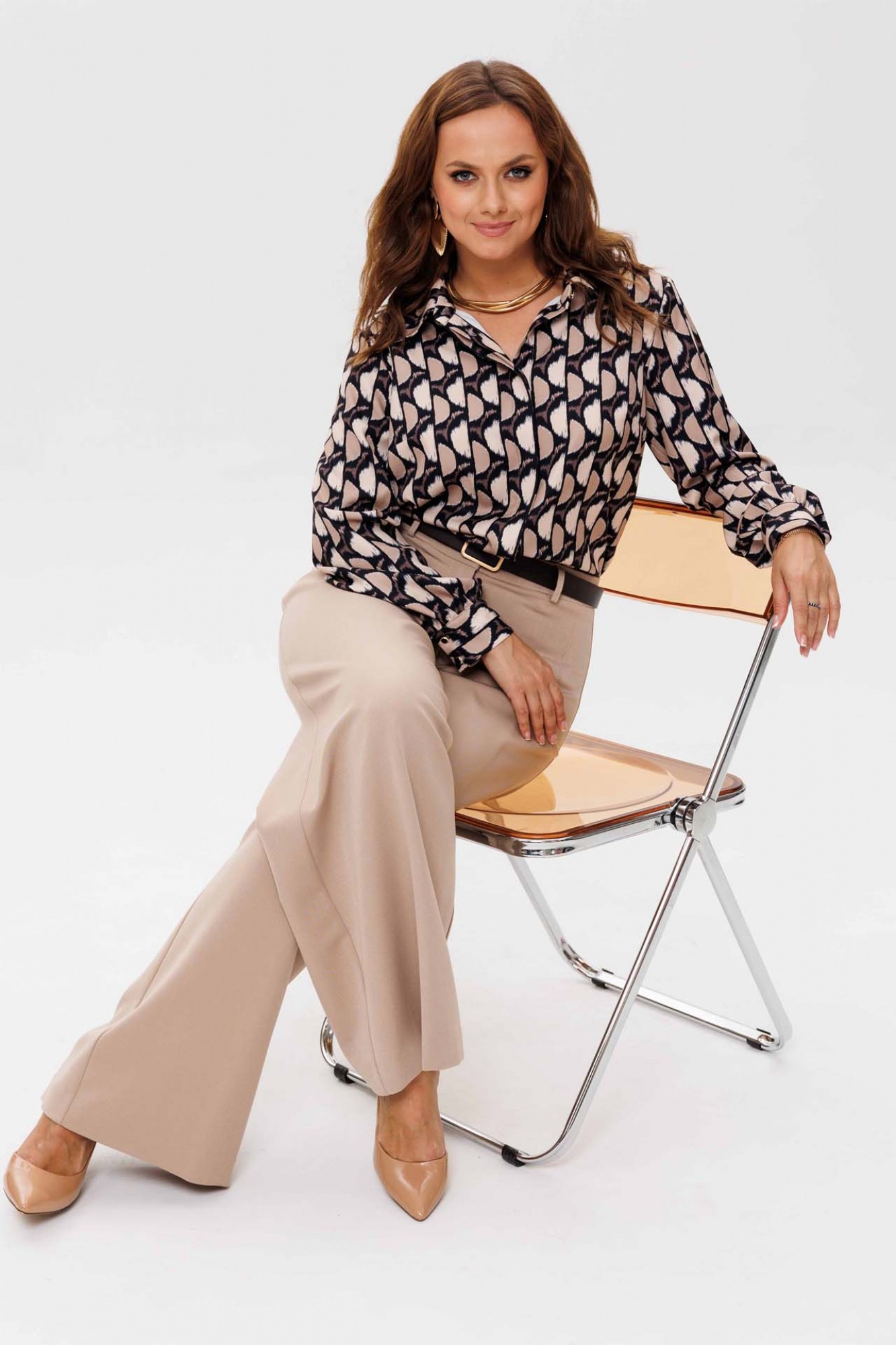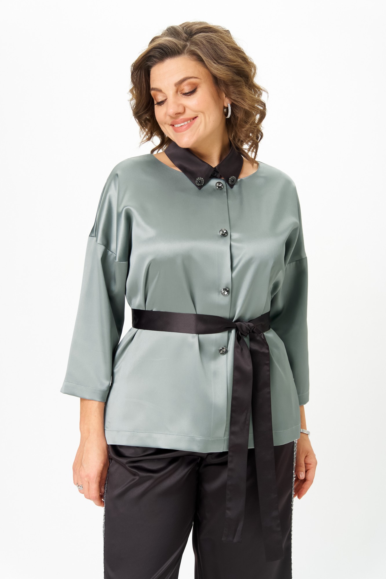 • Блузка с запахом - визуально скрывает объем груди.