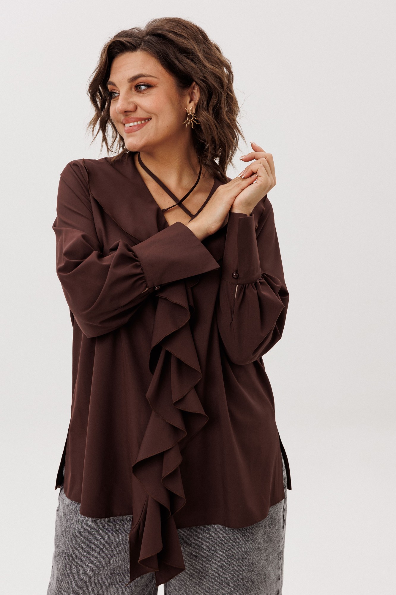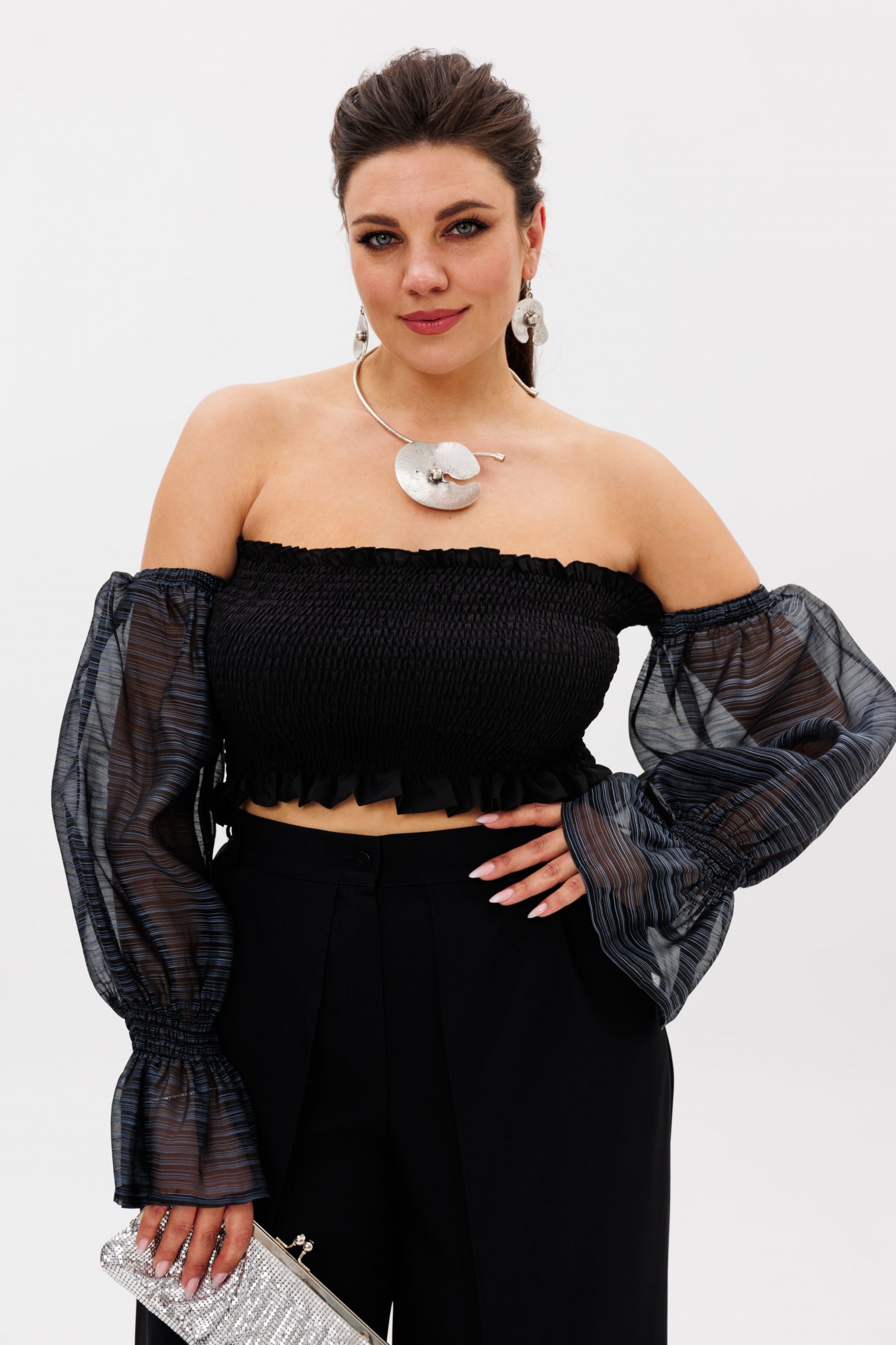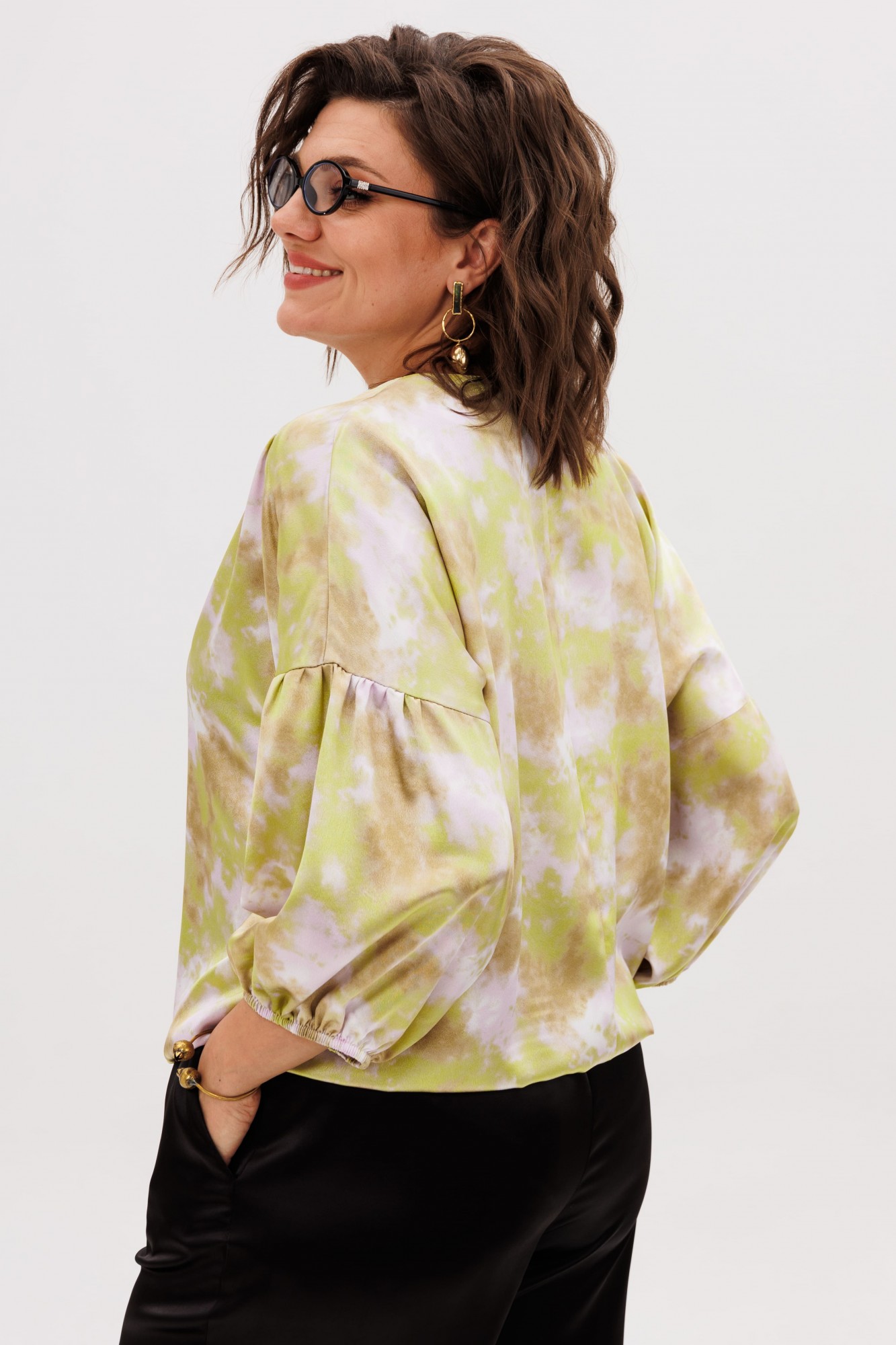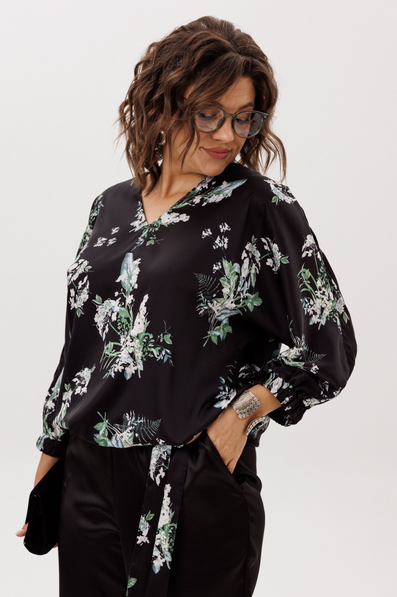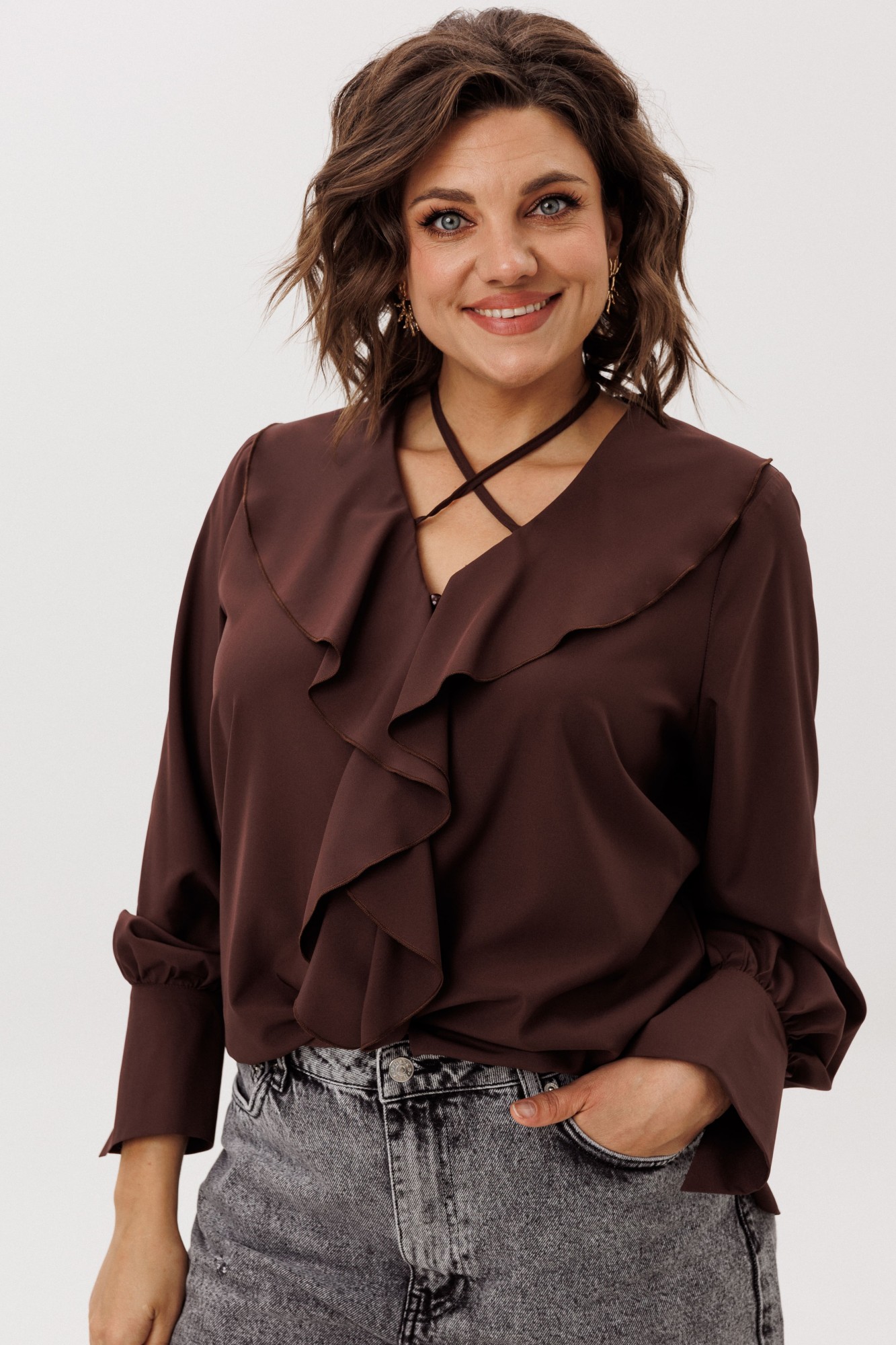 • Блузка с запахом - визуально скрывает объем груди.