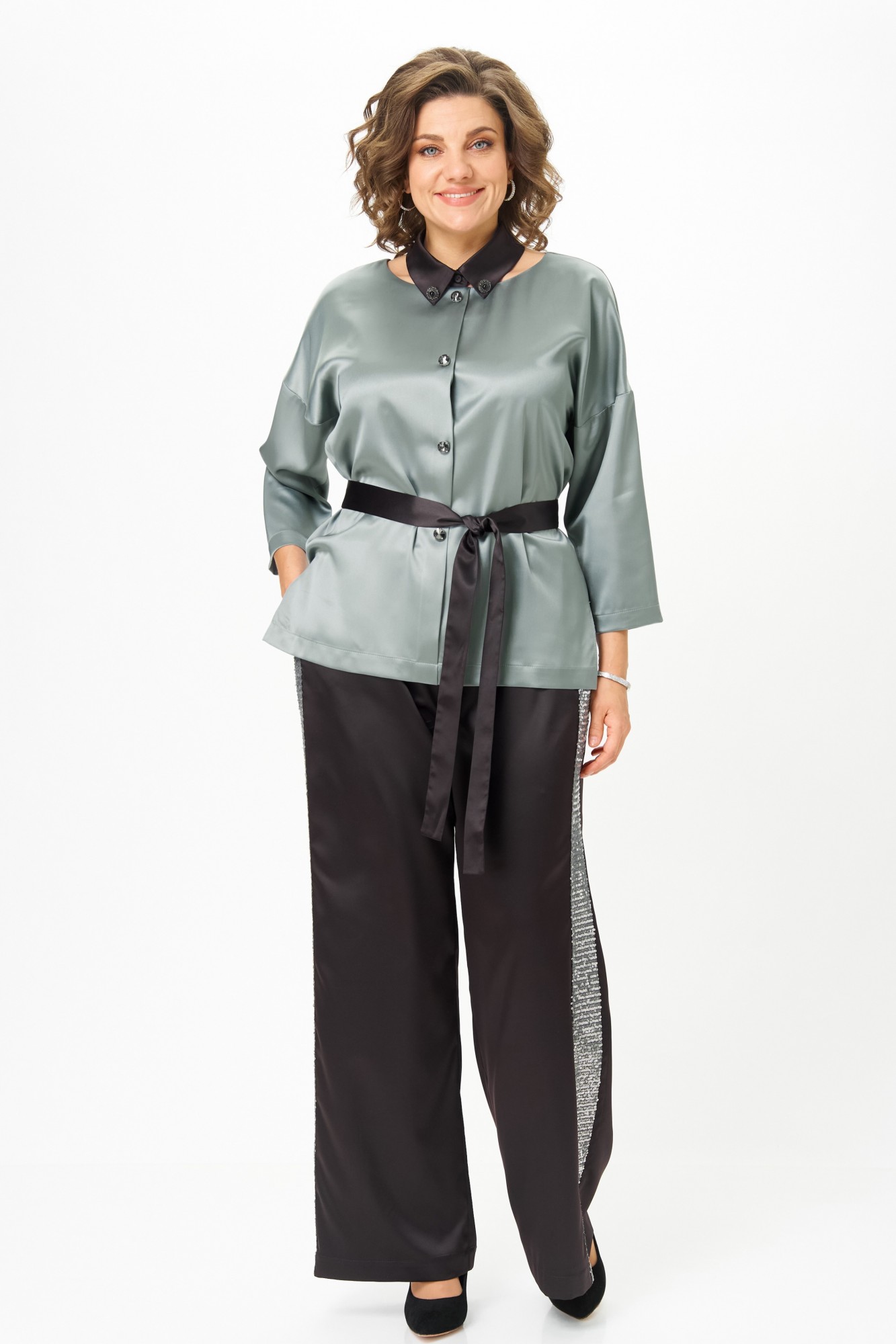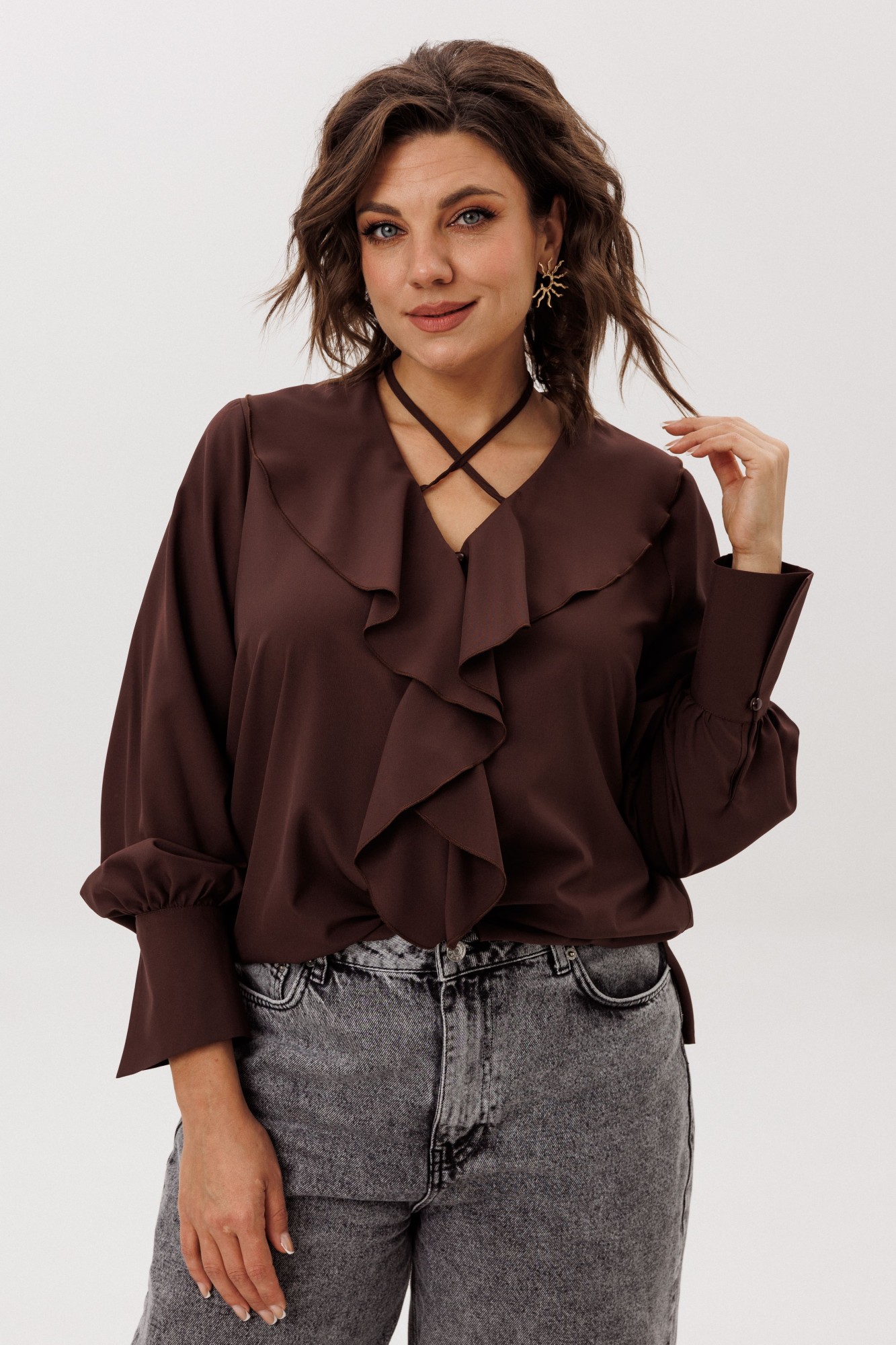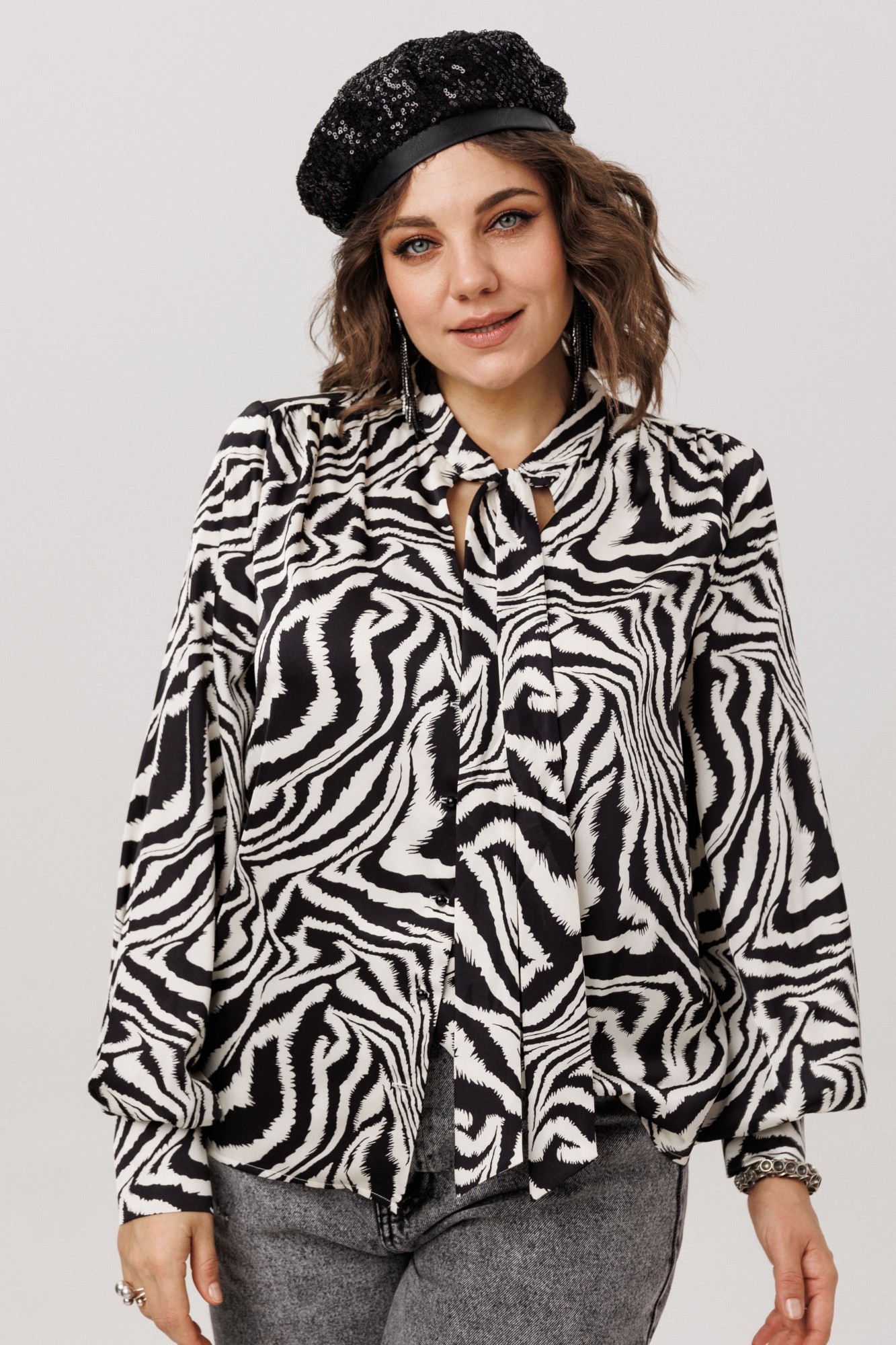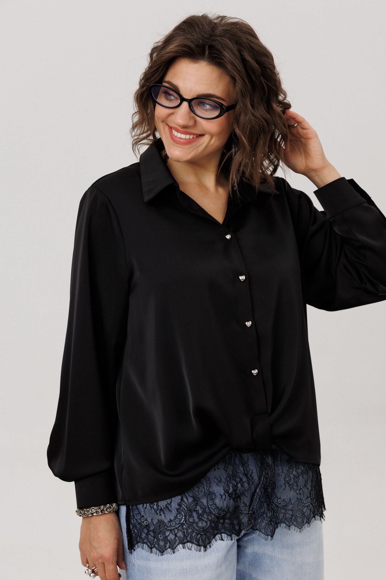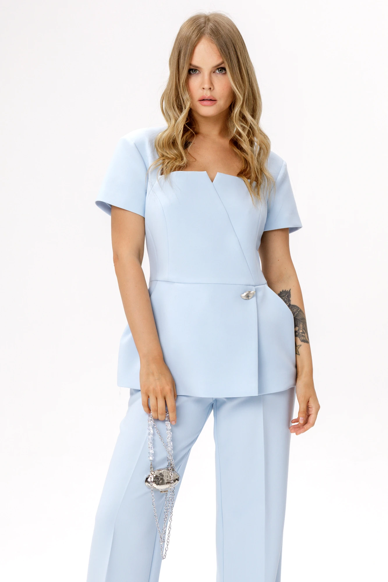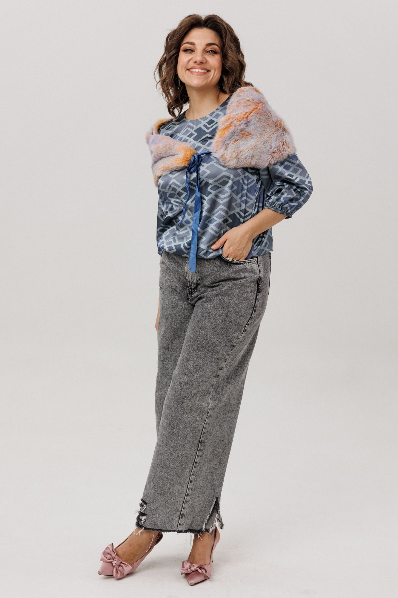 • Блузка с запахом - визуально скрывает объем груди.