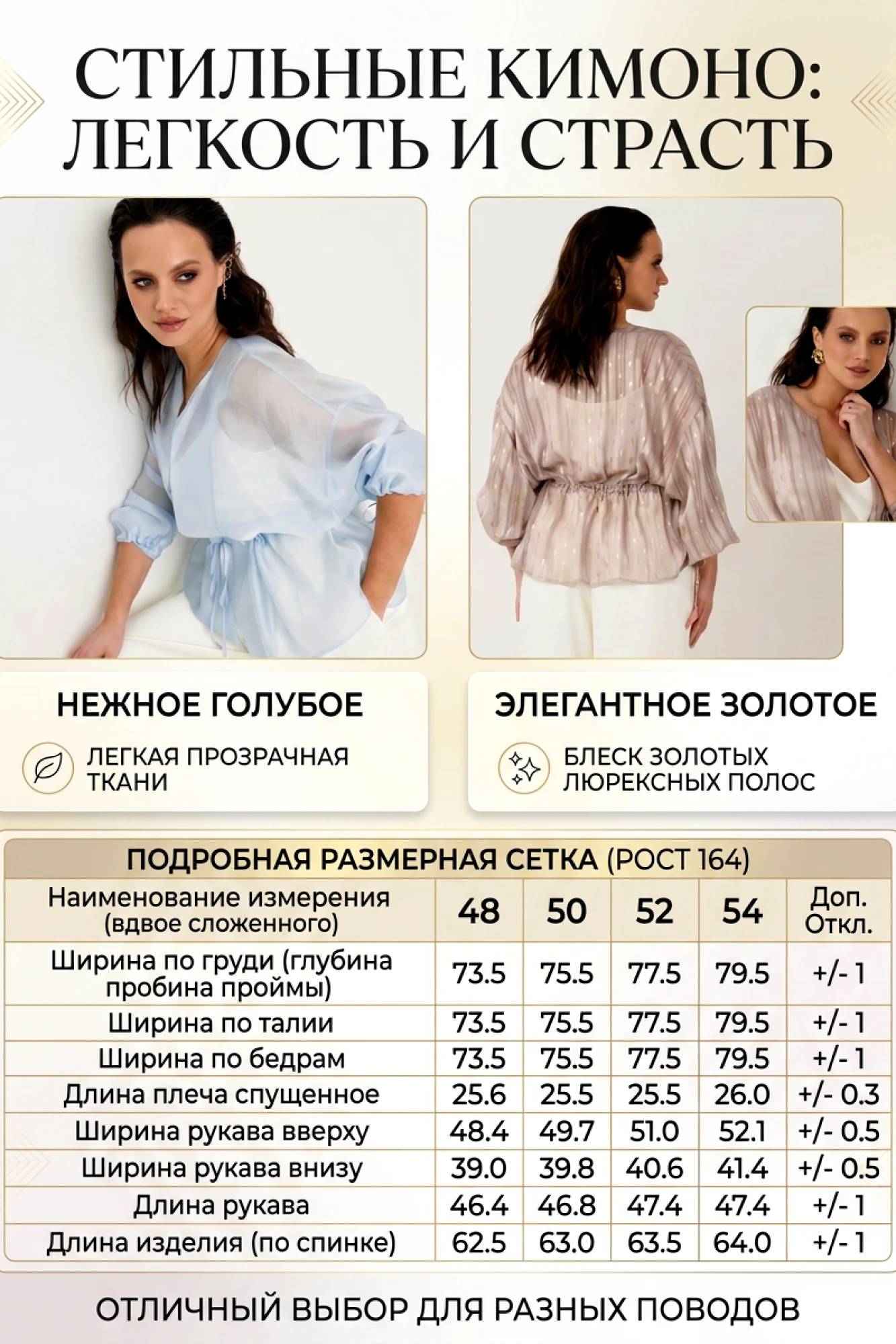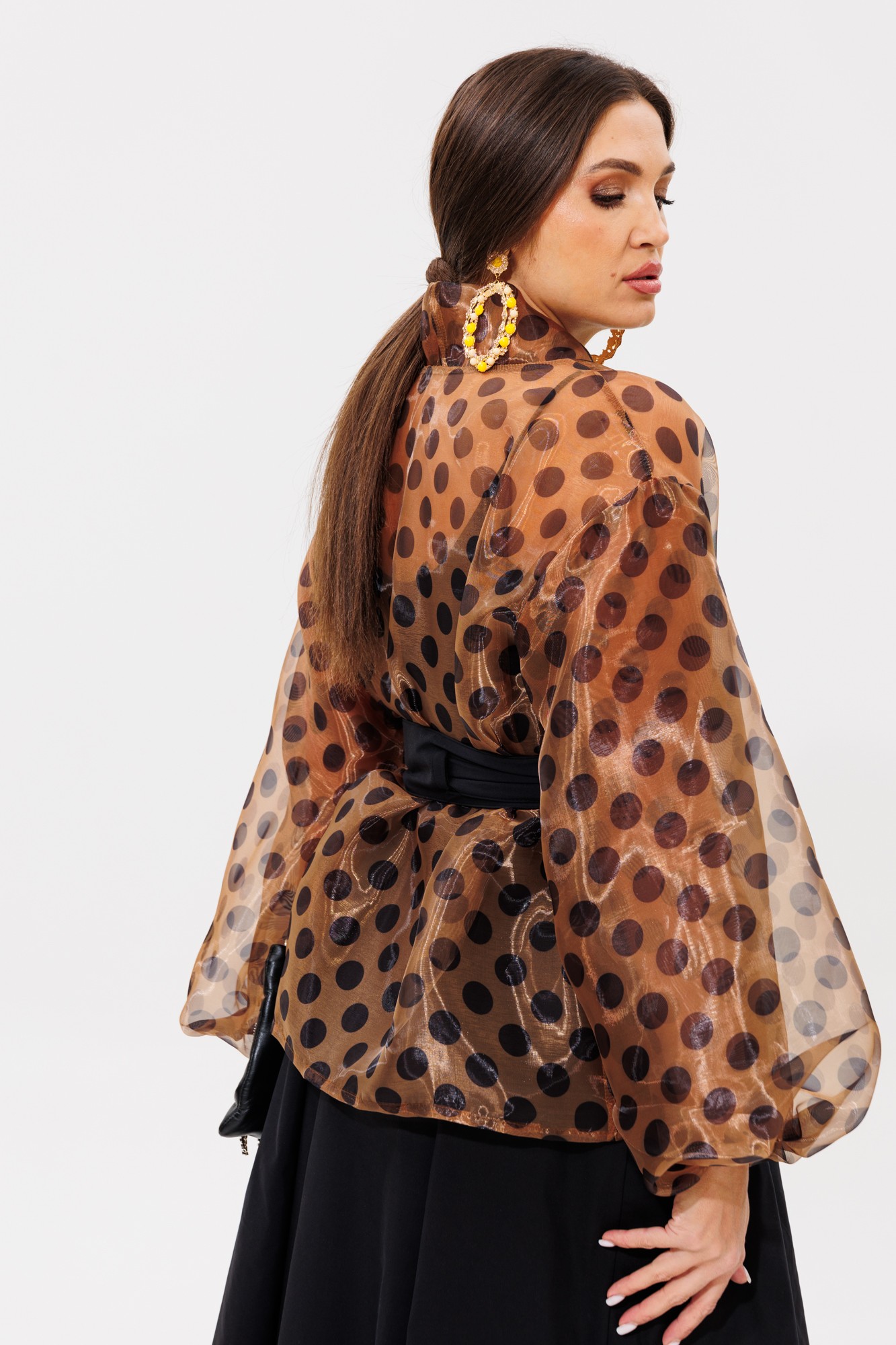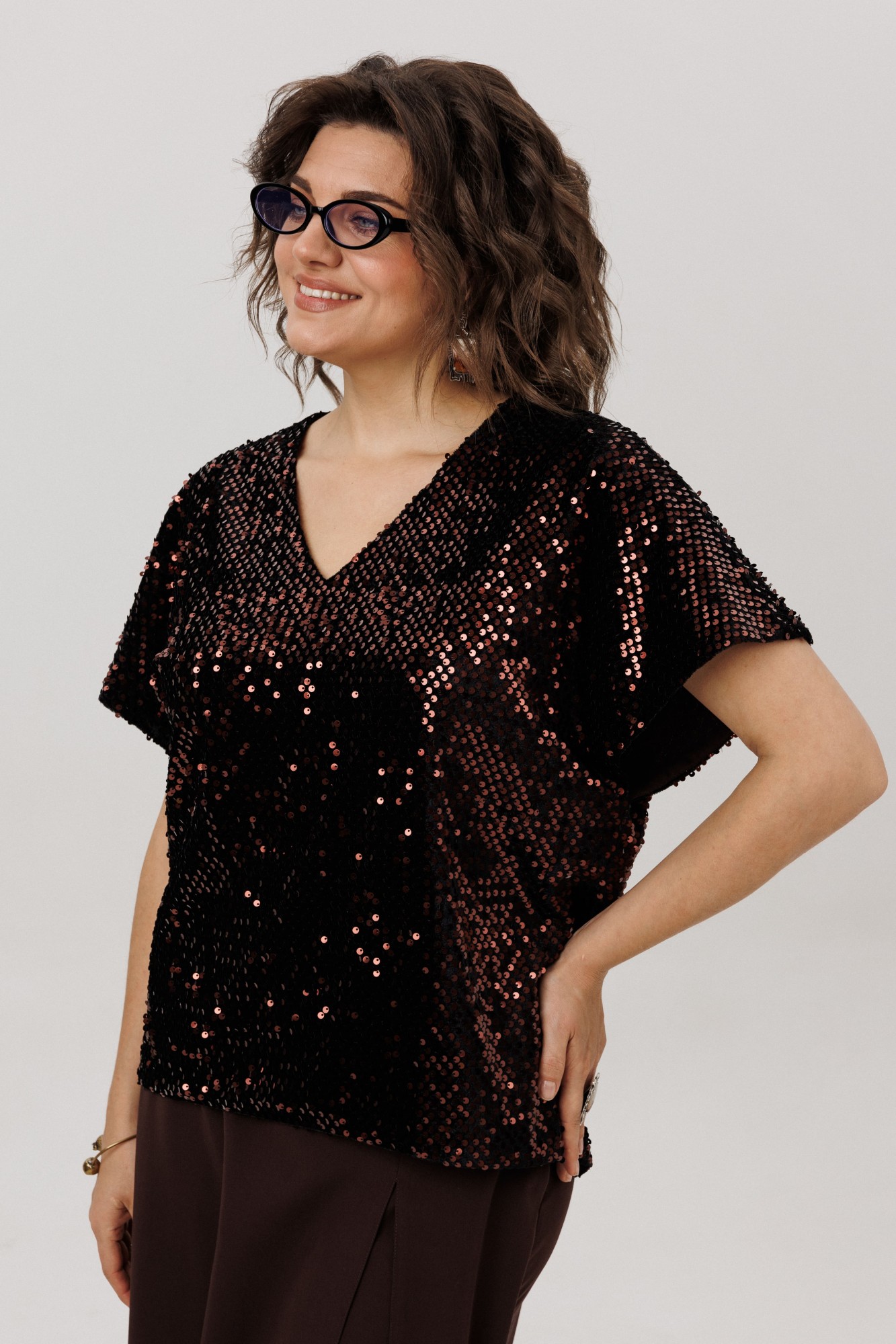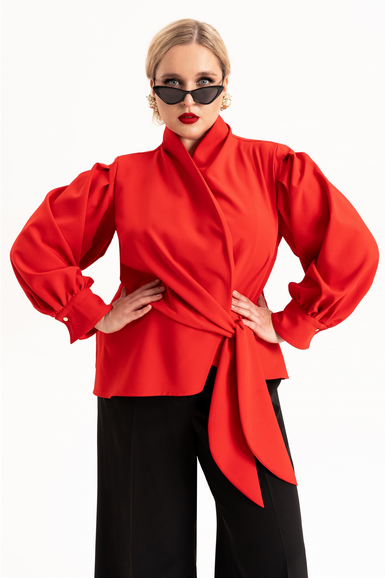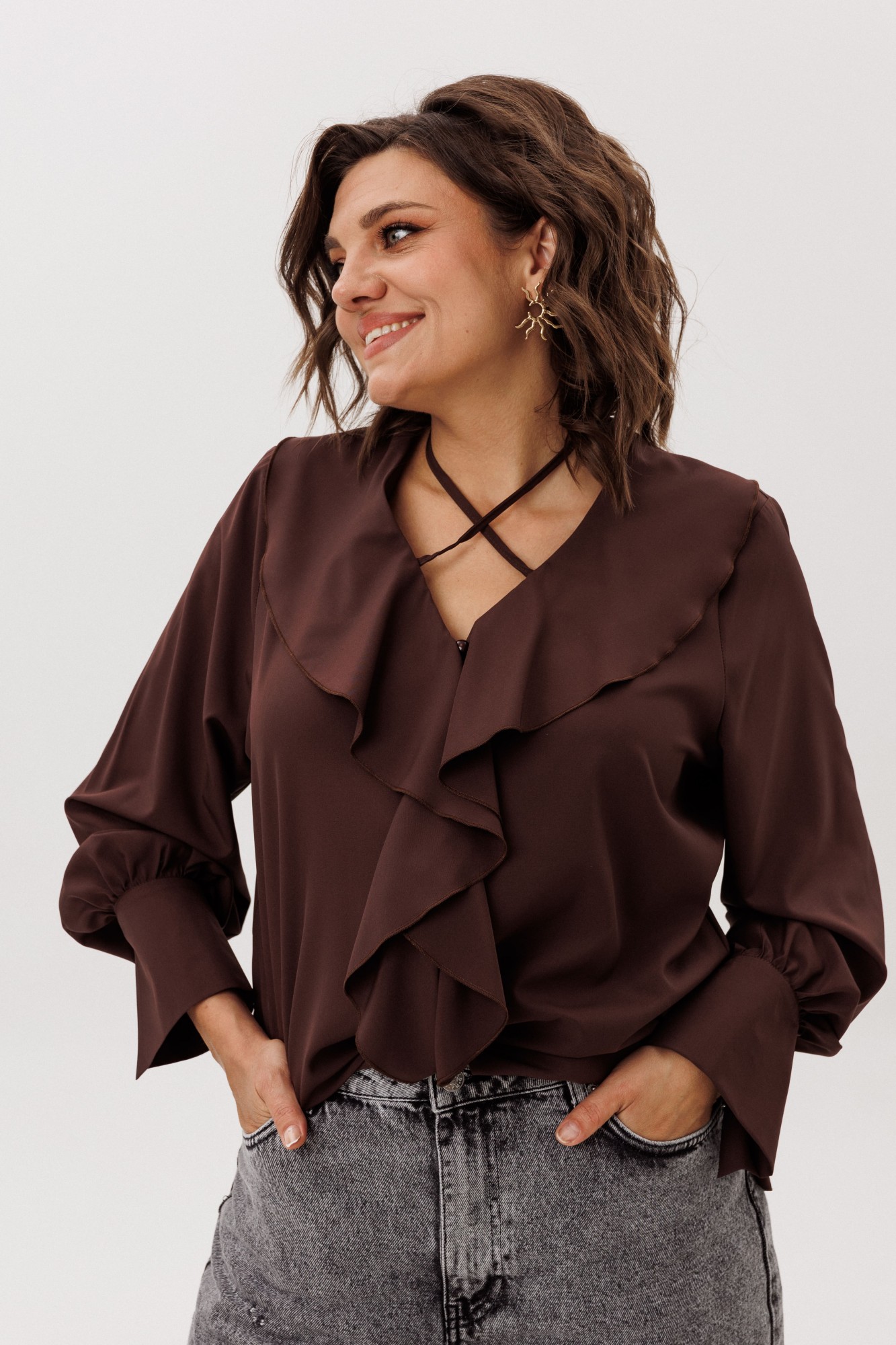 • Блузка с запахом - визуально скрывает объем груди.