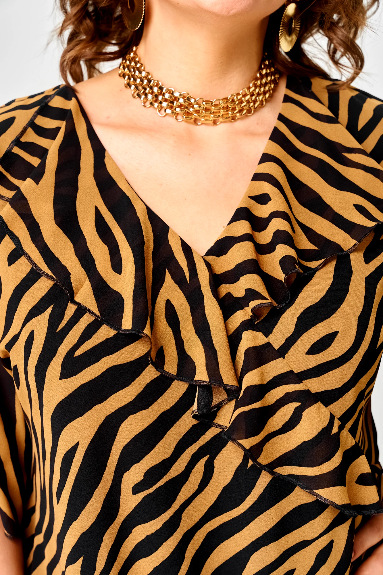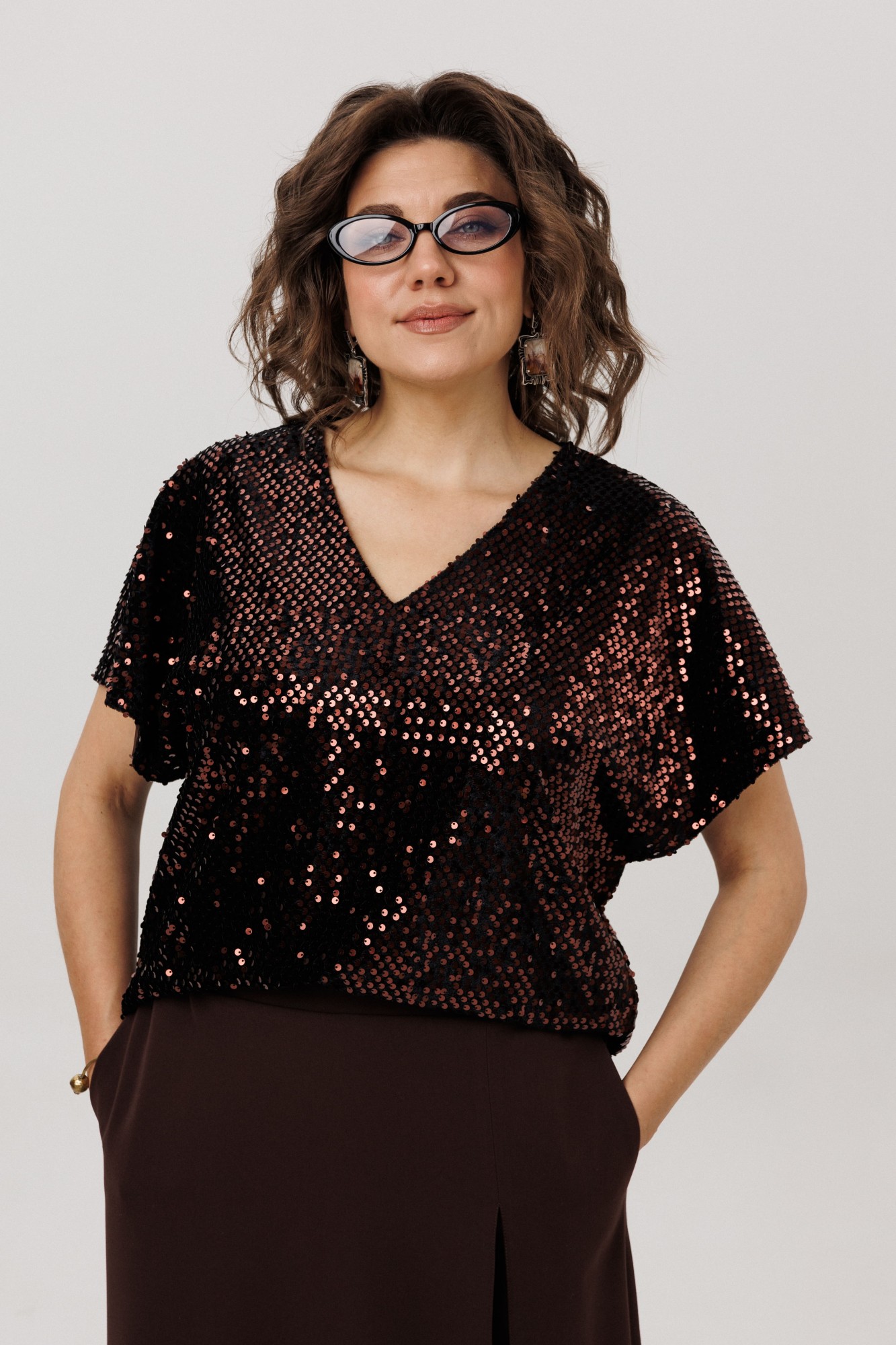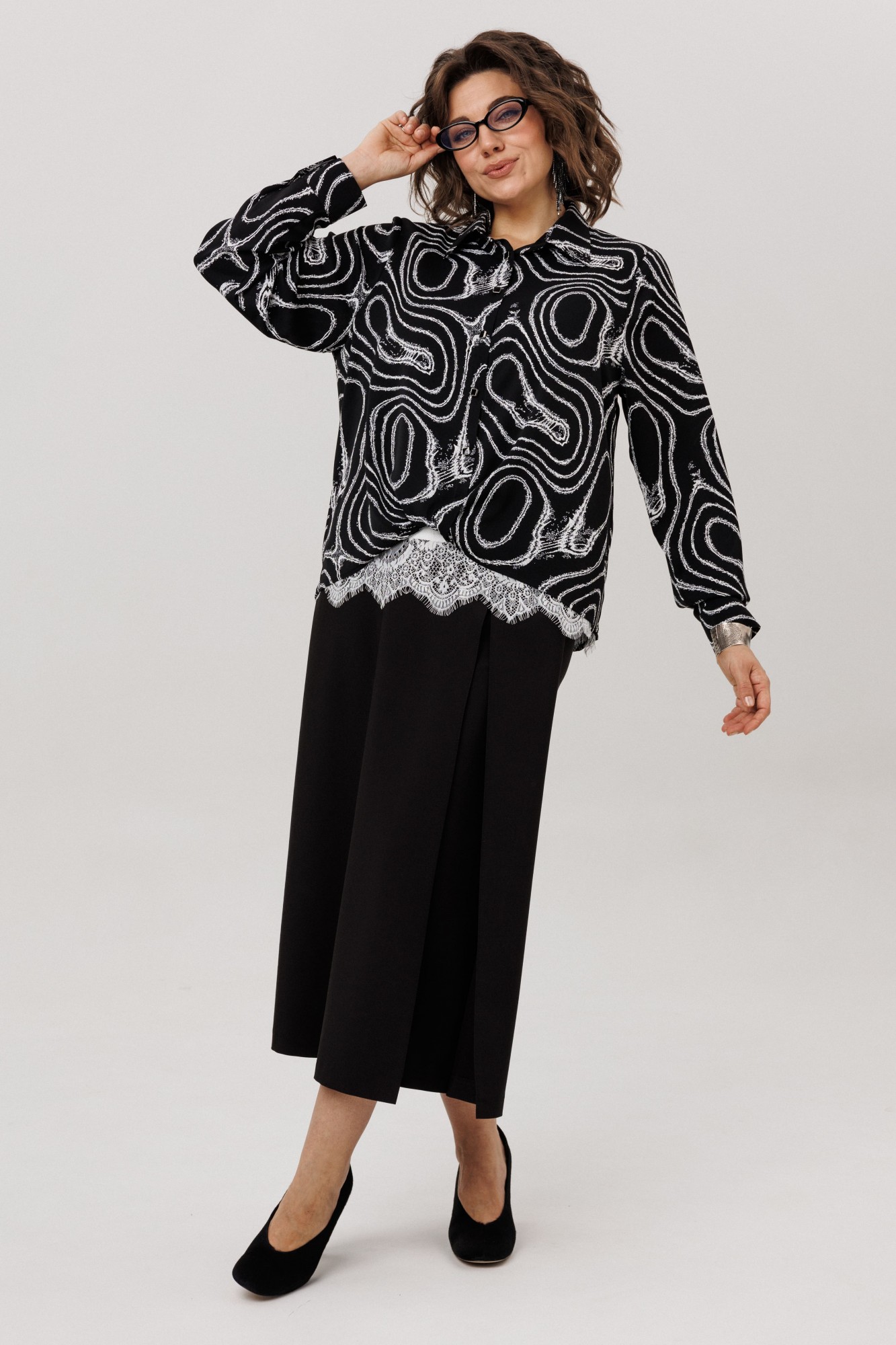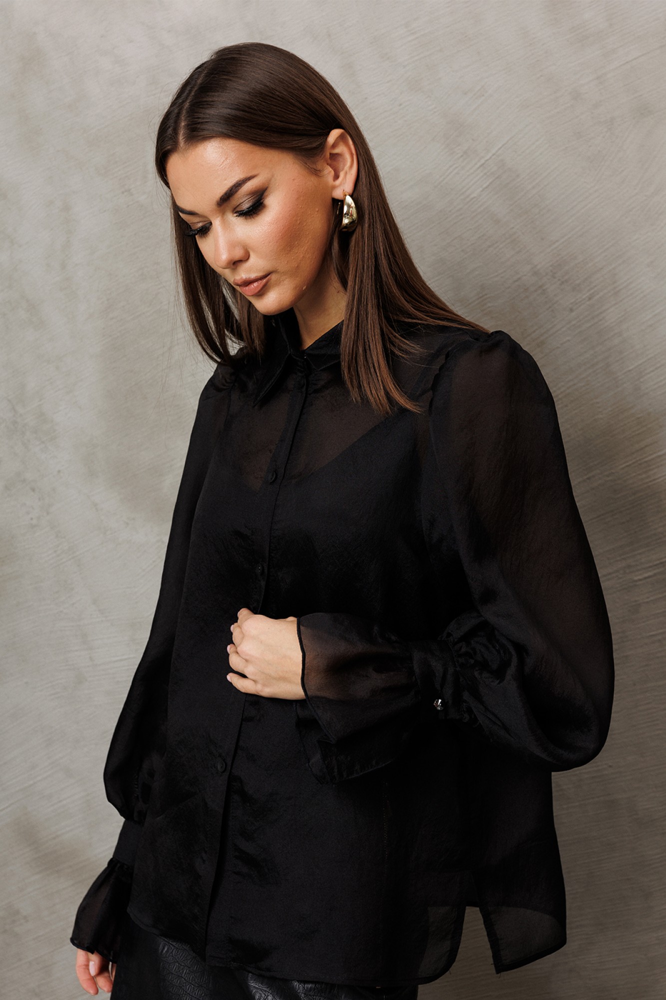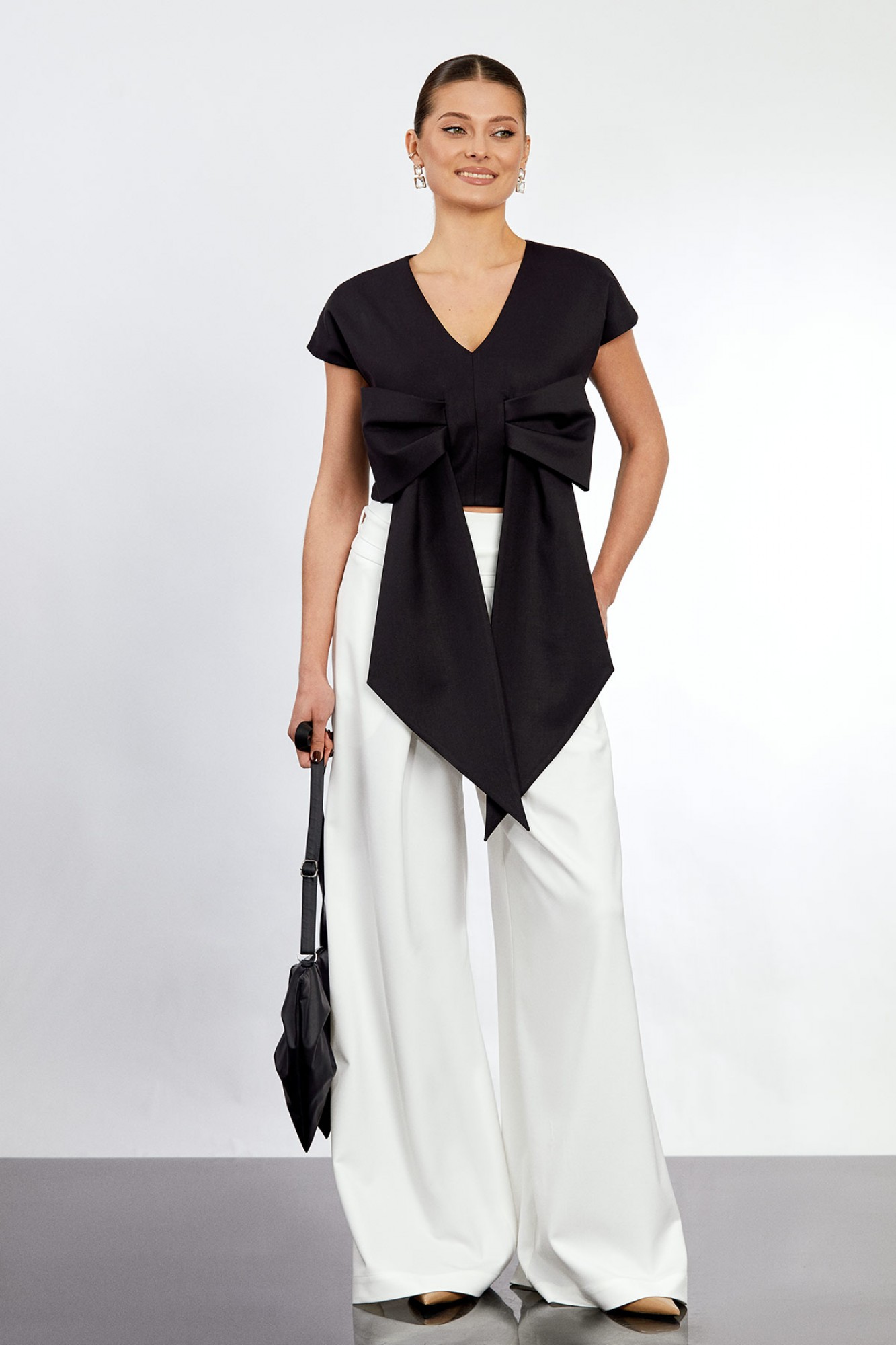 • Блузка с запахом - визуально скрывает объем груди.