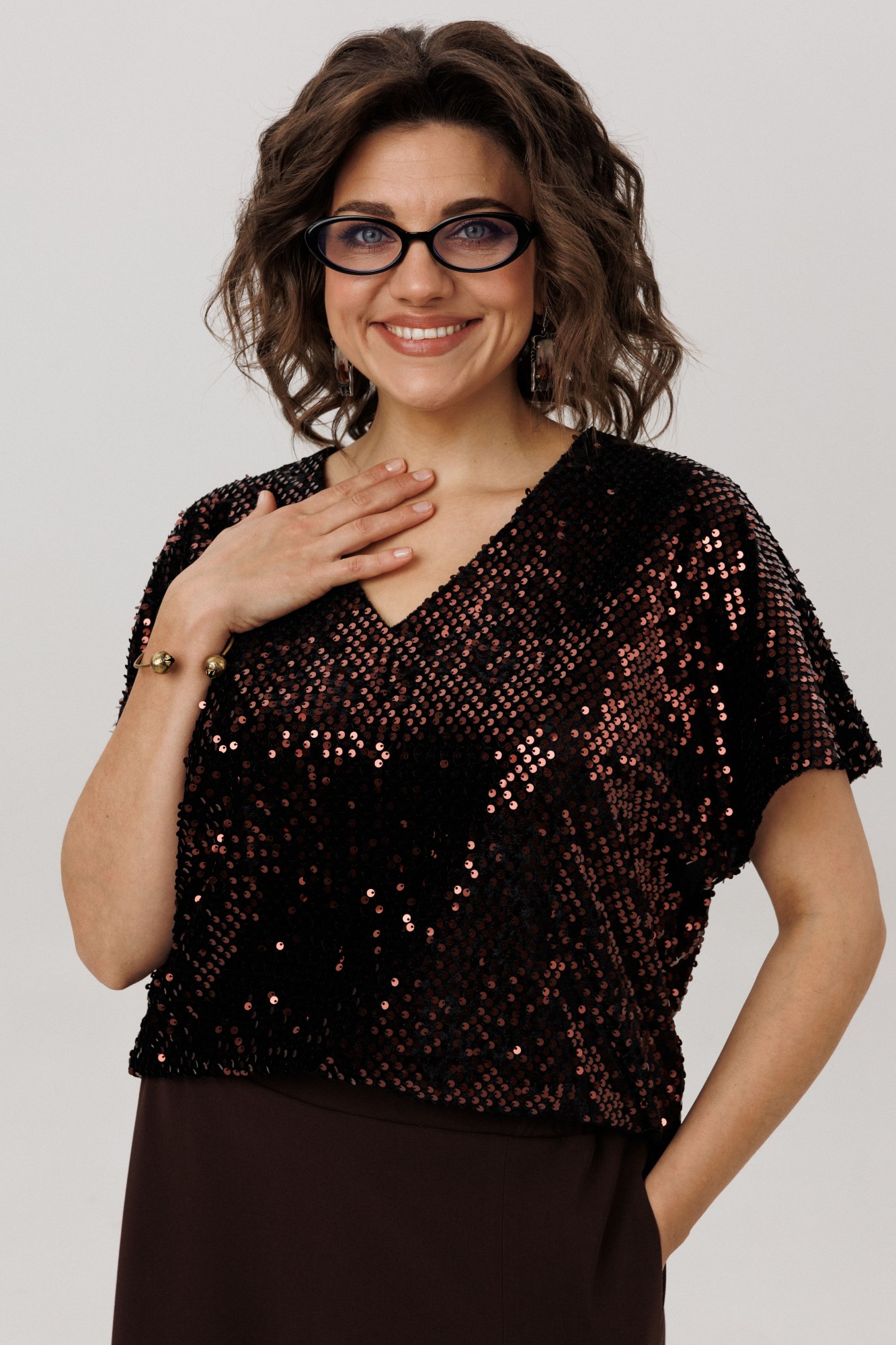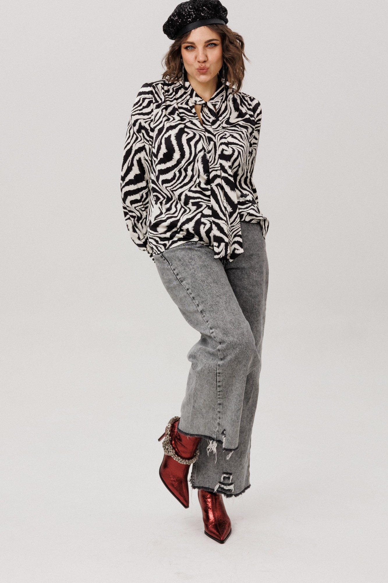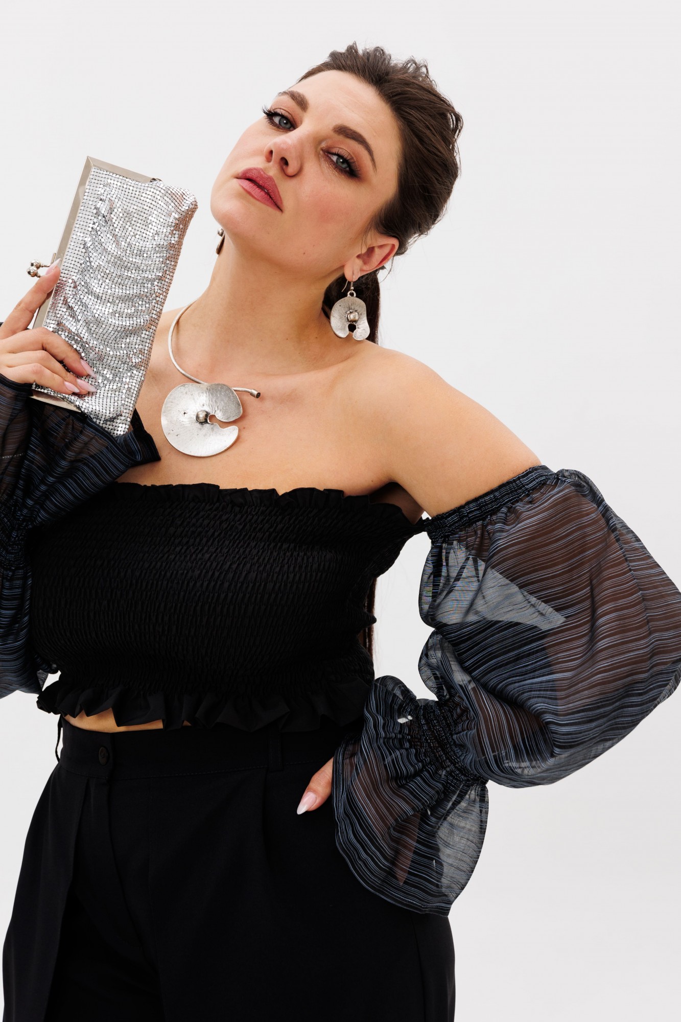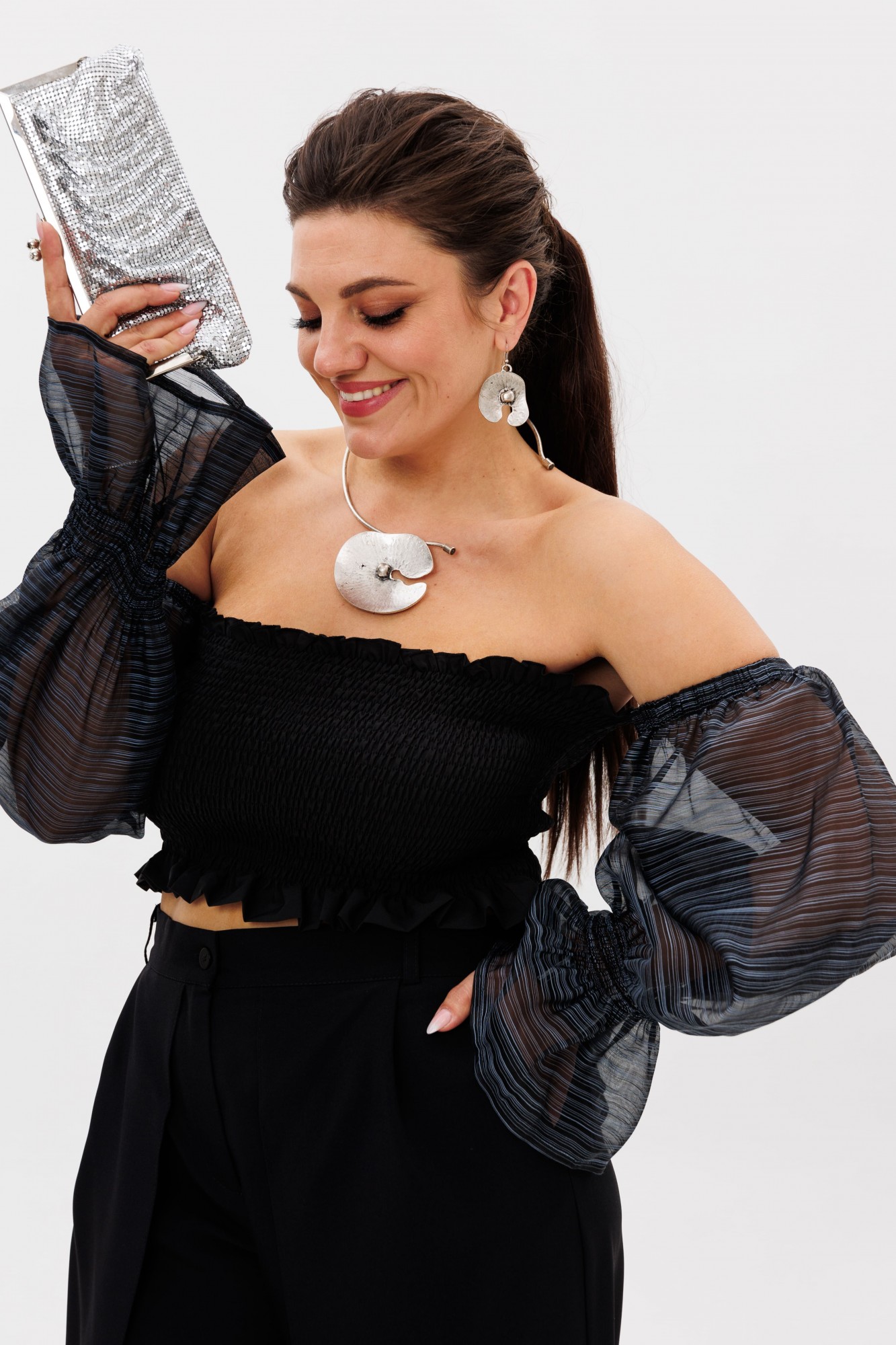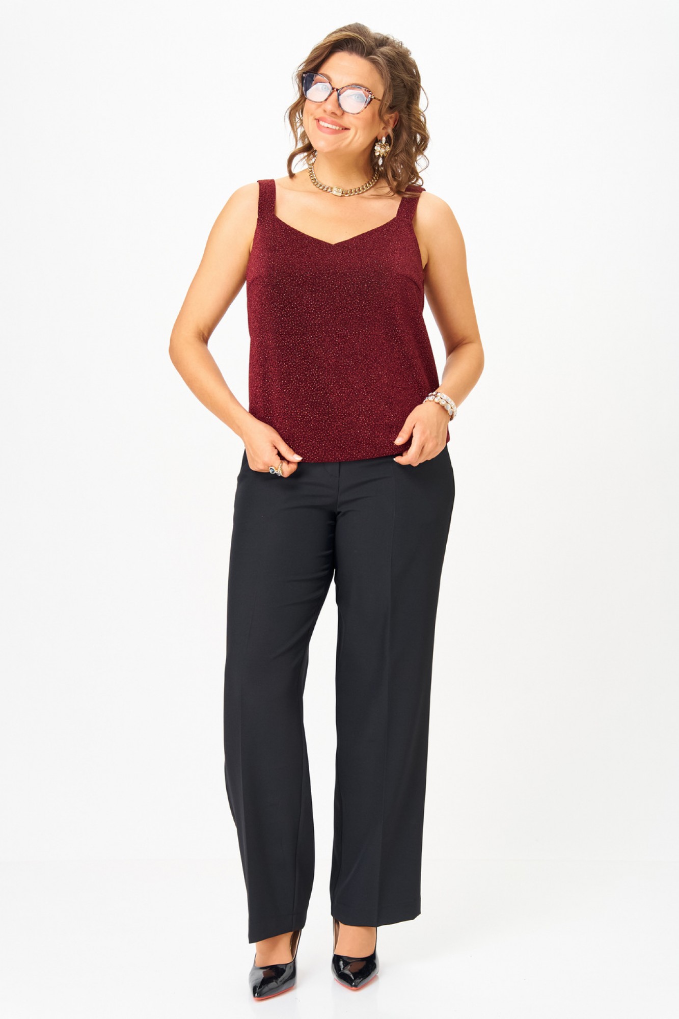 • Блузка с запахом - визуально скрывает объем груди.