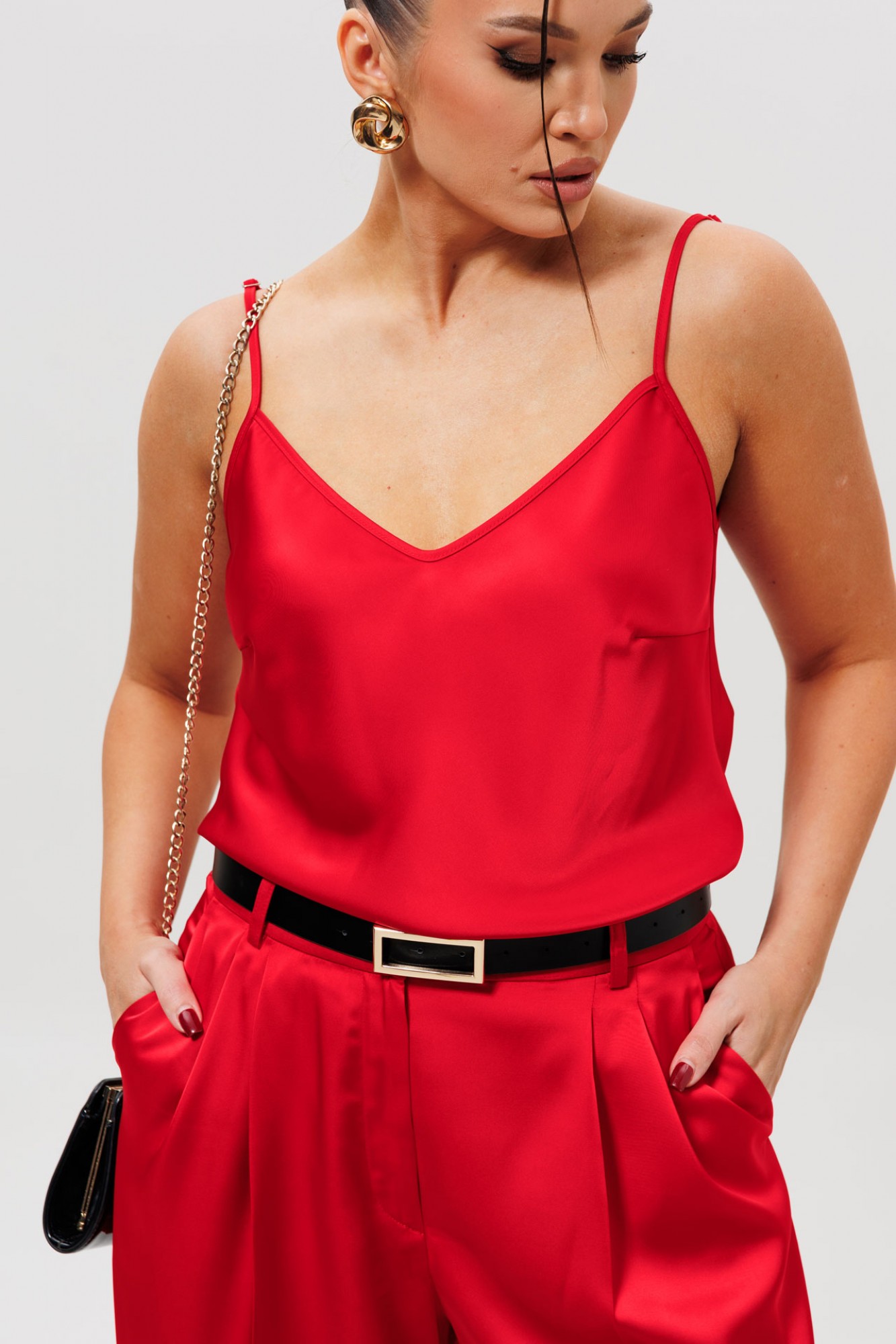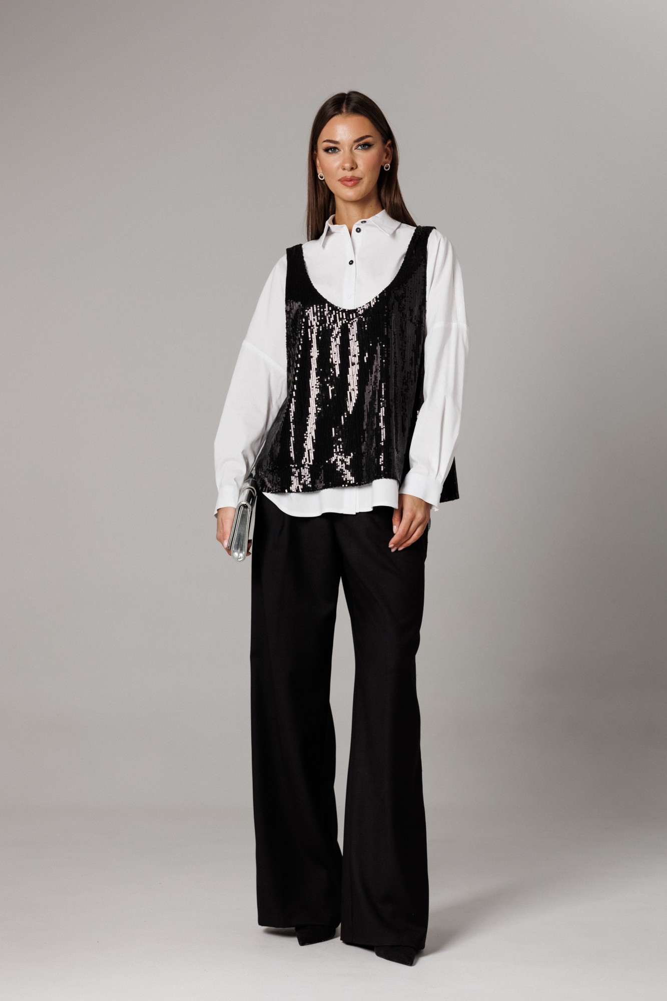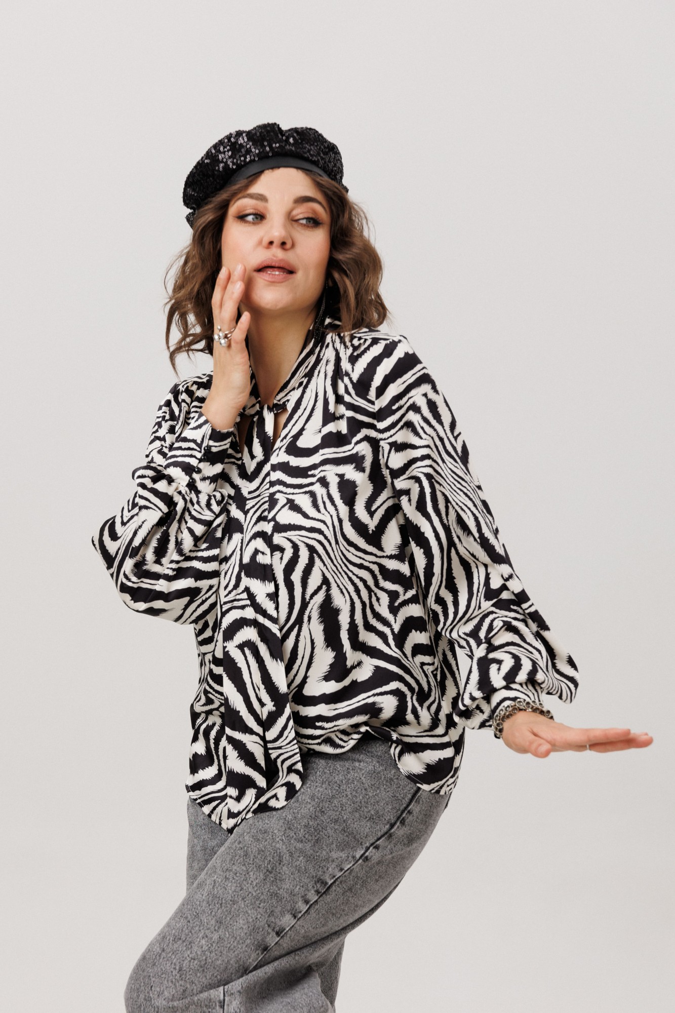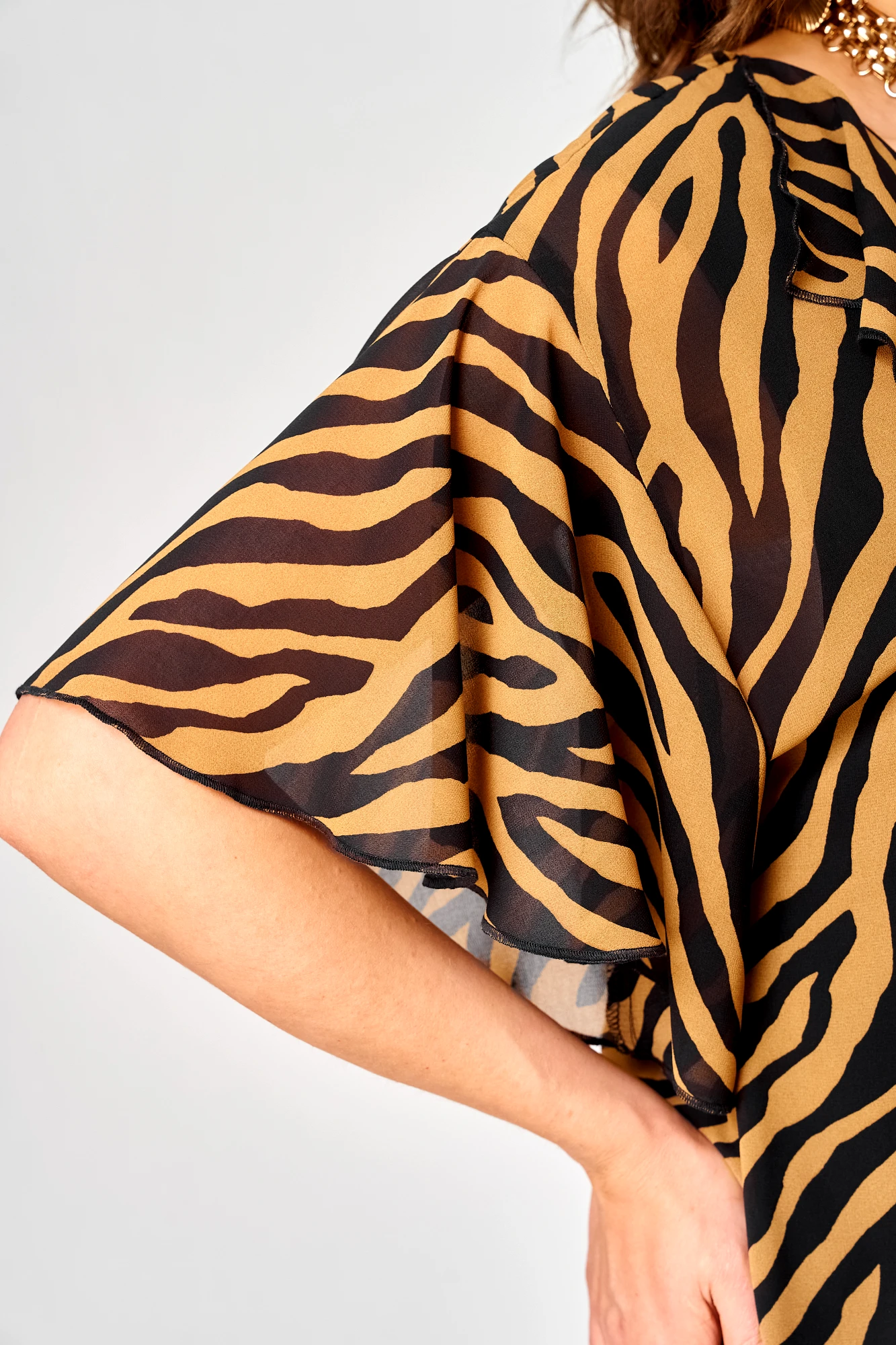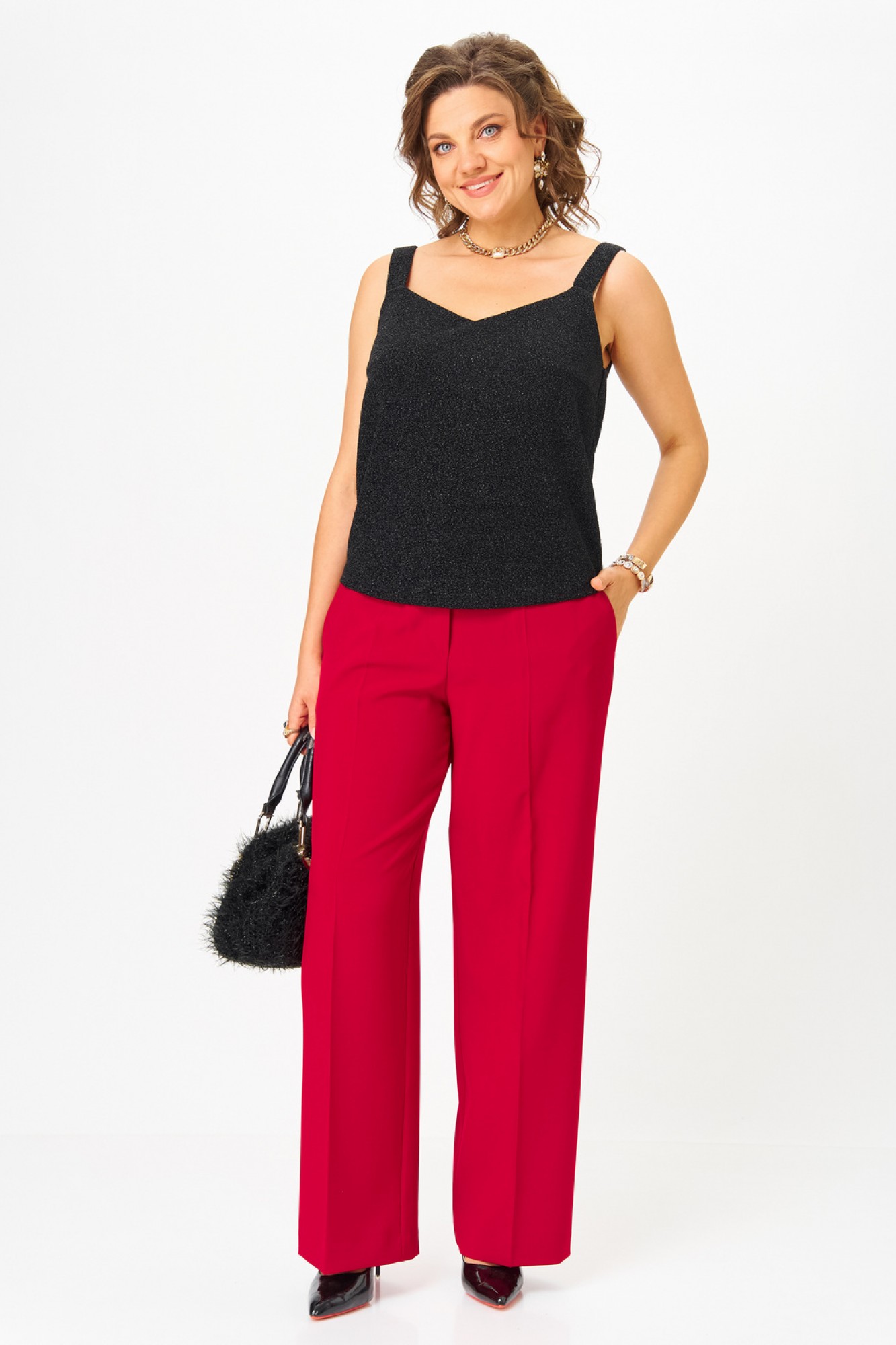 • Блузка с запахом - визуально скрывает объем груди.
