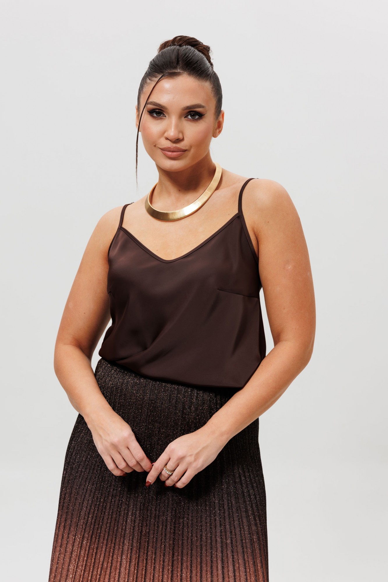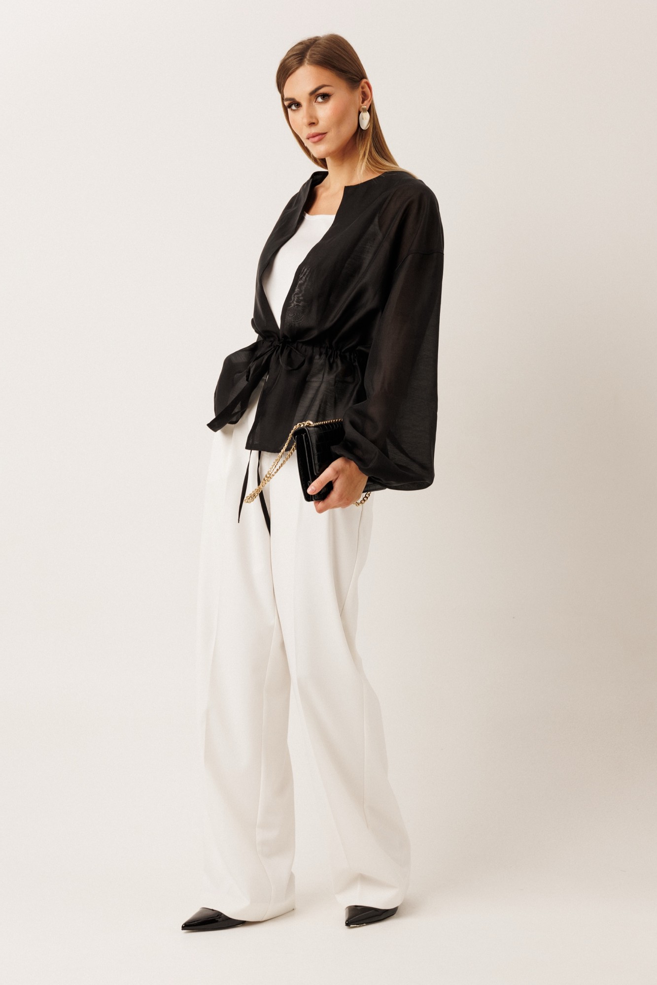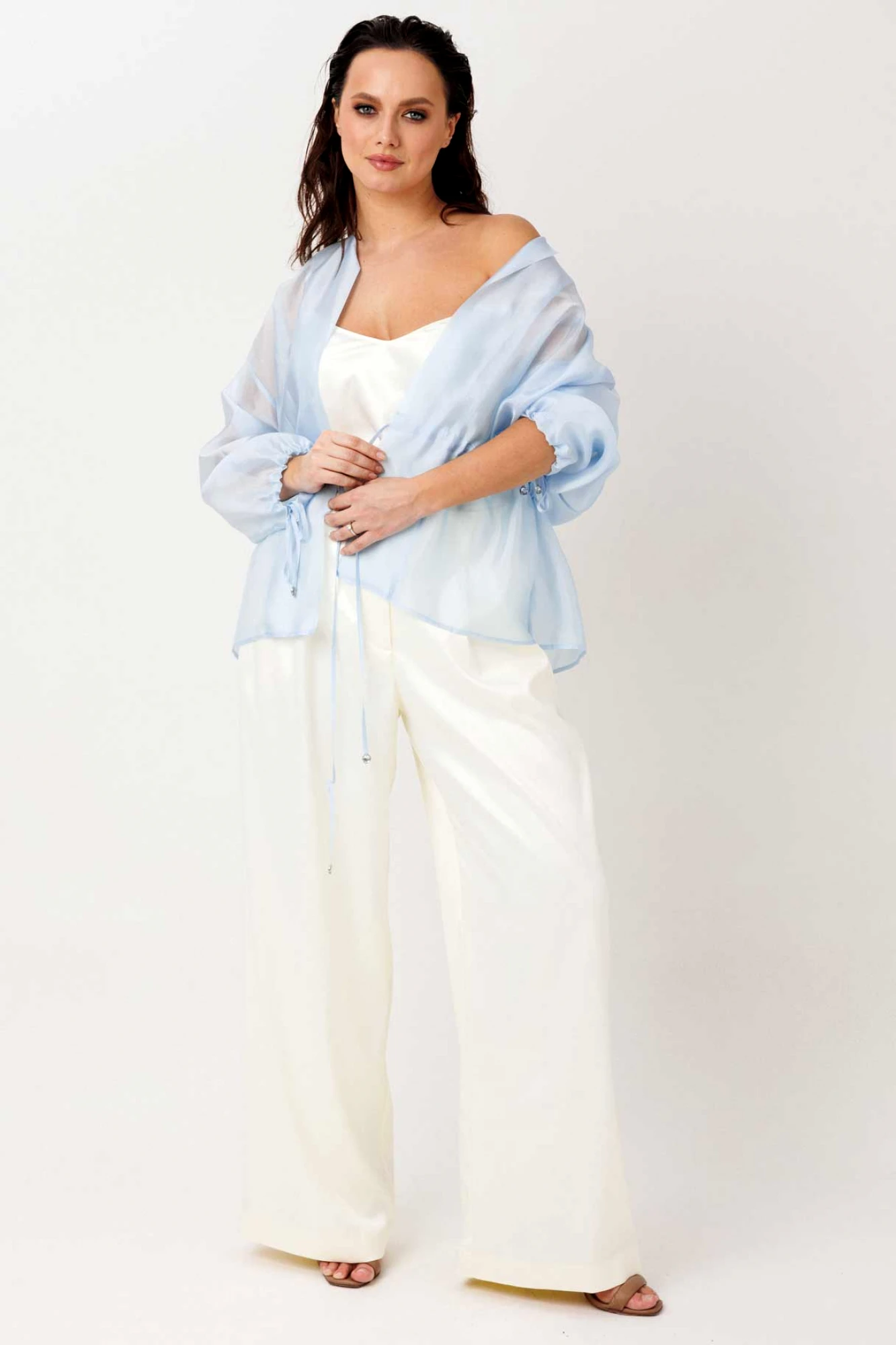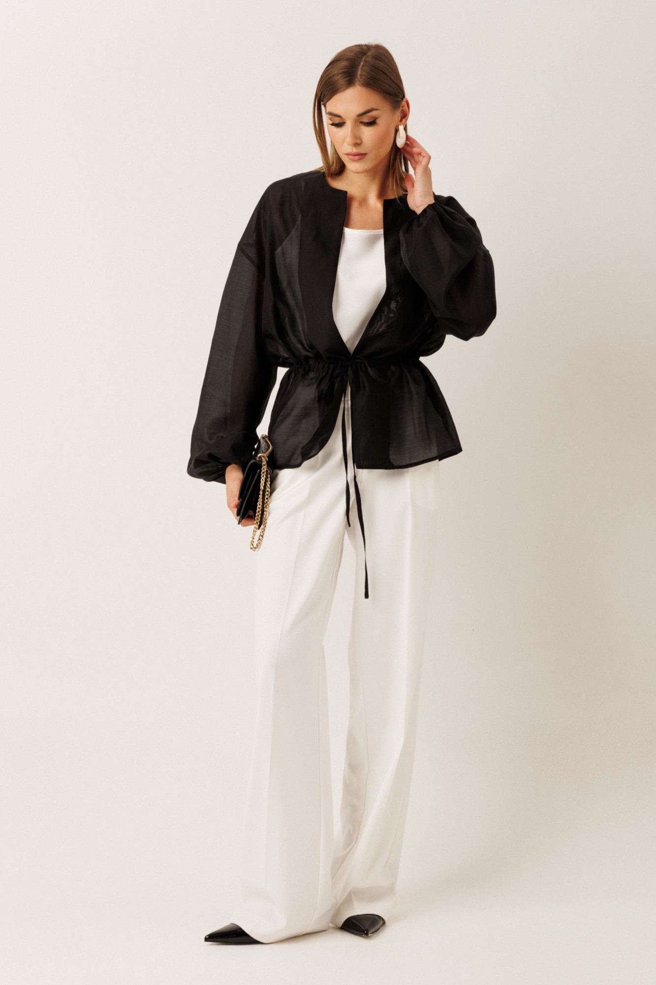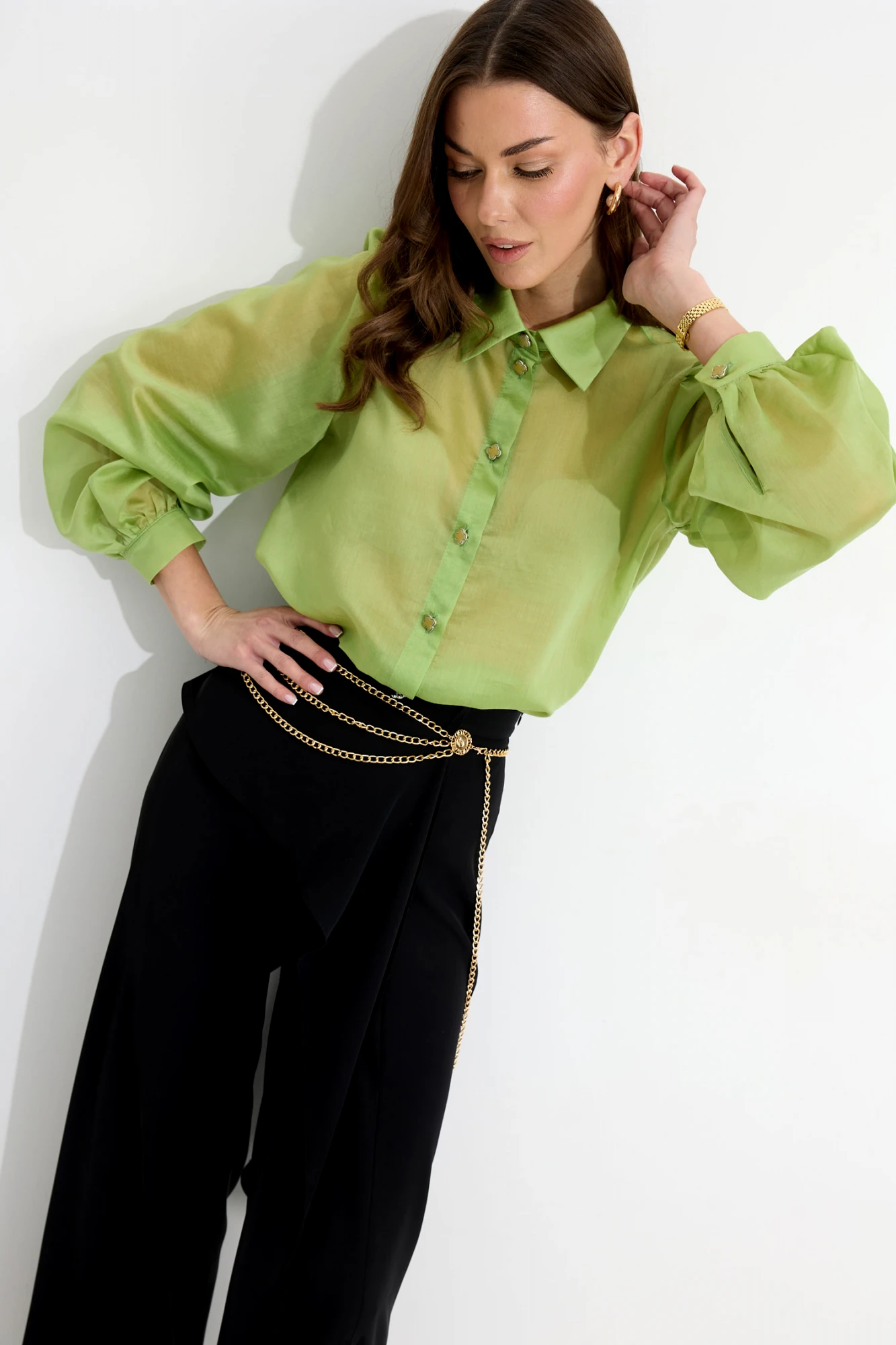 • Блузка с запахом - визуально скрывает объем груди.
