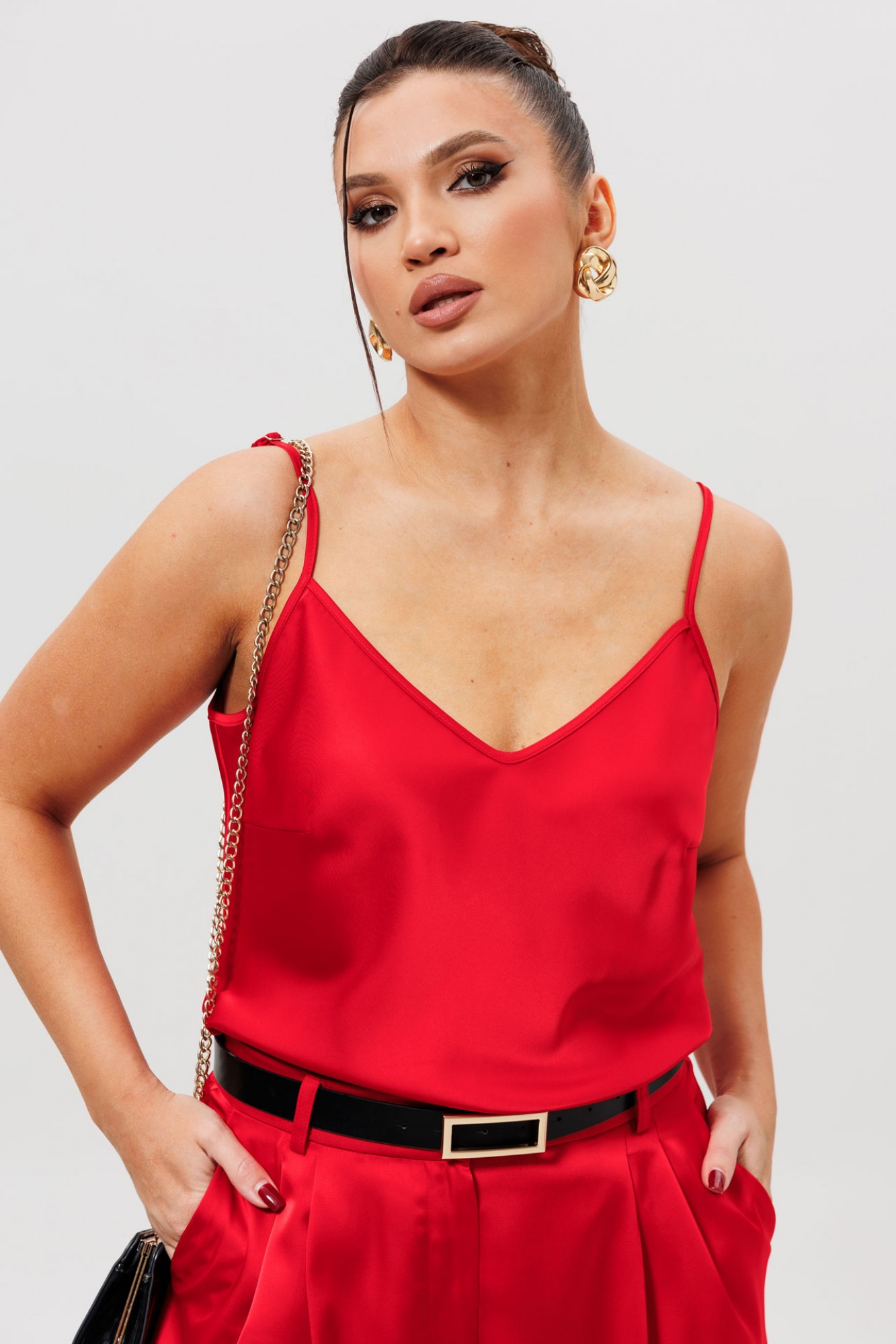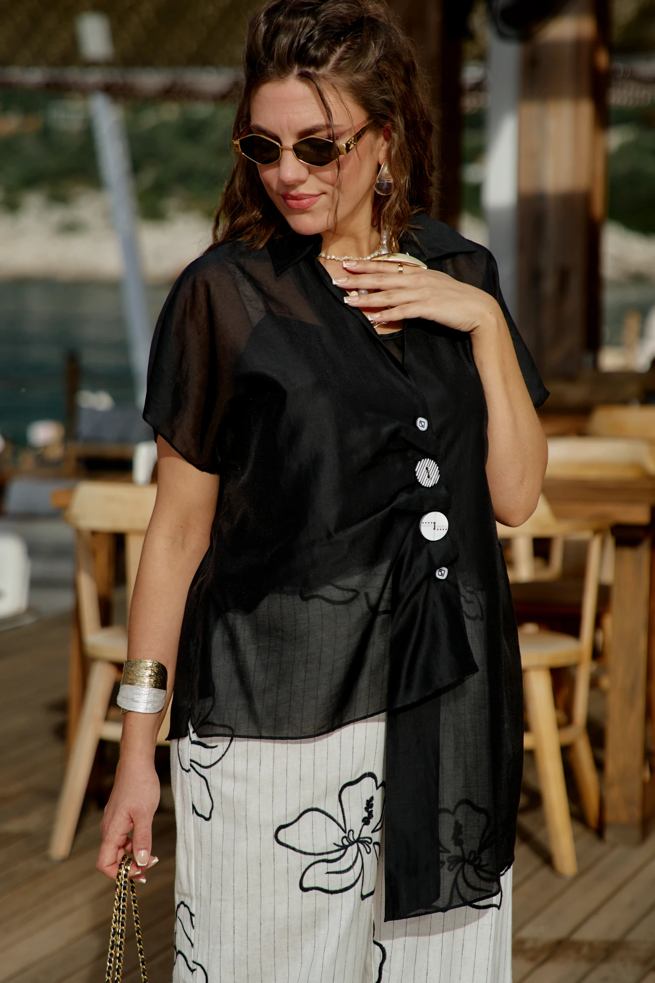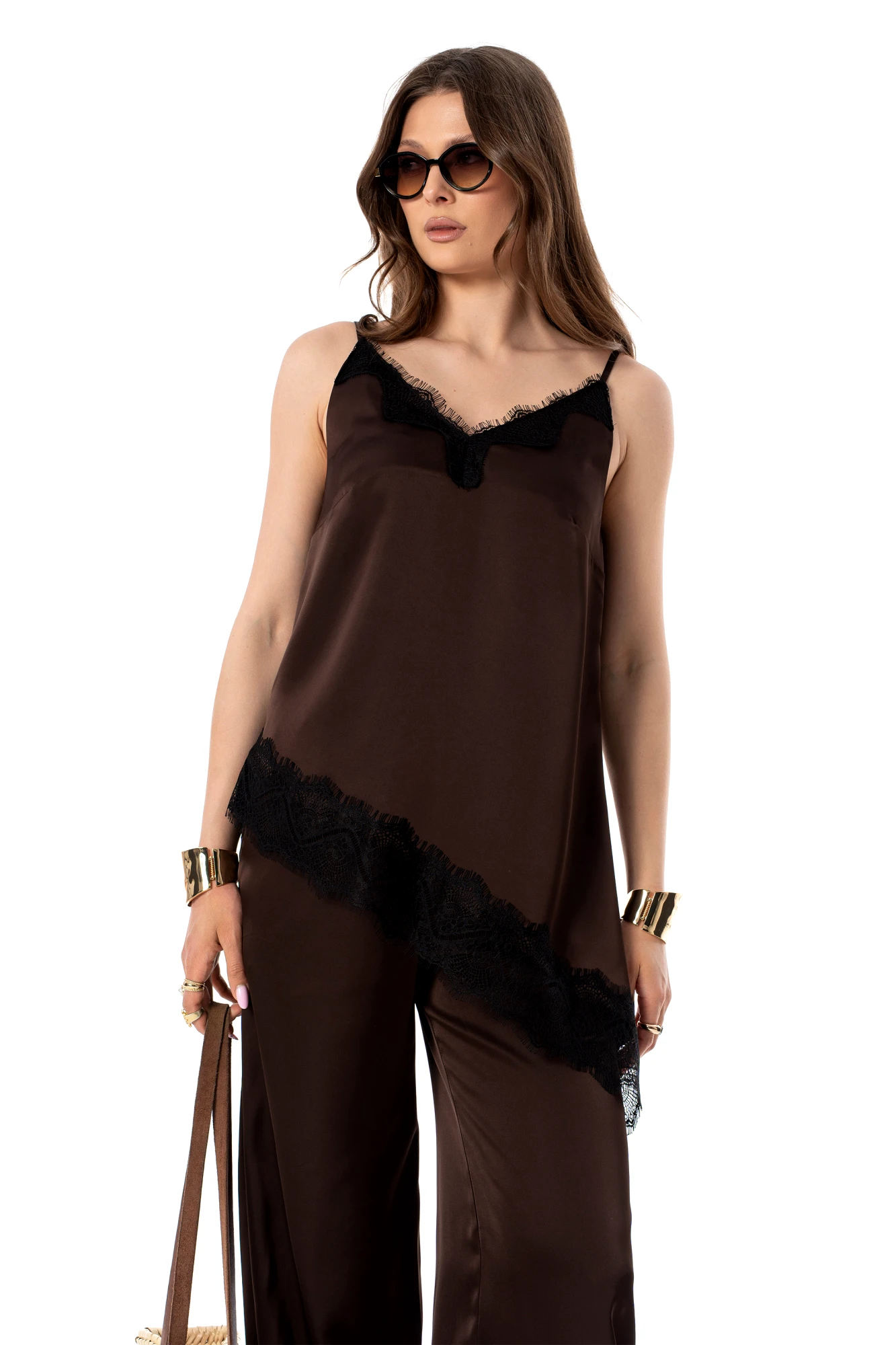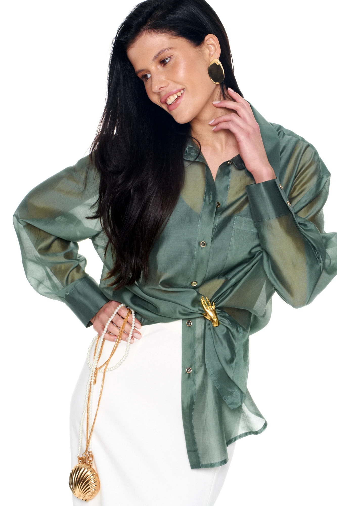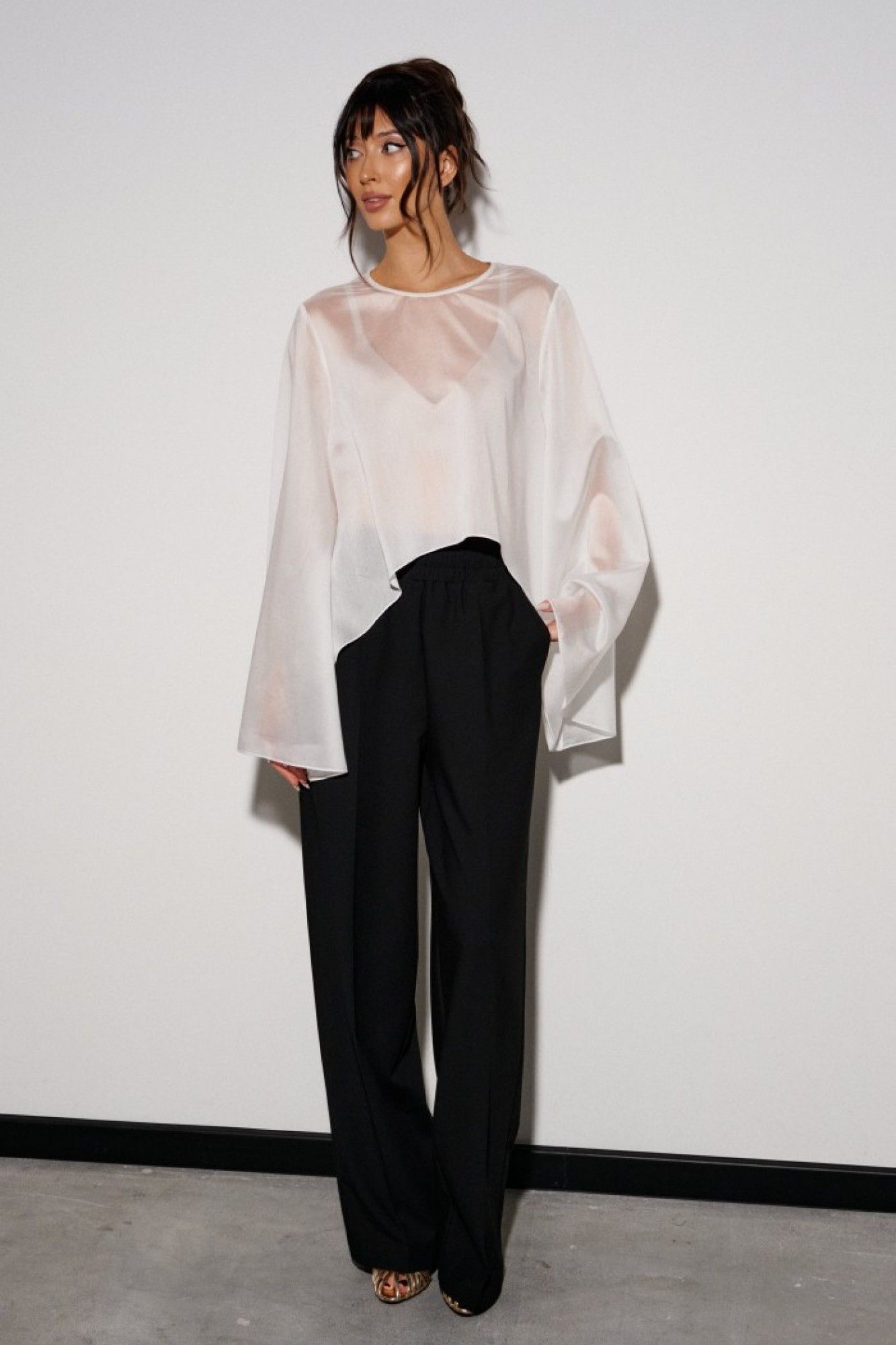 • Блузка с запахом - визуально скрывает объем груди.
