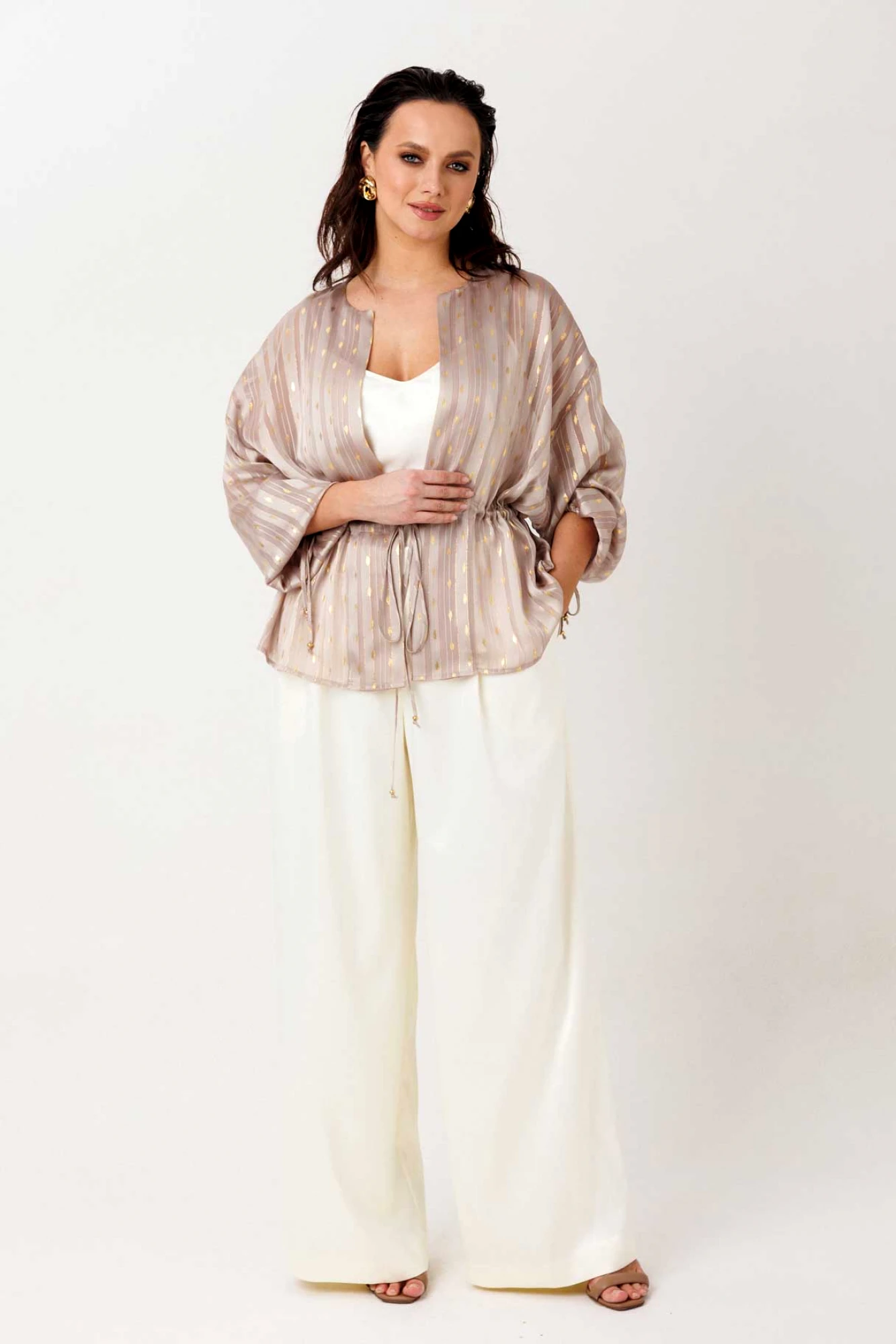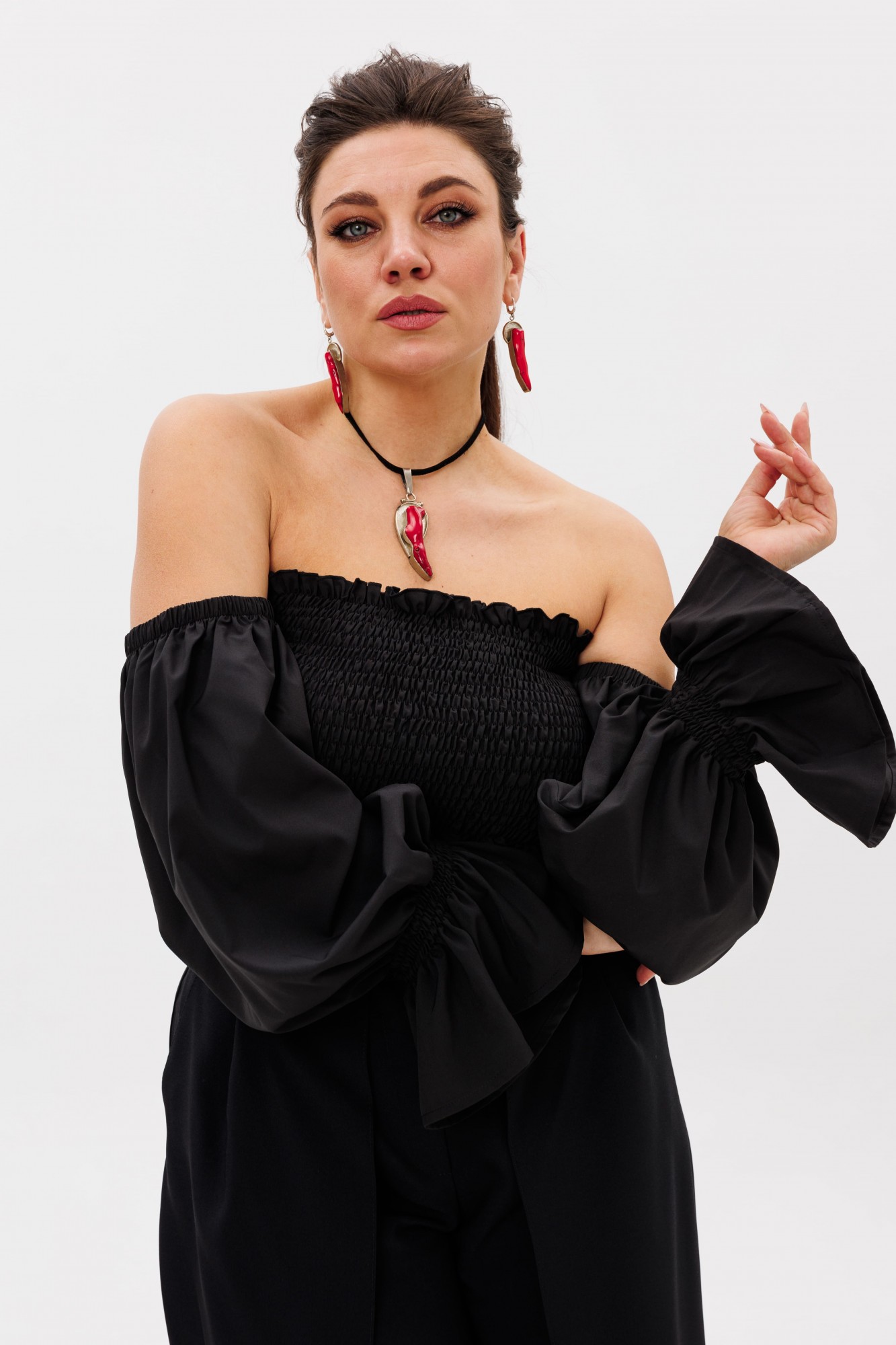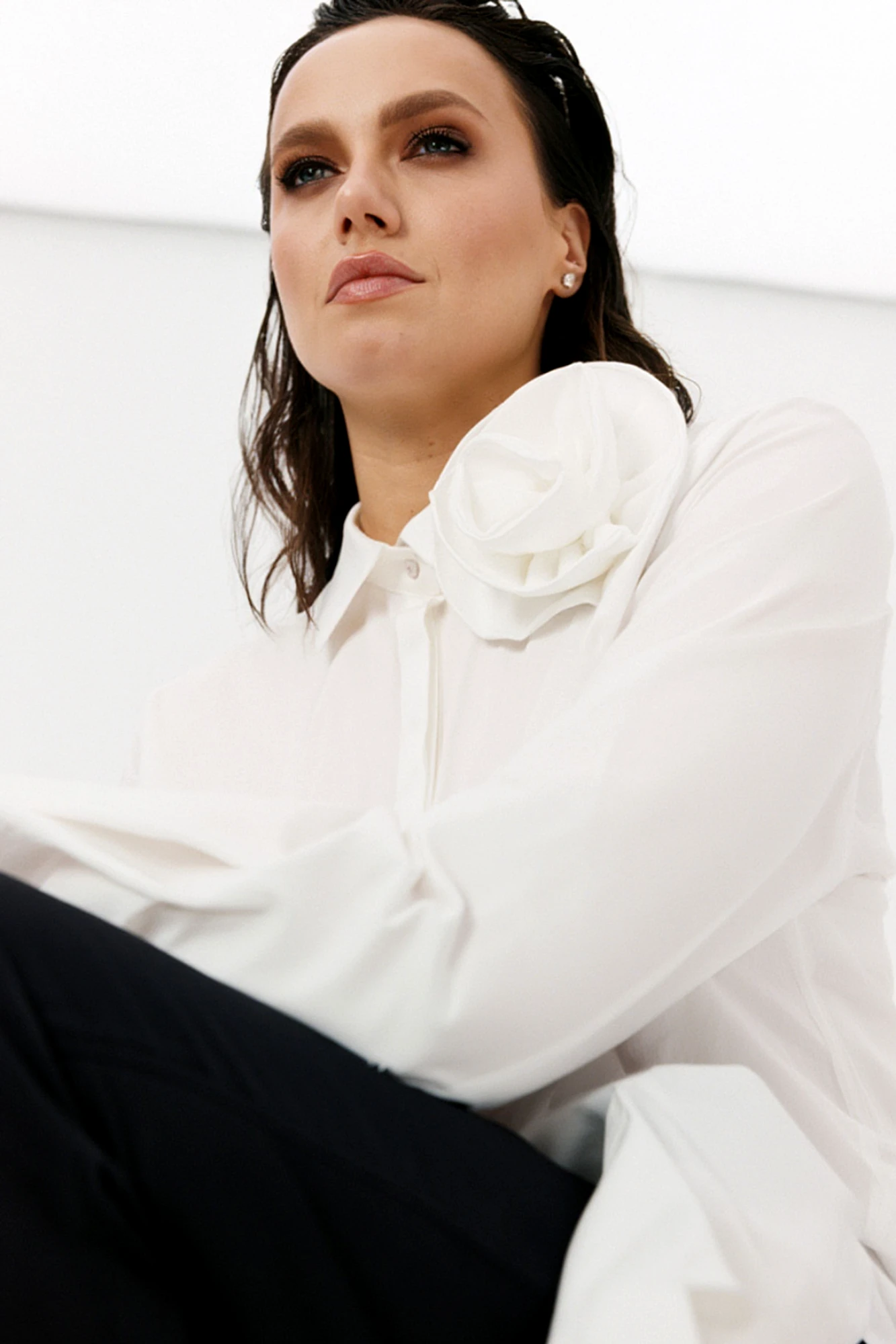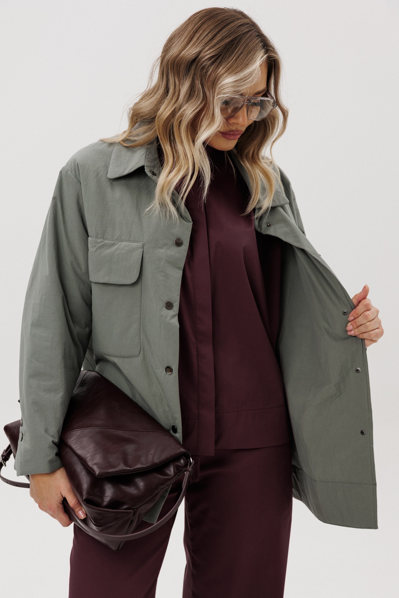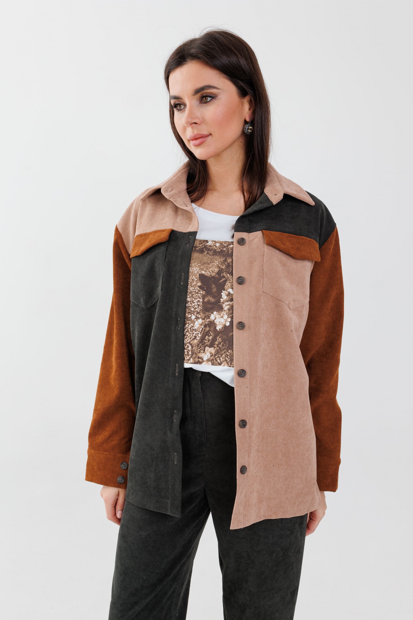 • Блузка с запахом - визуально скрывает объем груди.