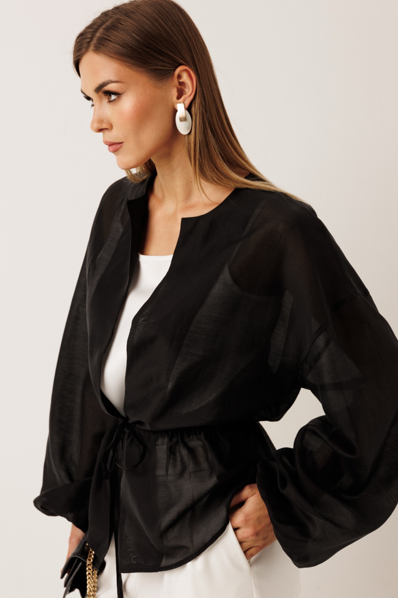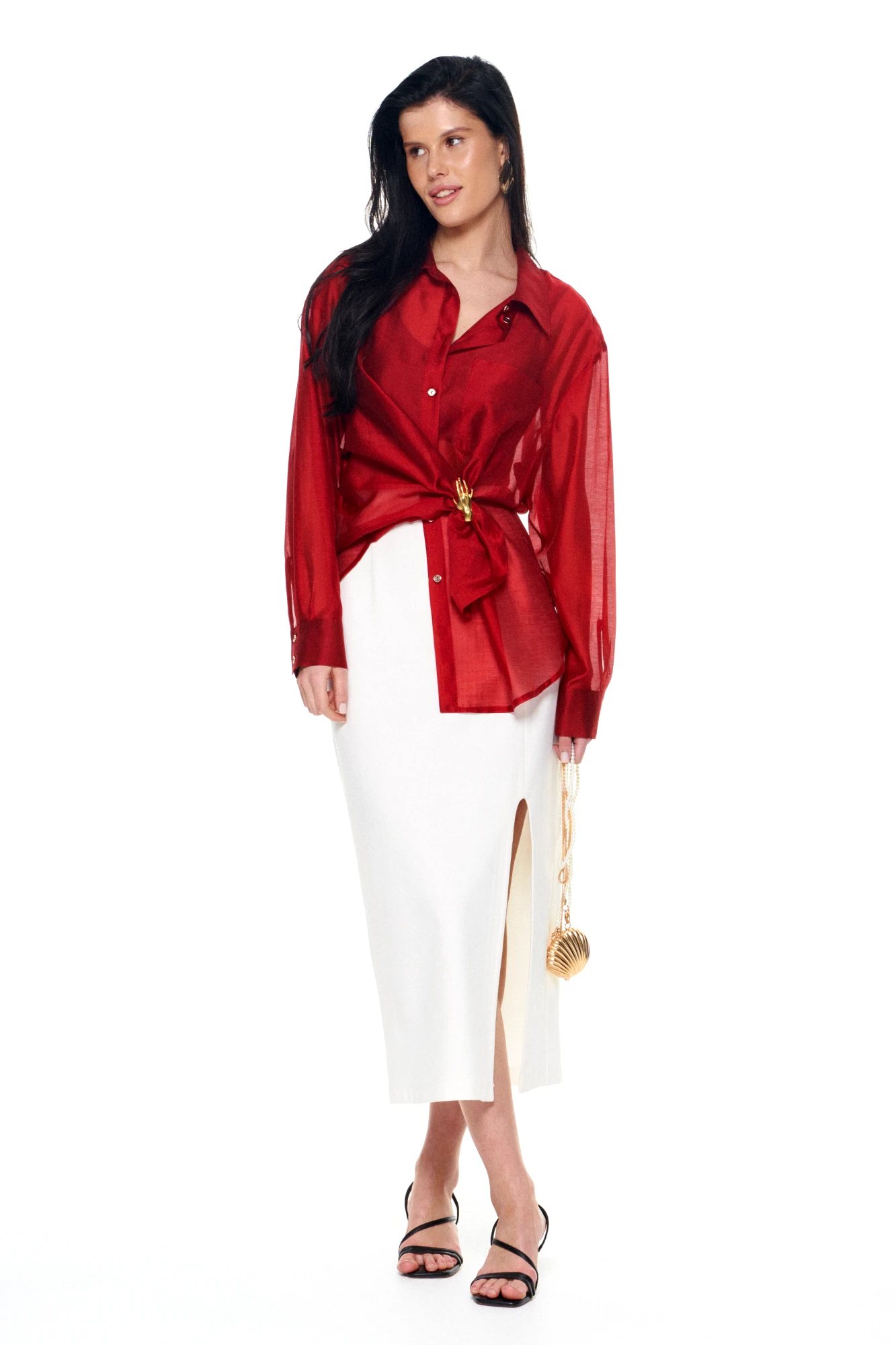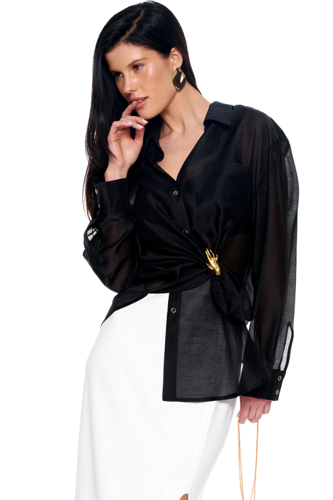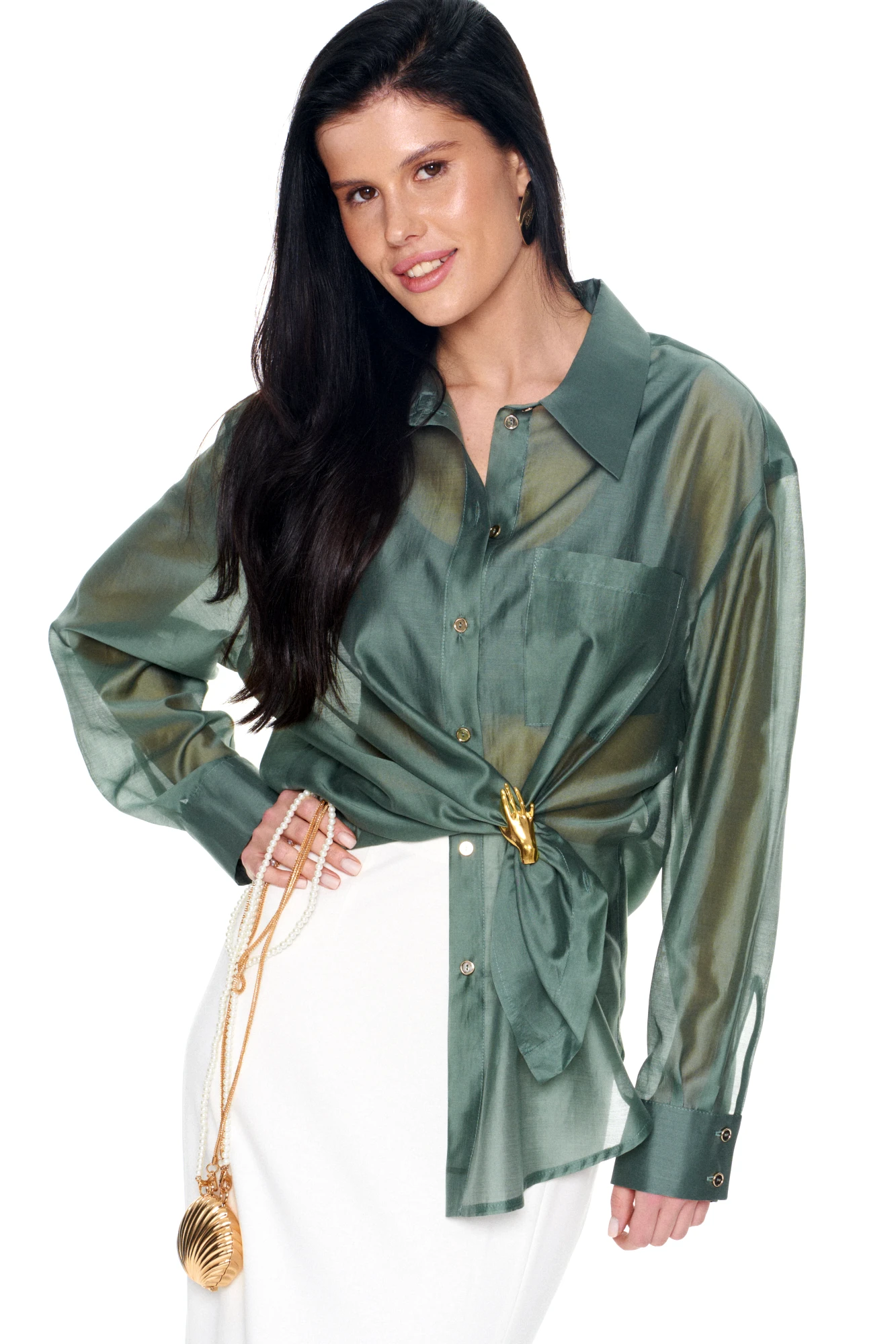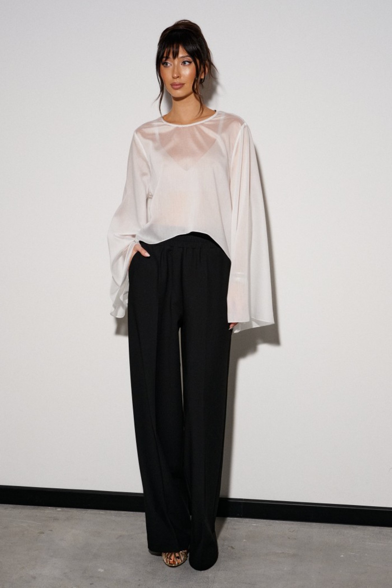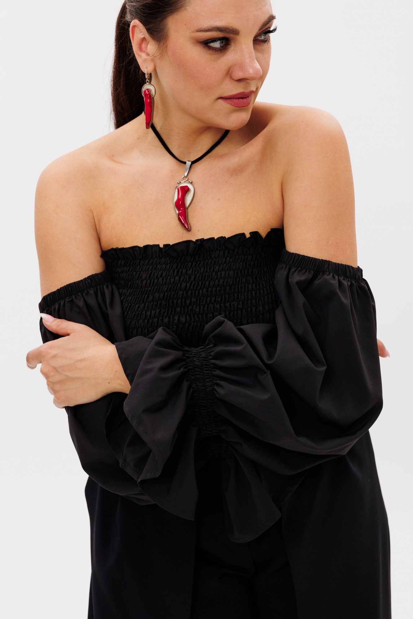• Блузка с запахом - визуально скрывает объем груди.