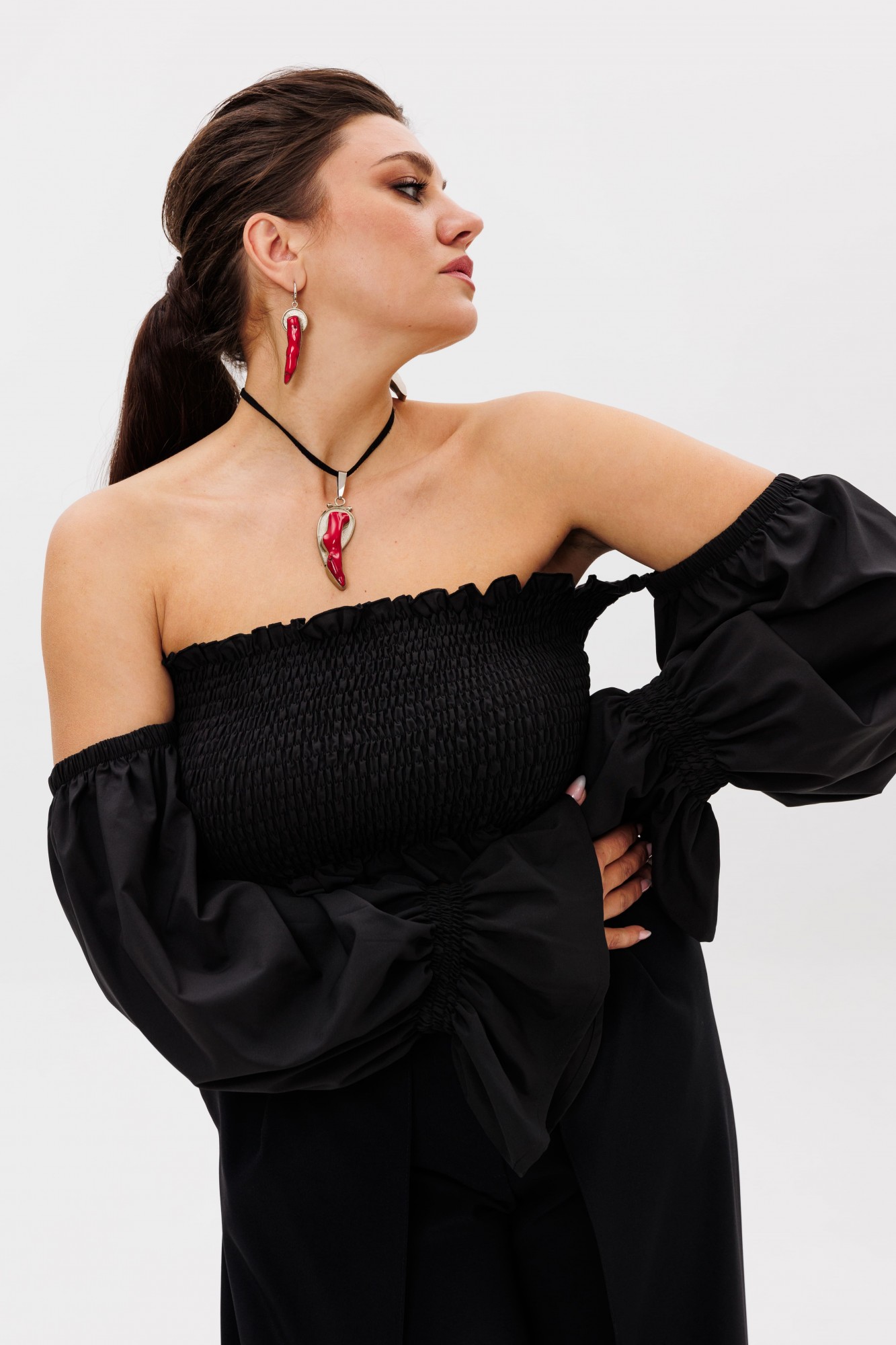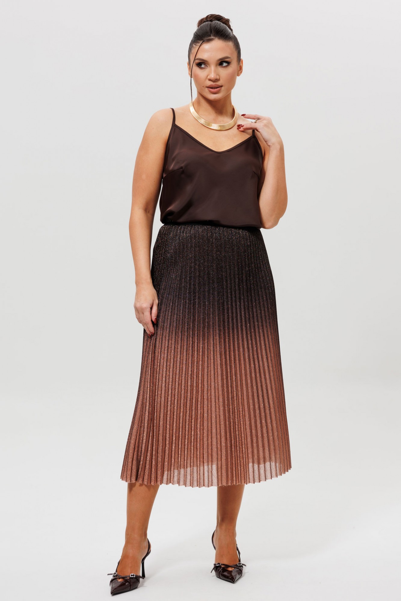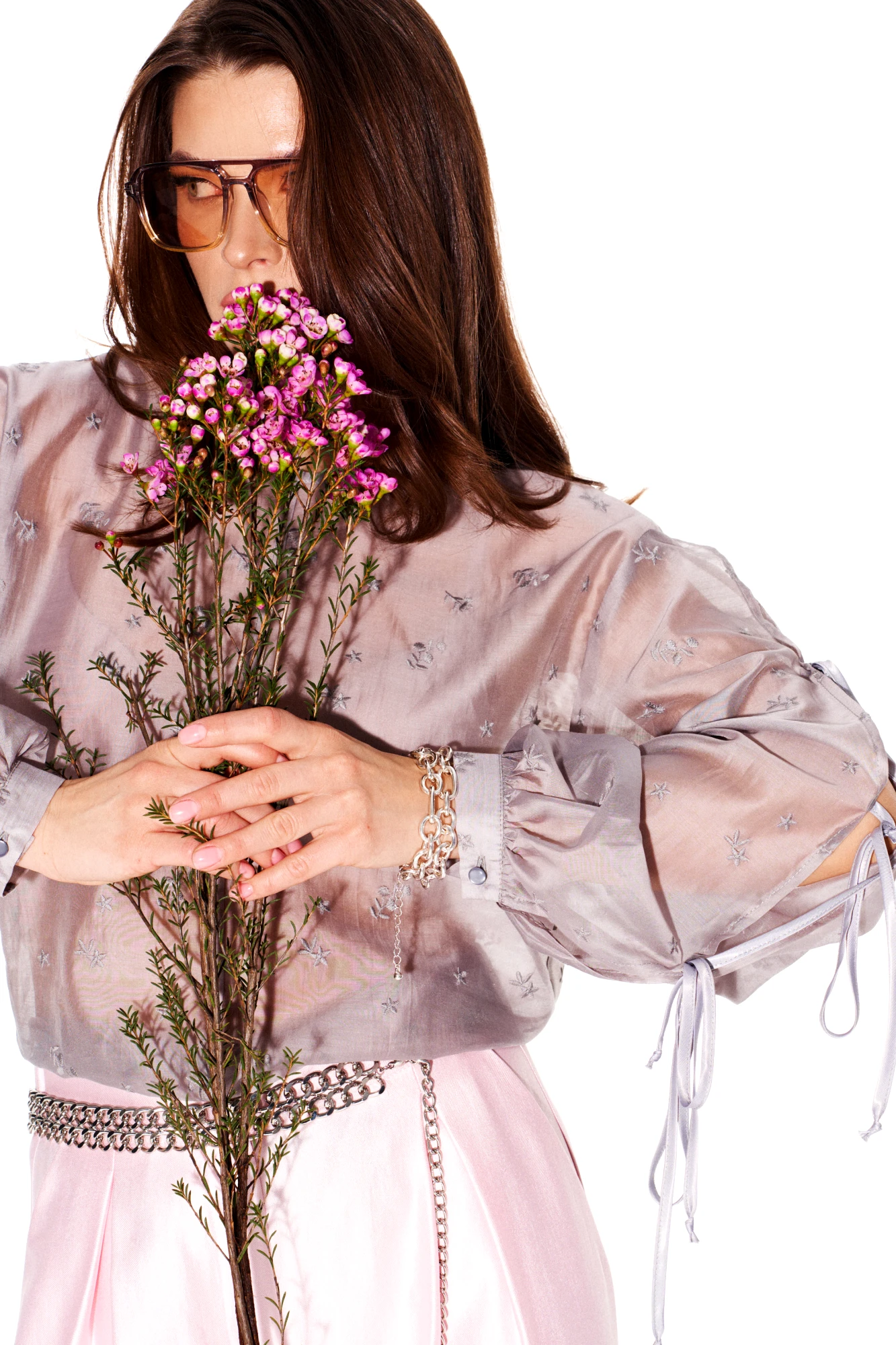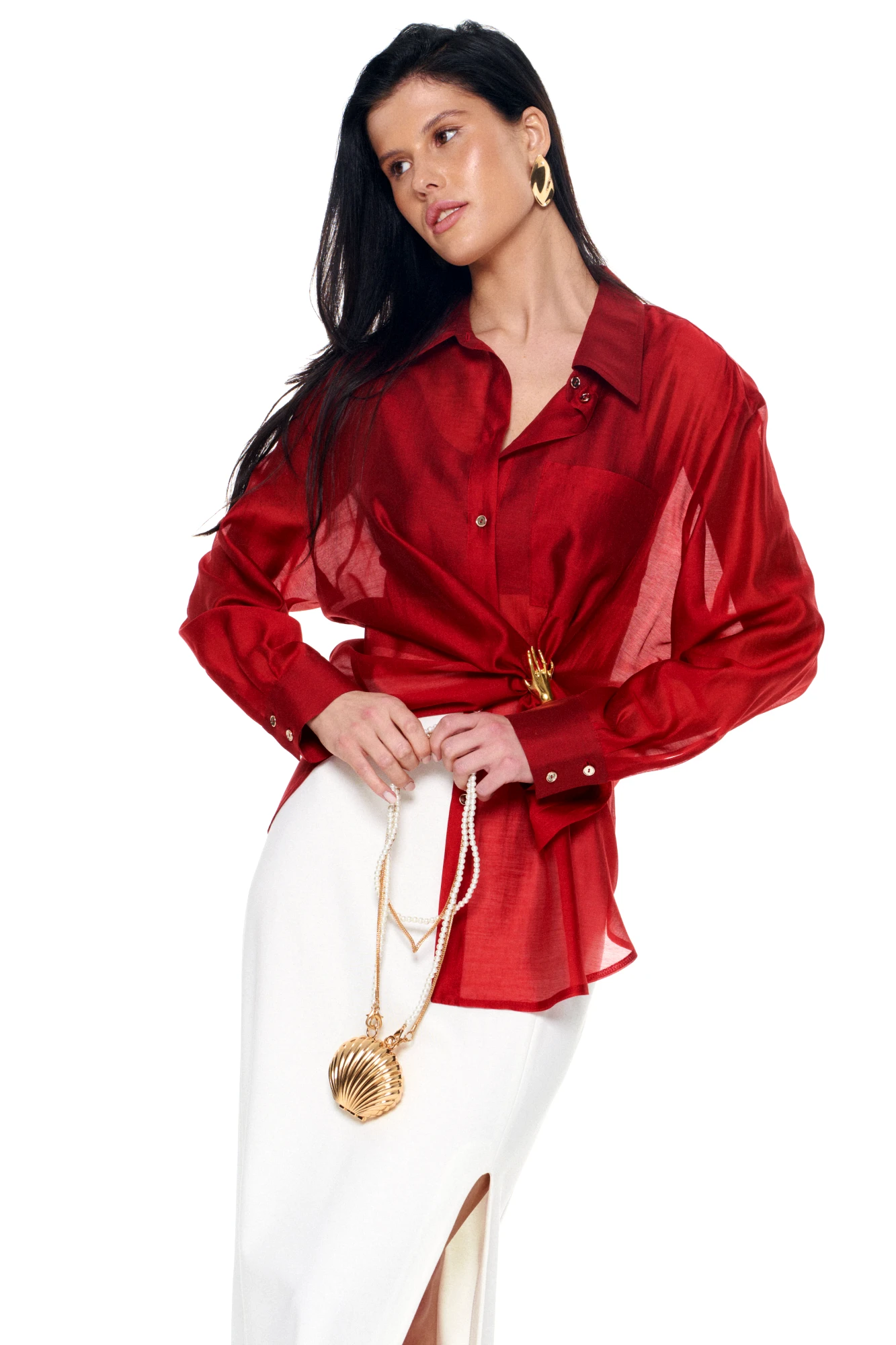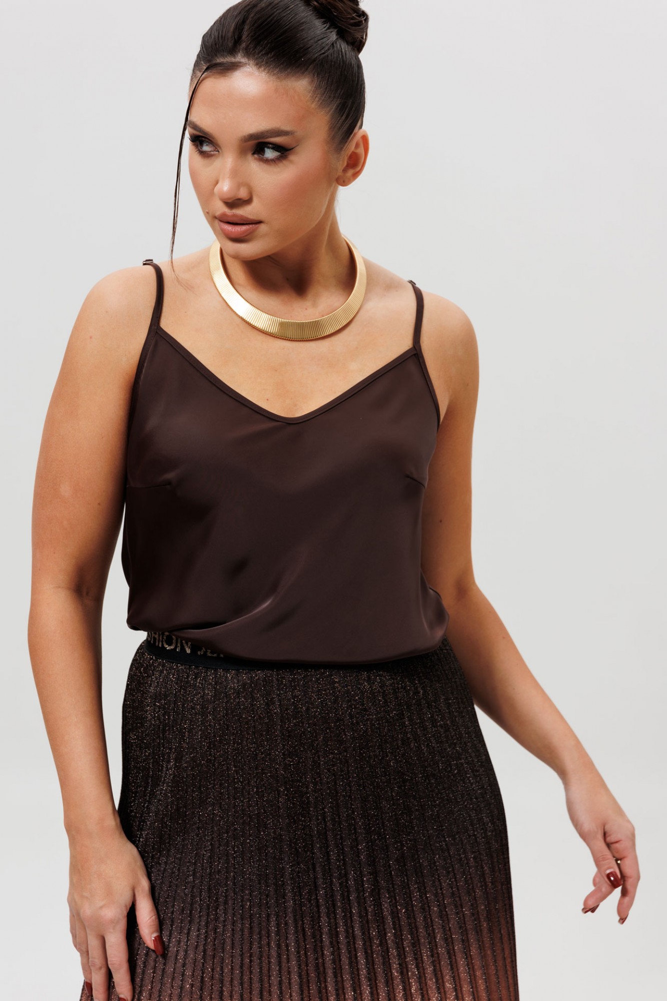• Блузка с запахом - визуально скрывает объем груди.