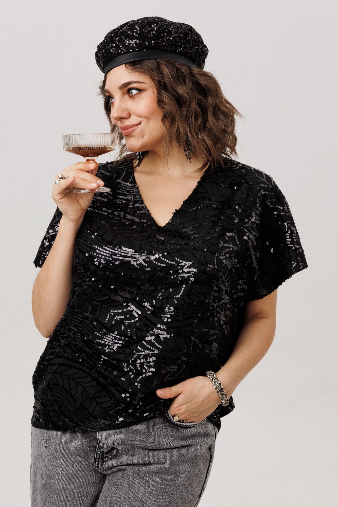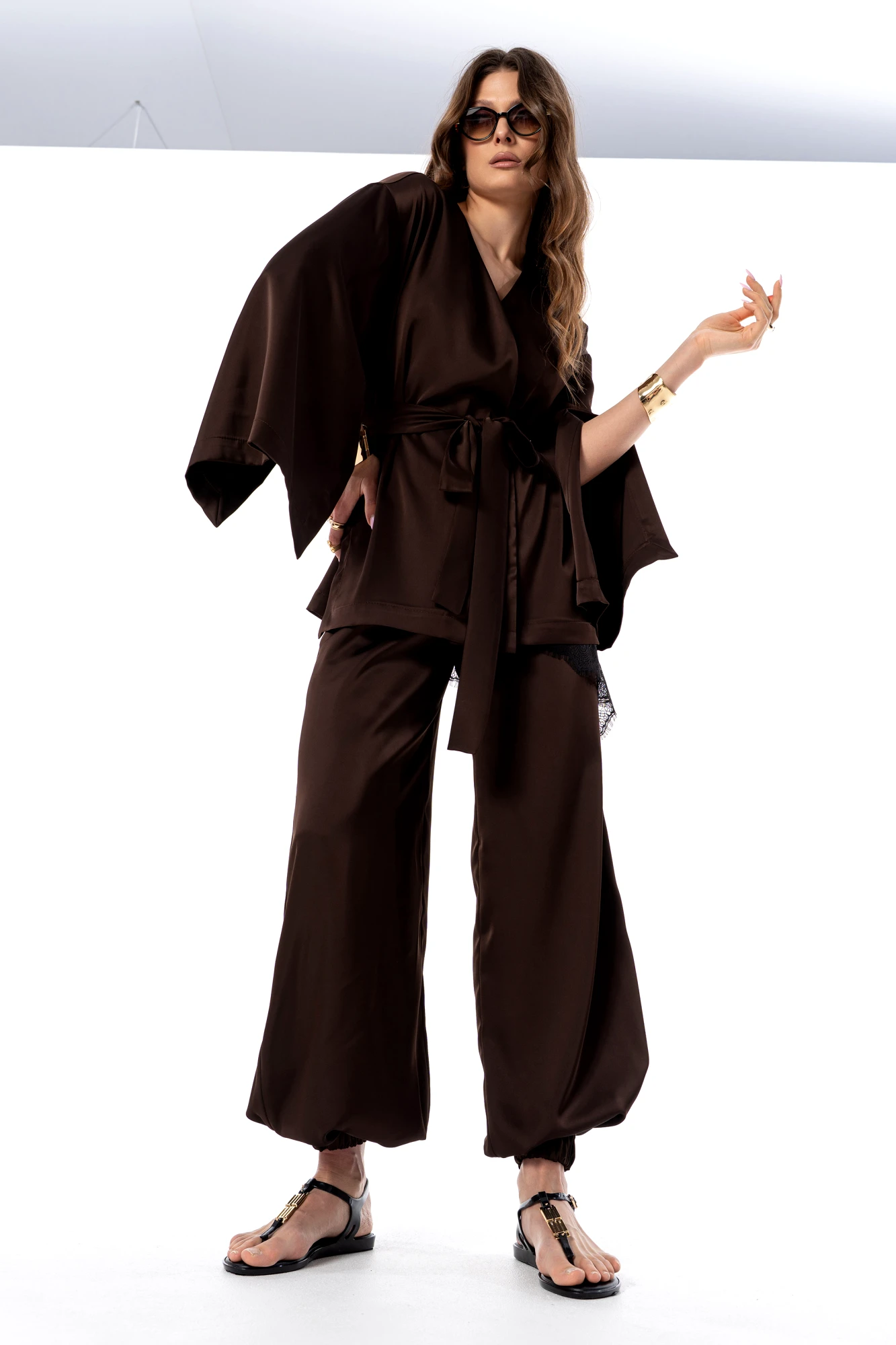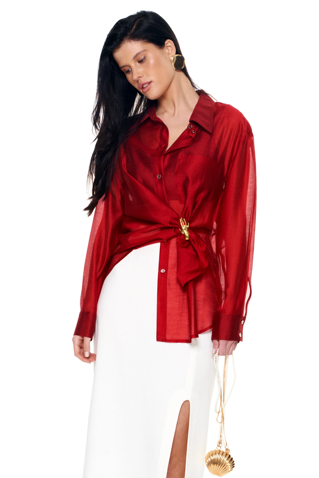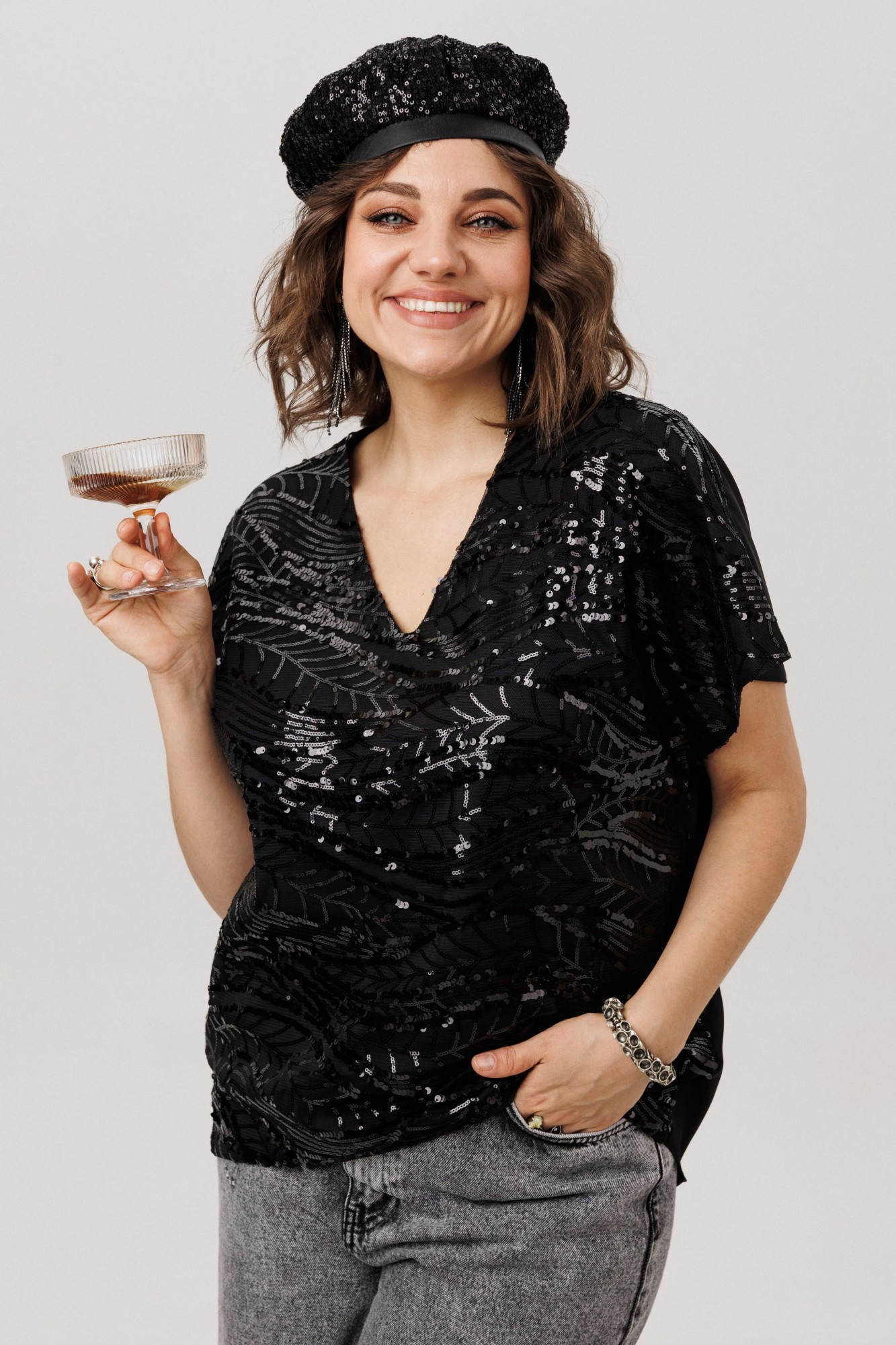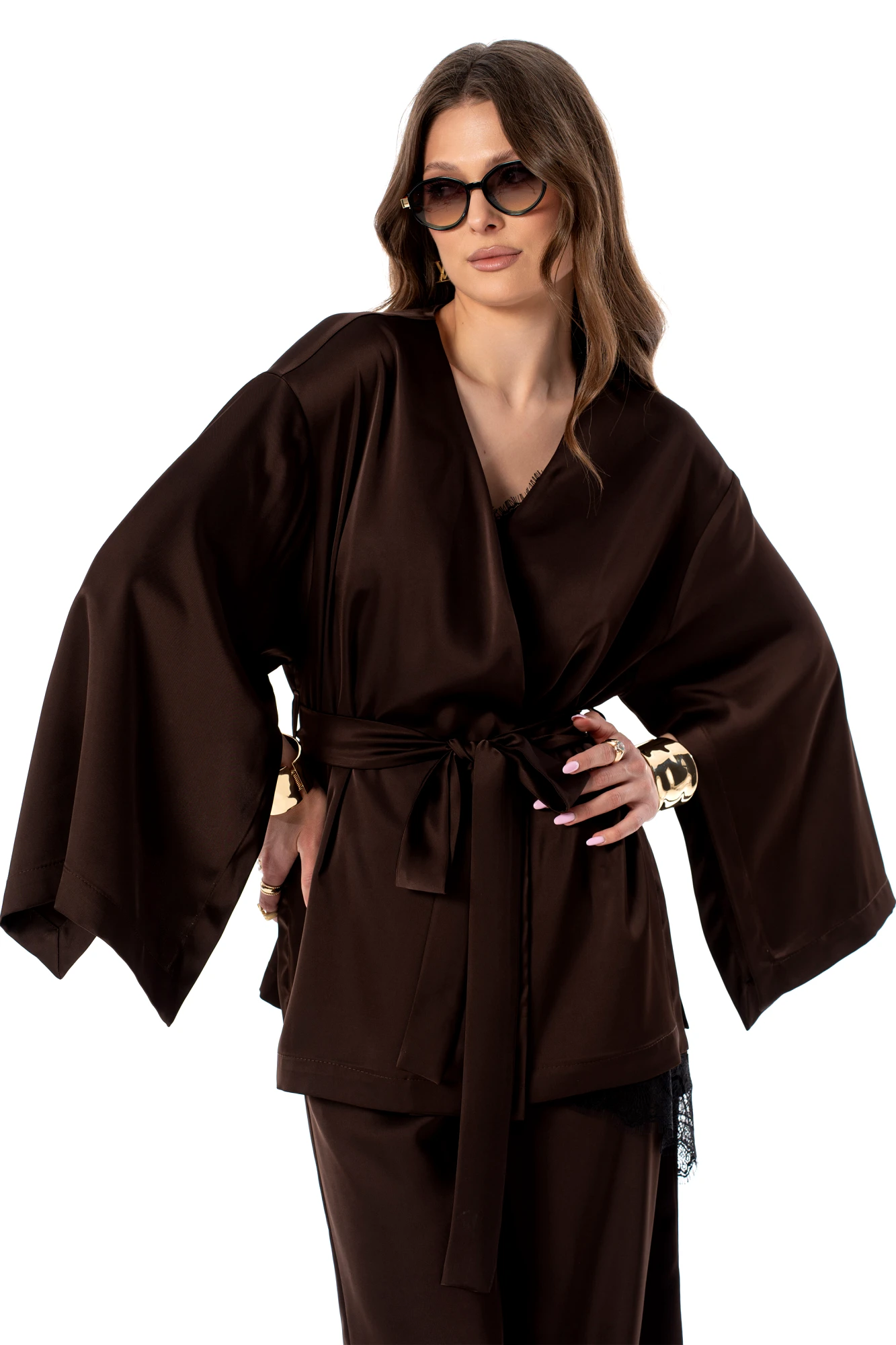 • Блузка с запахом - визуально скрывает объем груди.