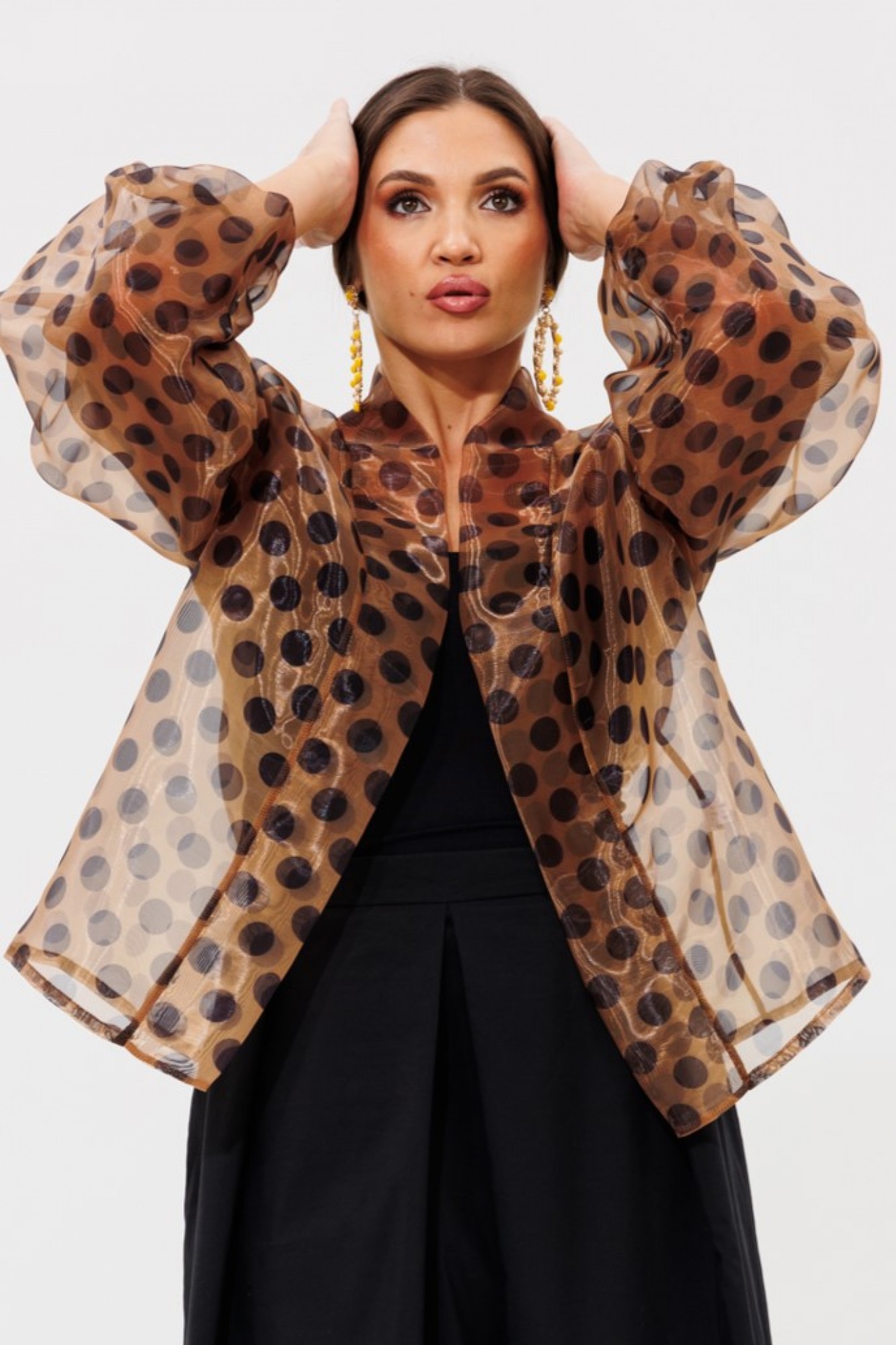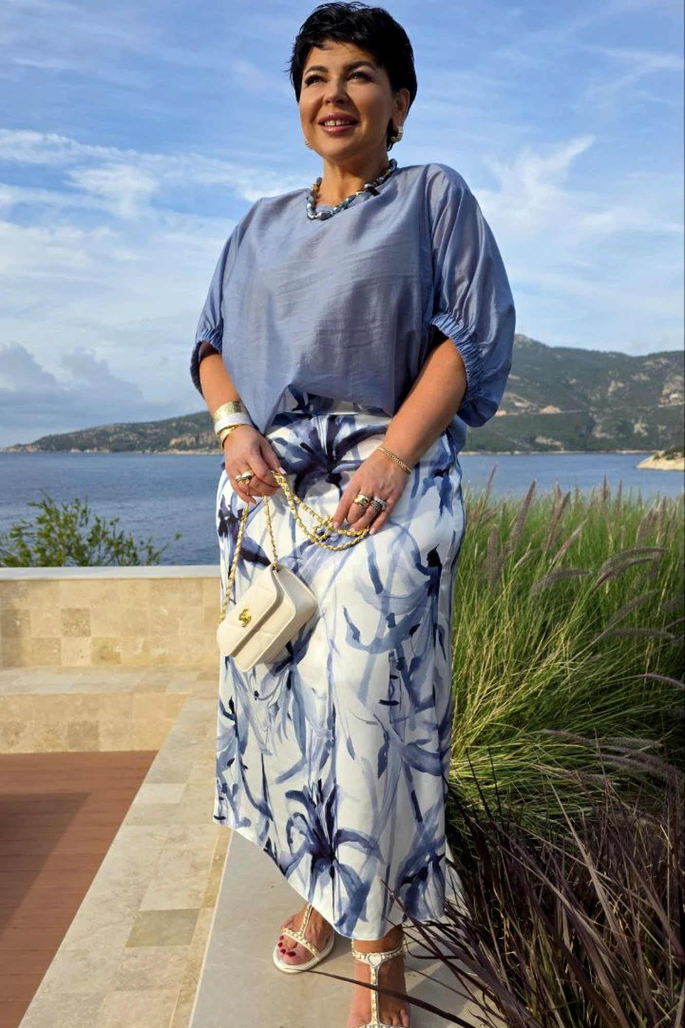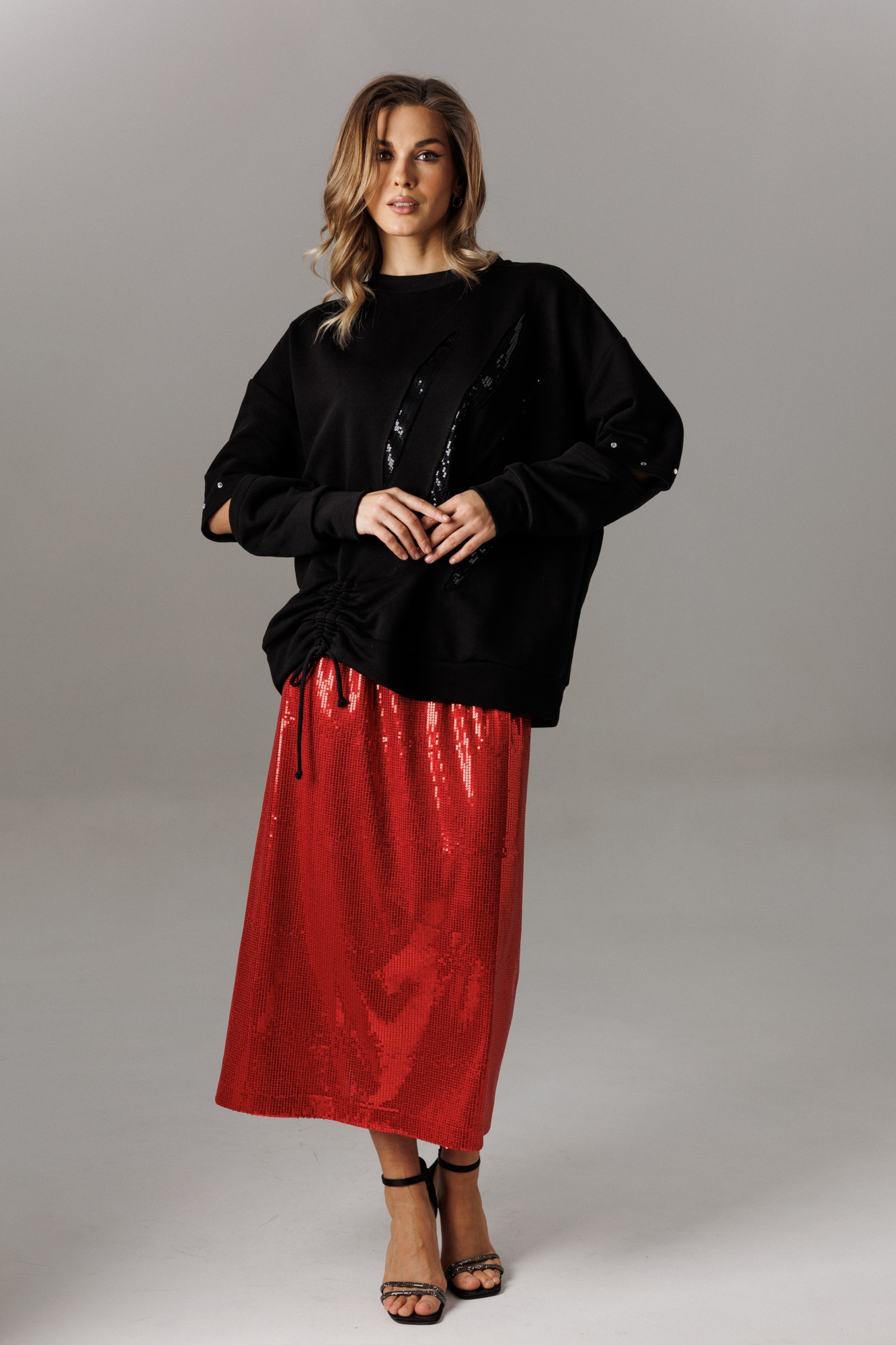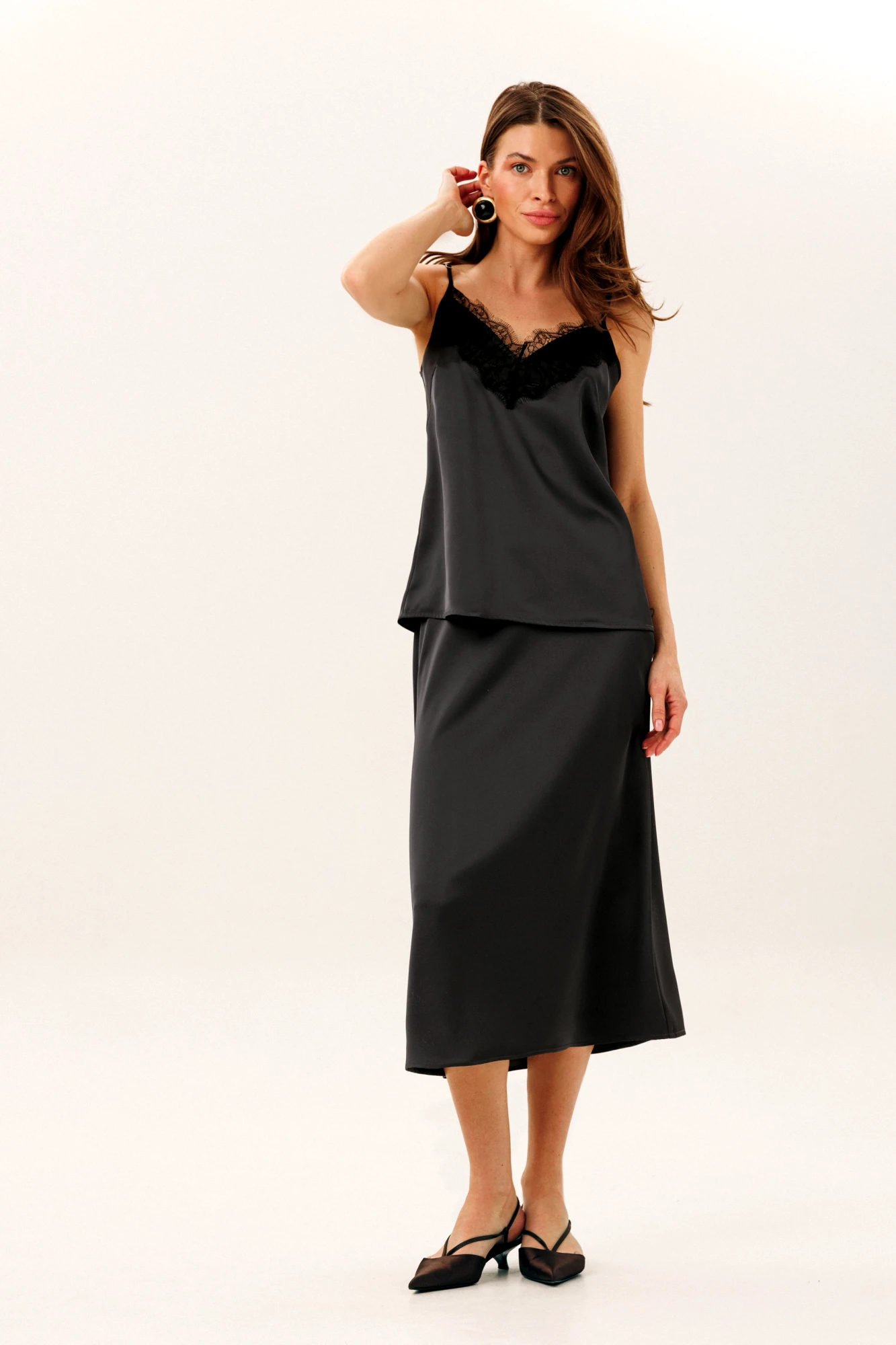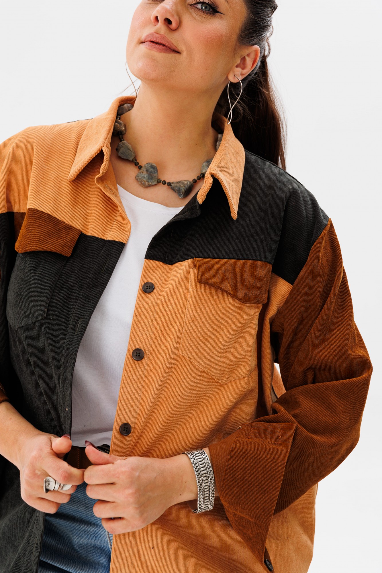 • Блузка с запахом - визуально скрывает объем груди.
