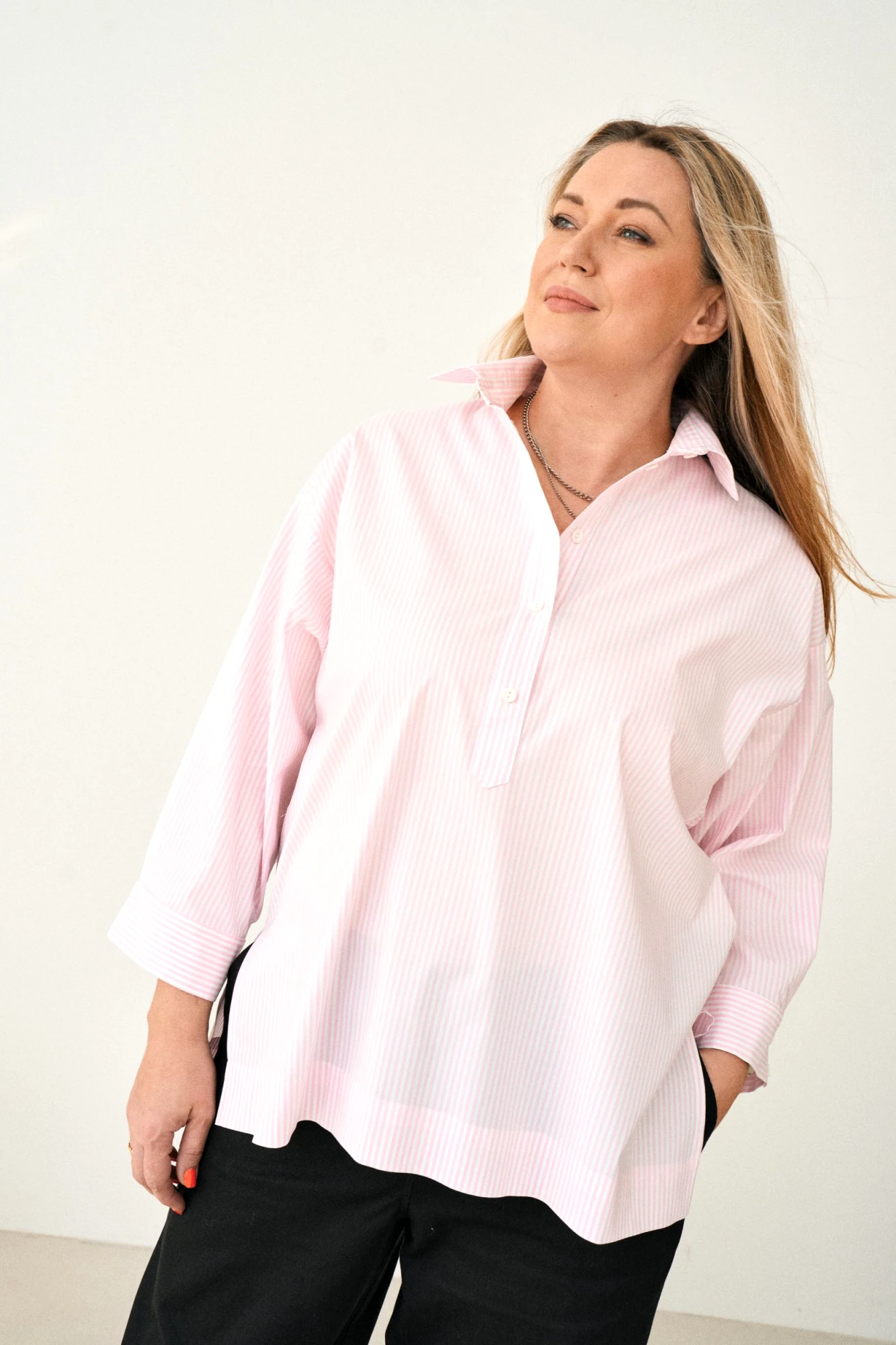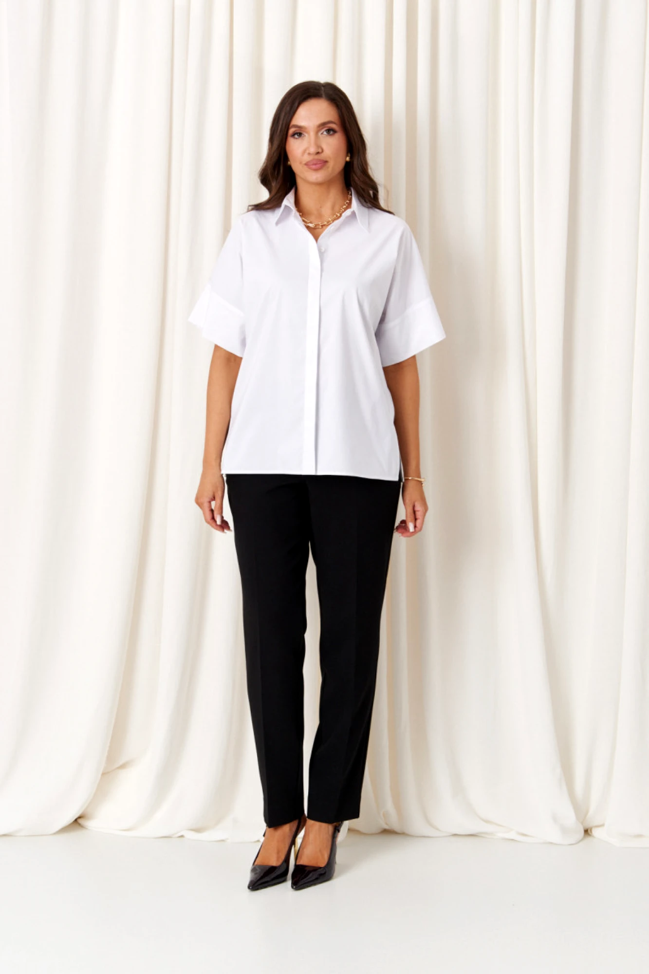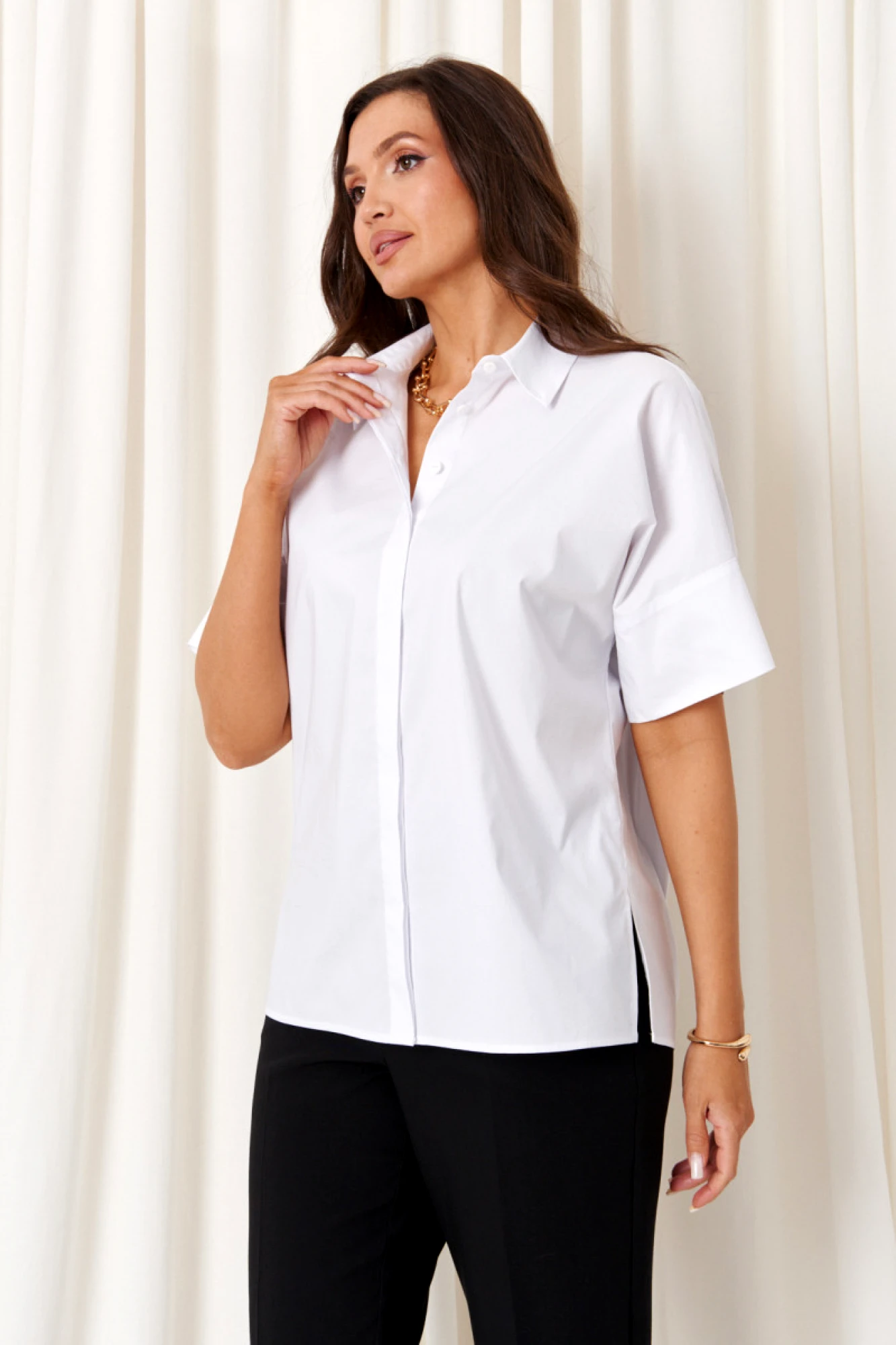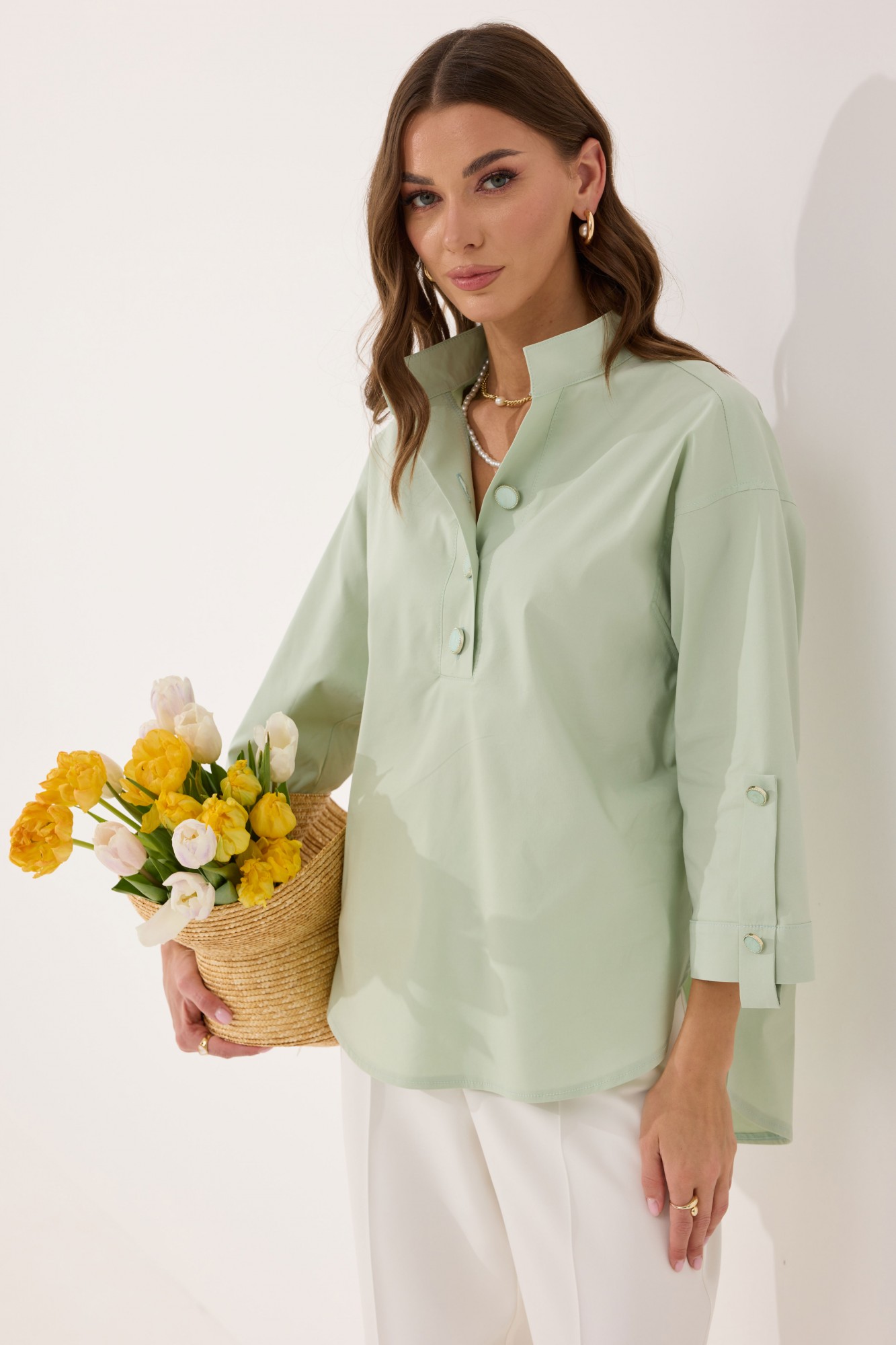 • Батник – приталенная блузка навыпуск с застежкой на планке.