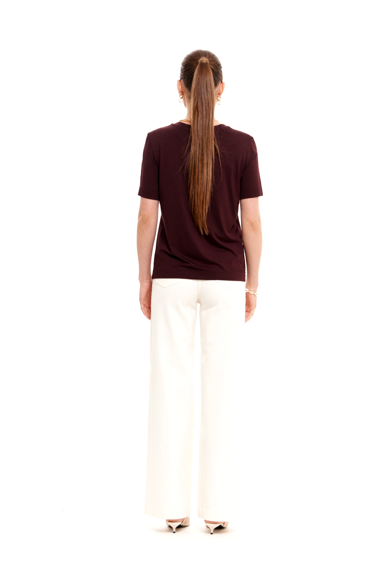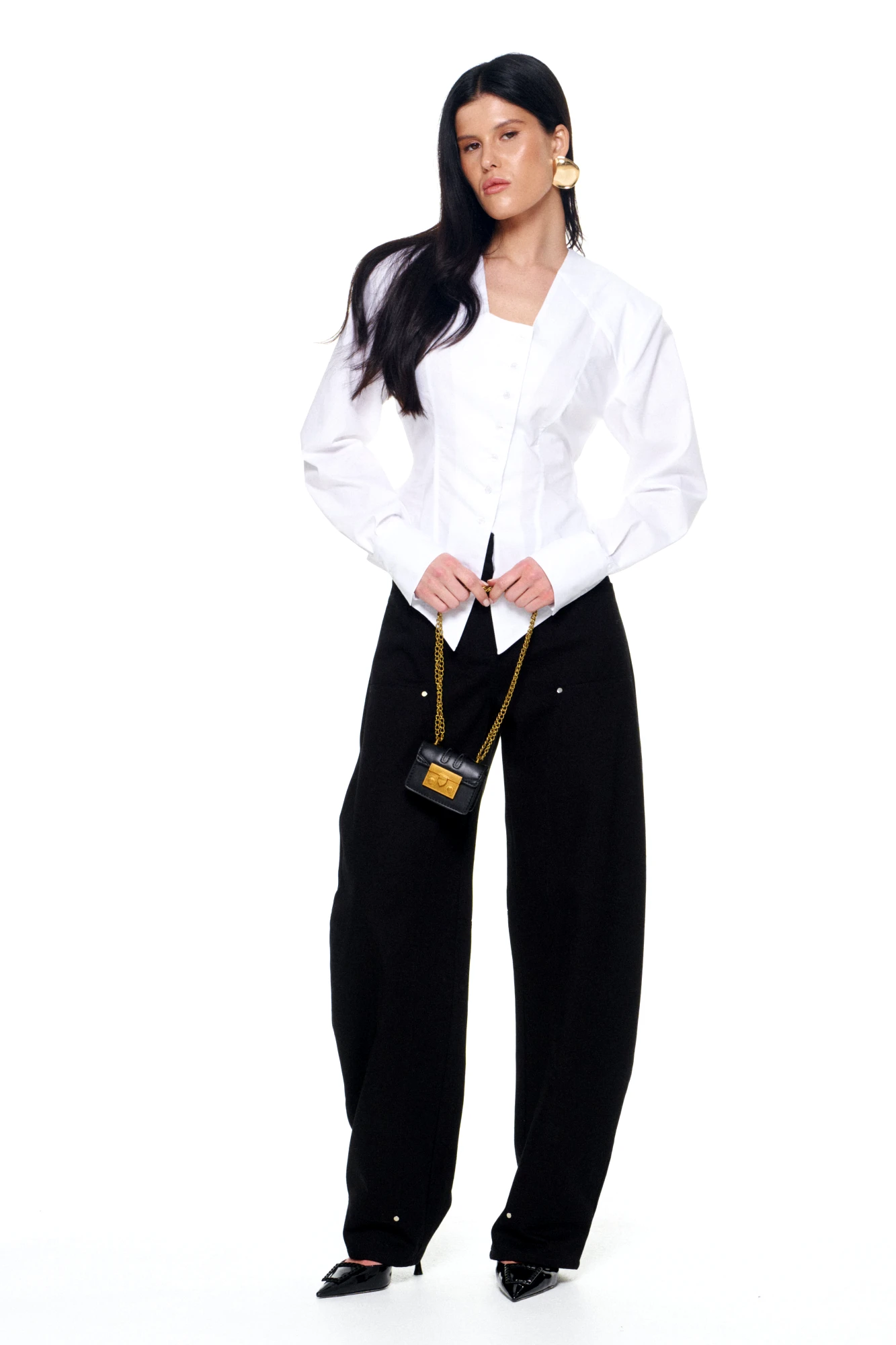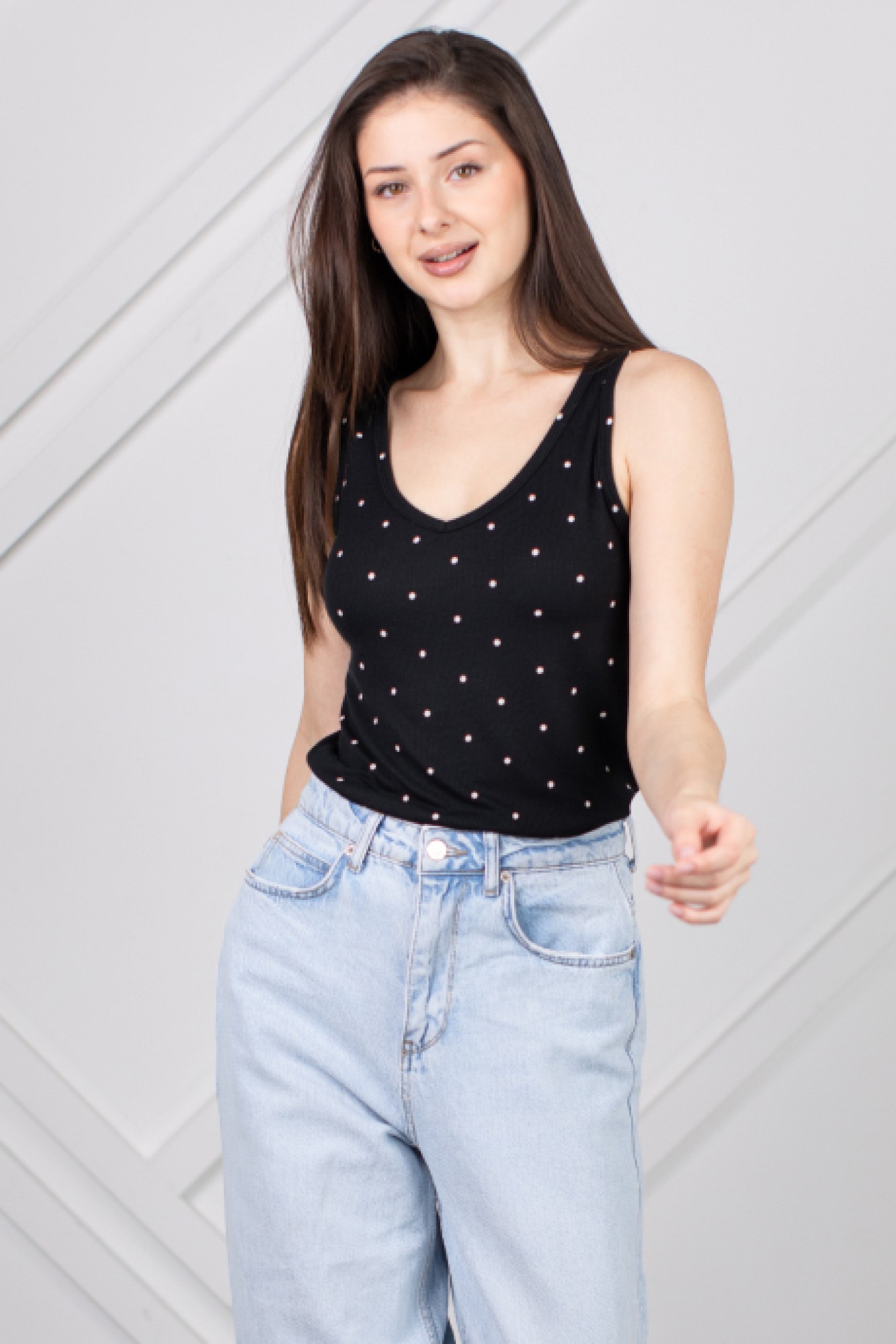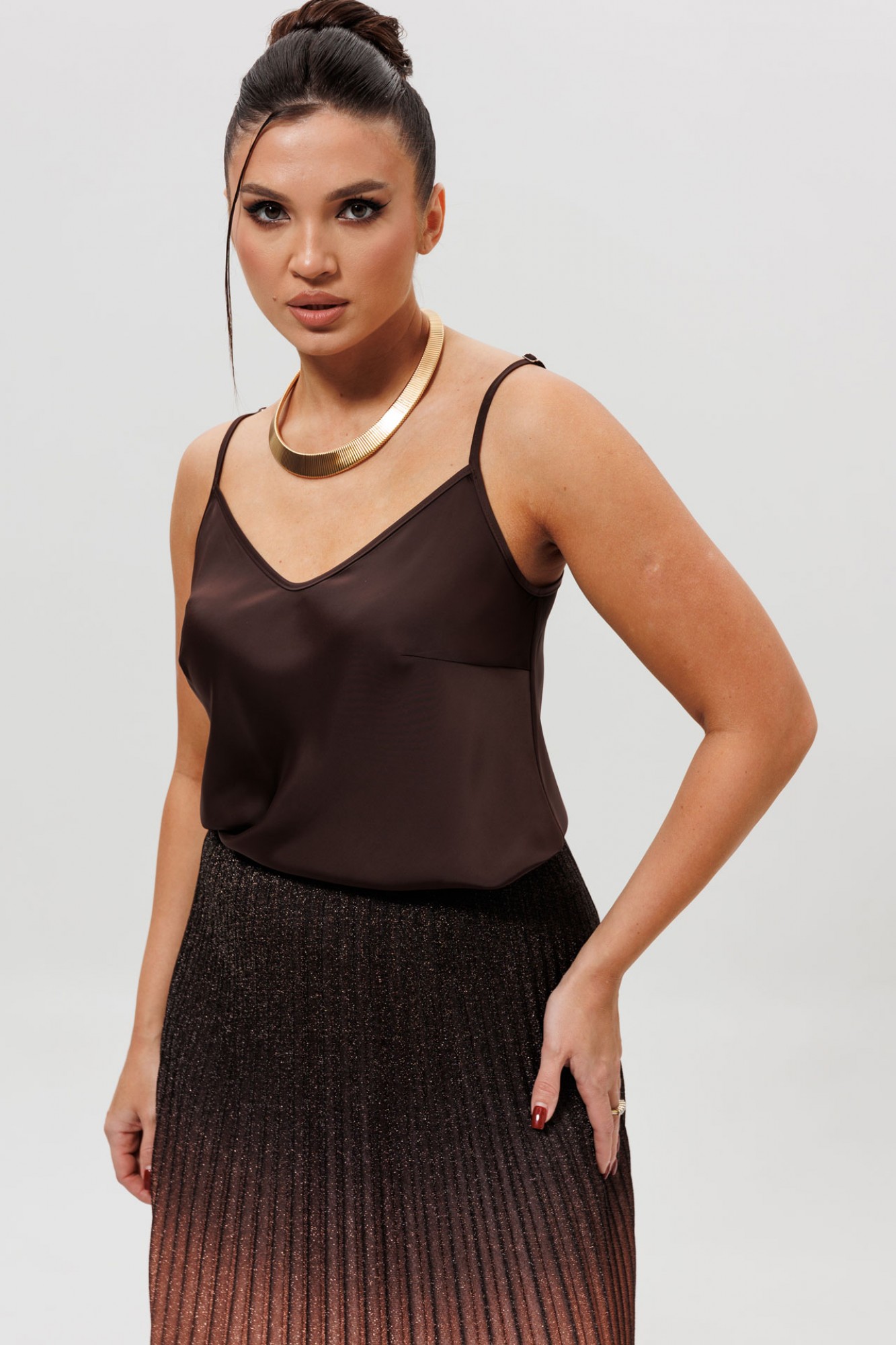 • Блузка с V –образным вырезом горловины – такая модель, наглядно делает больше длину вашей шеи.