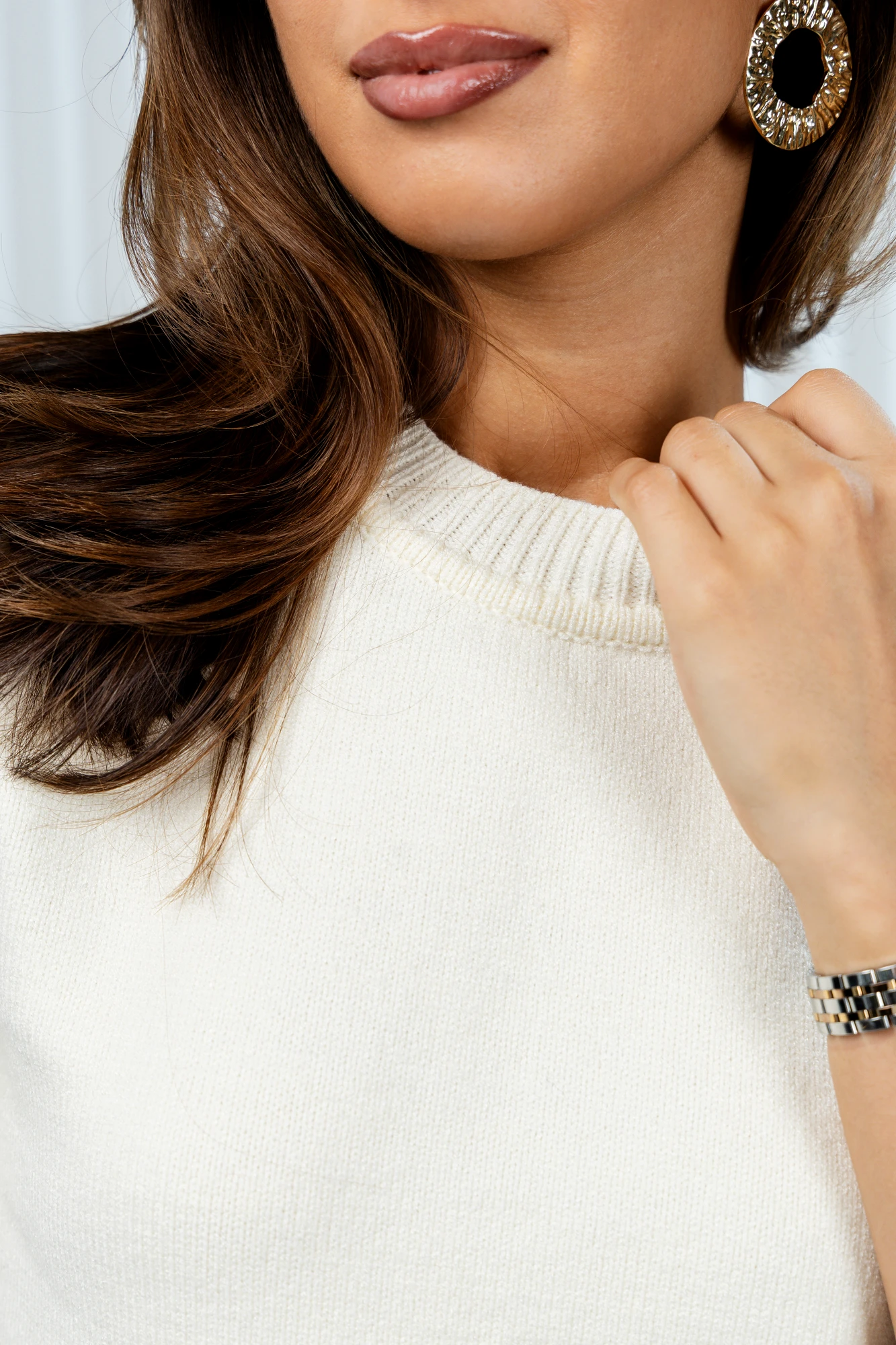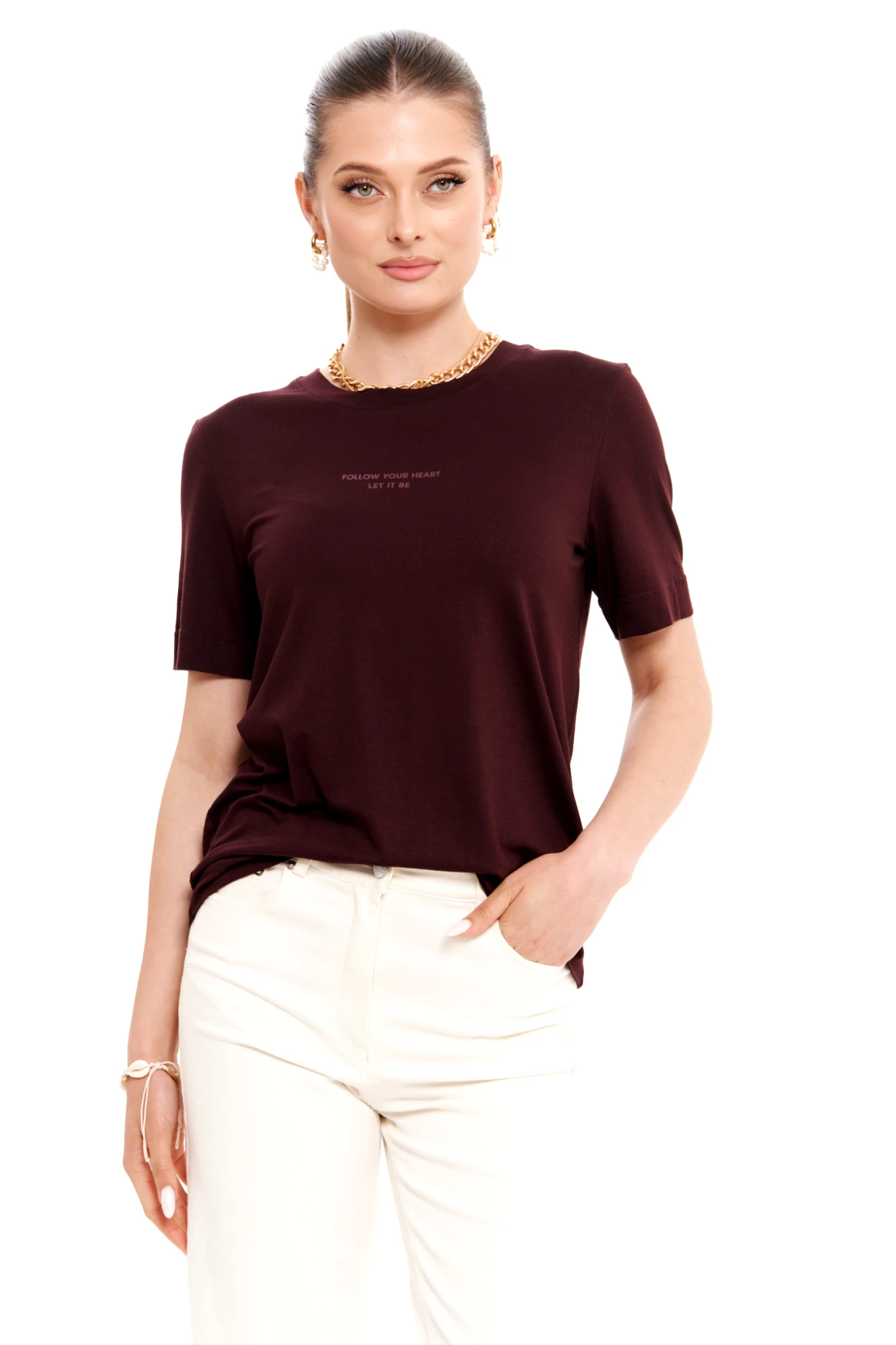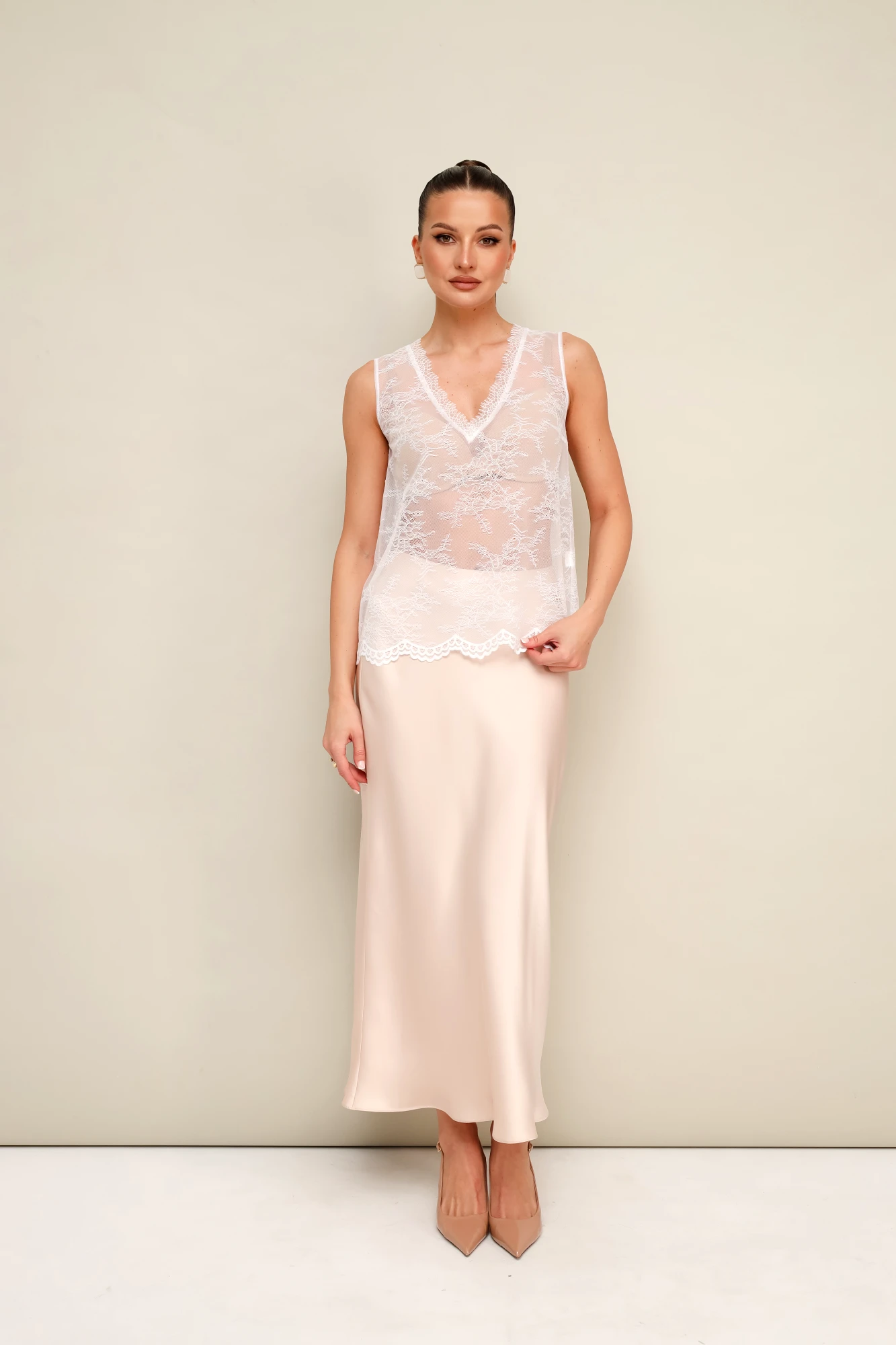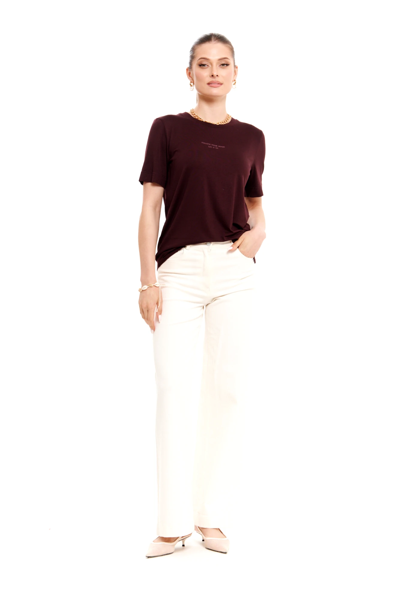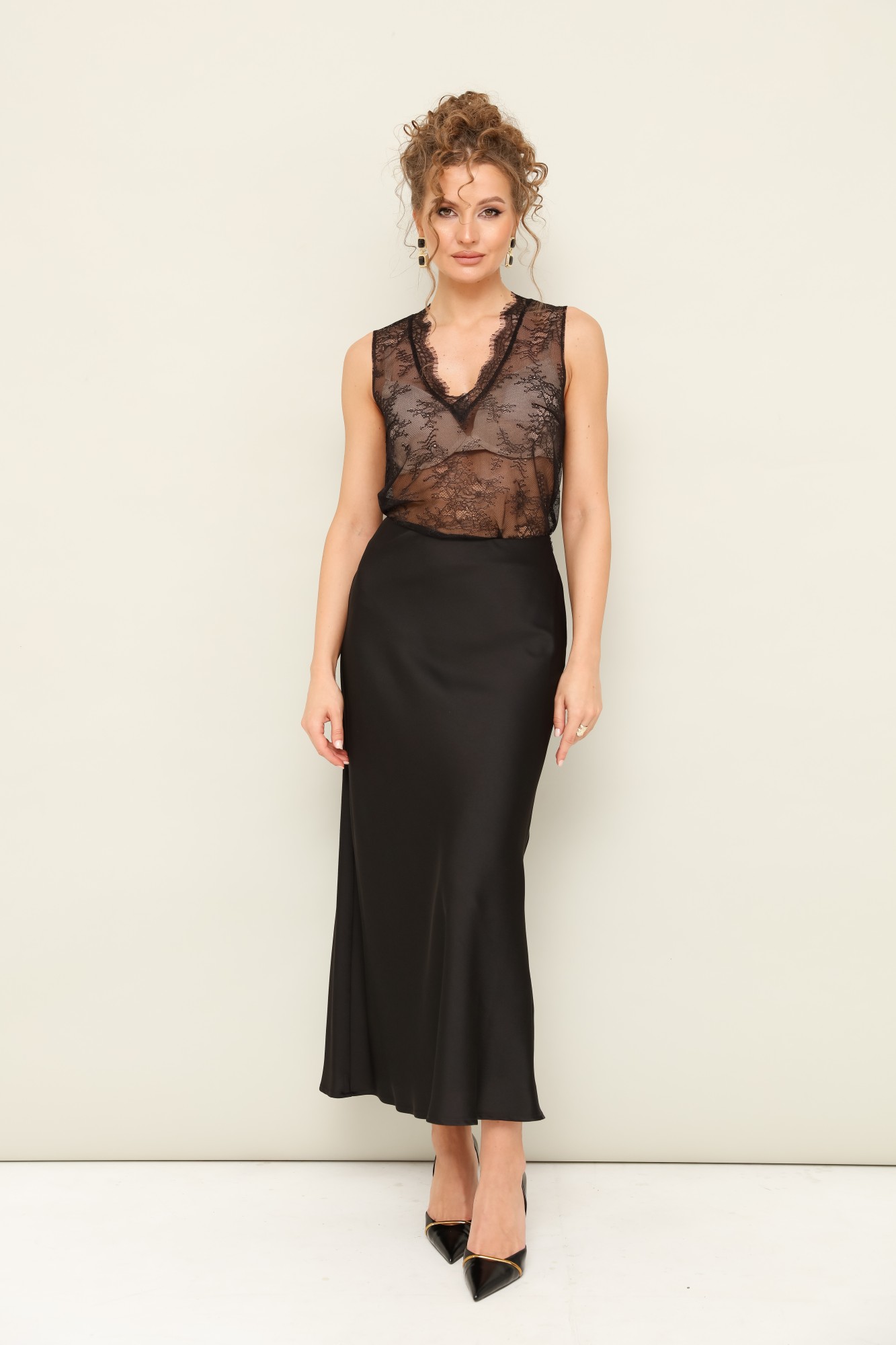 • Блузка с V –образным вырезом горловины – такая модель, наглядно делает больше длину вашей шеи.