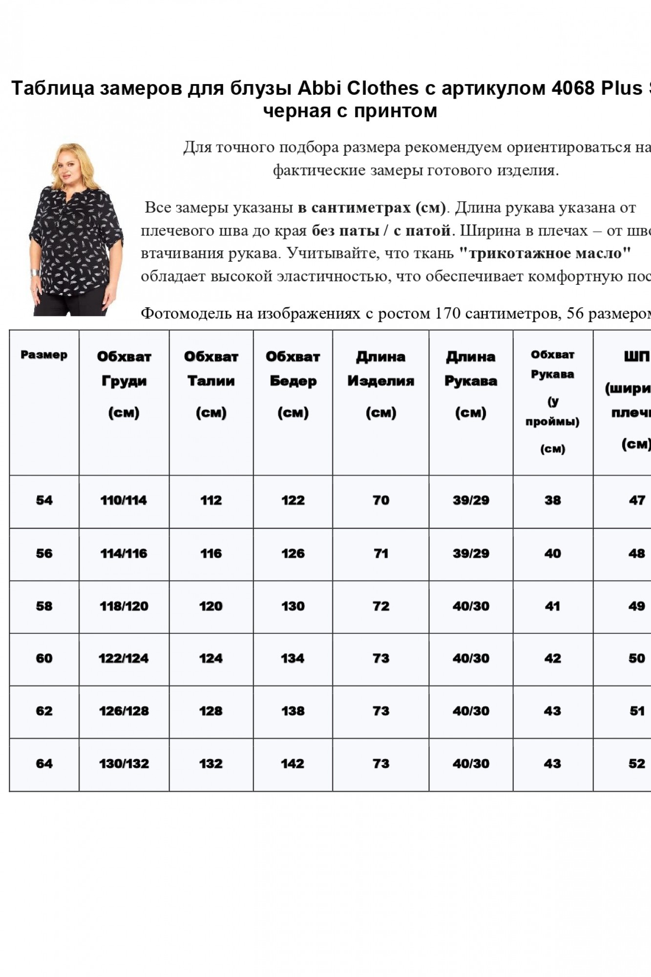 Откройте для себя идеальное сочетание стиля и комфорта с блузкой oversize "Abbi", созданной специально для женственных форм (от 54 до 64). Эта элегантная блузка станет незаменимой частью вашего гардероба, даря ощущение легкости и уверенности в себе.