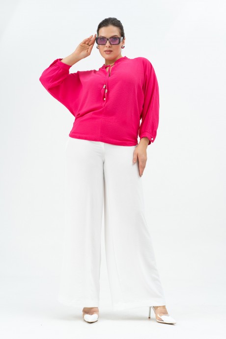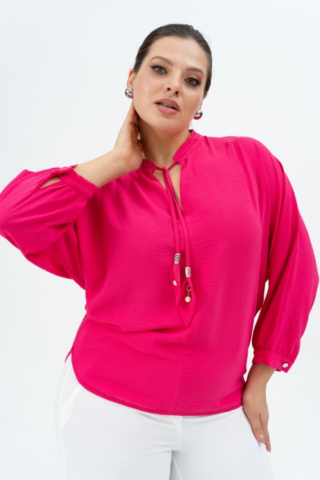 Блузка женская как для праздников так и для любого повода, покроя "летучая мышь" , воротник стойка на которую настрочена завязка с декоративными листиками с фурнитурой. Блузка со швом по центру полочки, рукава цельнокроеные, с притачными манжетами застёгивающимися на петлю и пуговицу. Низ блузки окантован, по спинке длиннее, по полочке короче. Блузку можно носить как в заправленном виде, так и на выпуск.