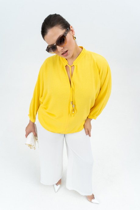 Блузка женская как для праздников так и для любого мероприятия , покроя "летучая мышь", со стойкой на которую настрочена завязка с декоративными элементами, со швом по центру полочки, рукава цельнокроеные, застёгивающиеся на петлю и пуговицу. Низ блузки по спинке длиннее, по полочке короче.