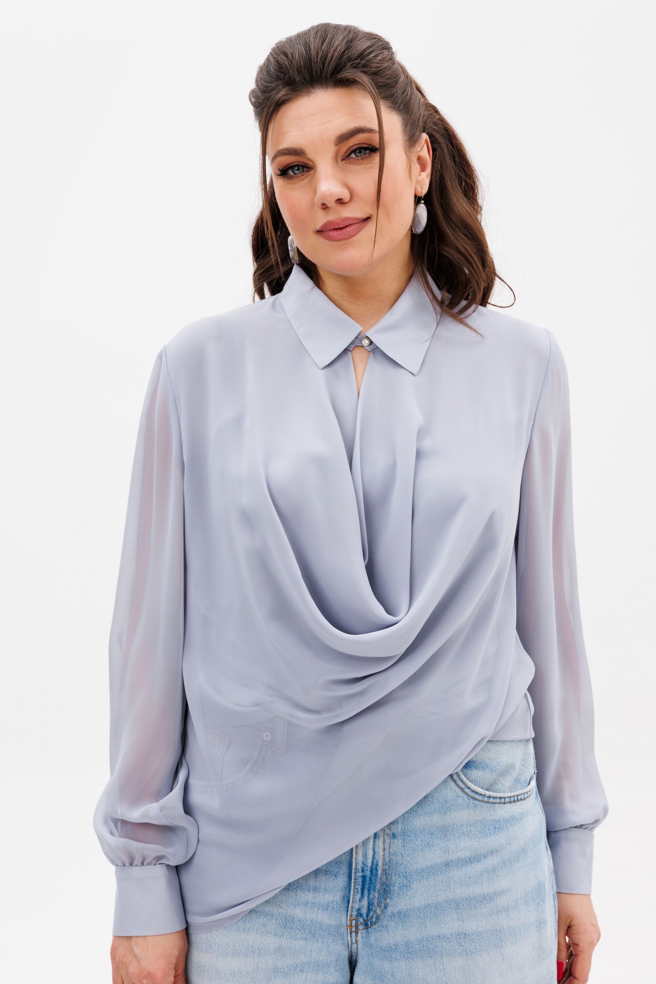 Длинный втачной рукав с аккуратными манжетами и классический воротник сорочечного типа с застежкой на пуговицу делают блузу идеальной как для офиса, так и для вечернего выхода.
