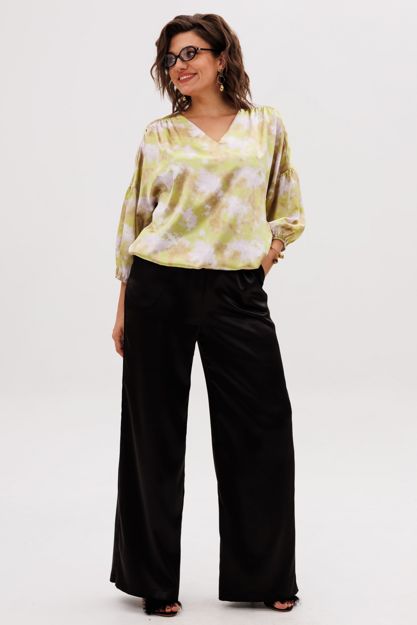Но главная тайна этой модели скрыта в ее сердце — эластичная резинка, проходящая по всему низу блузы. Эта деталь полностью меняет правила игры. Теперь вы сами становитесь творцом своего образа: укоротите блузу для дерзкого современного вида или отпустите ее для струящегося, романтичного силуэта. Она послушно следует за вашим желанием, подстраиваясь под настроение и ситуацию.