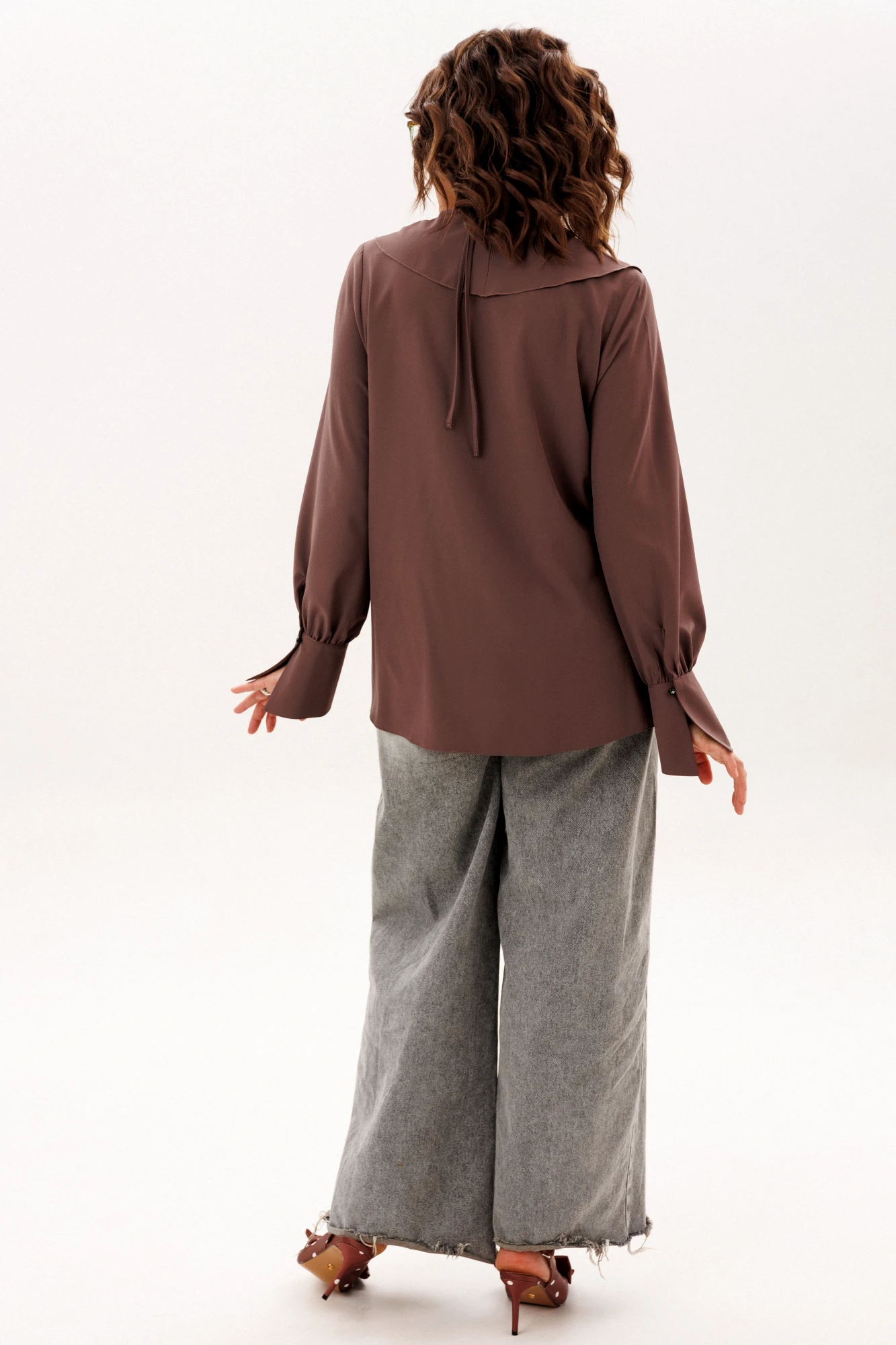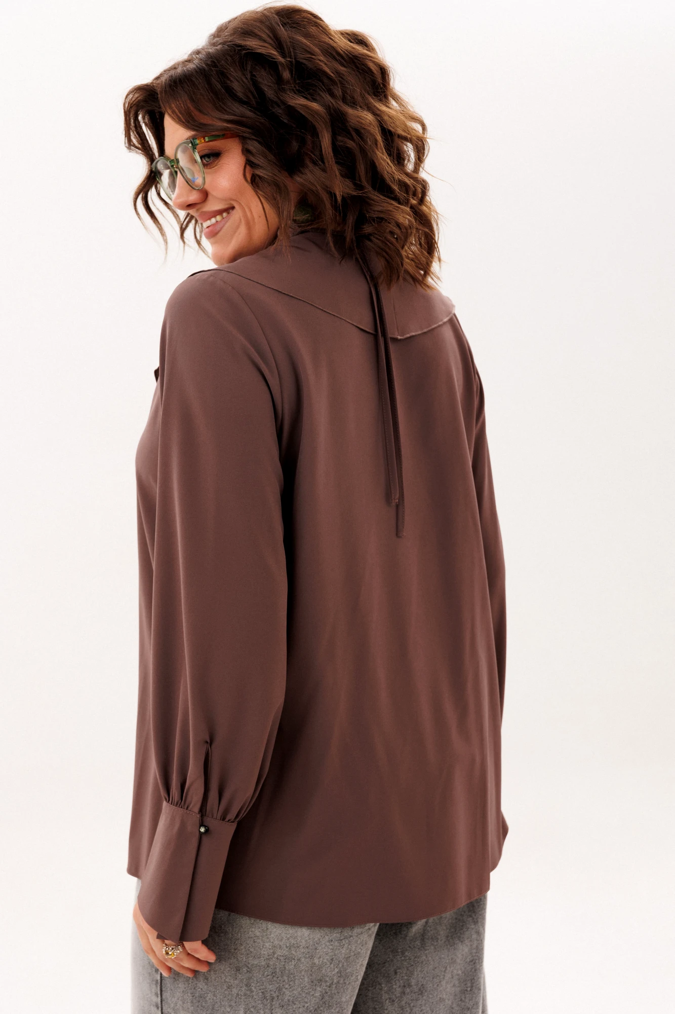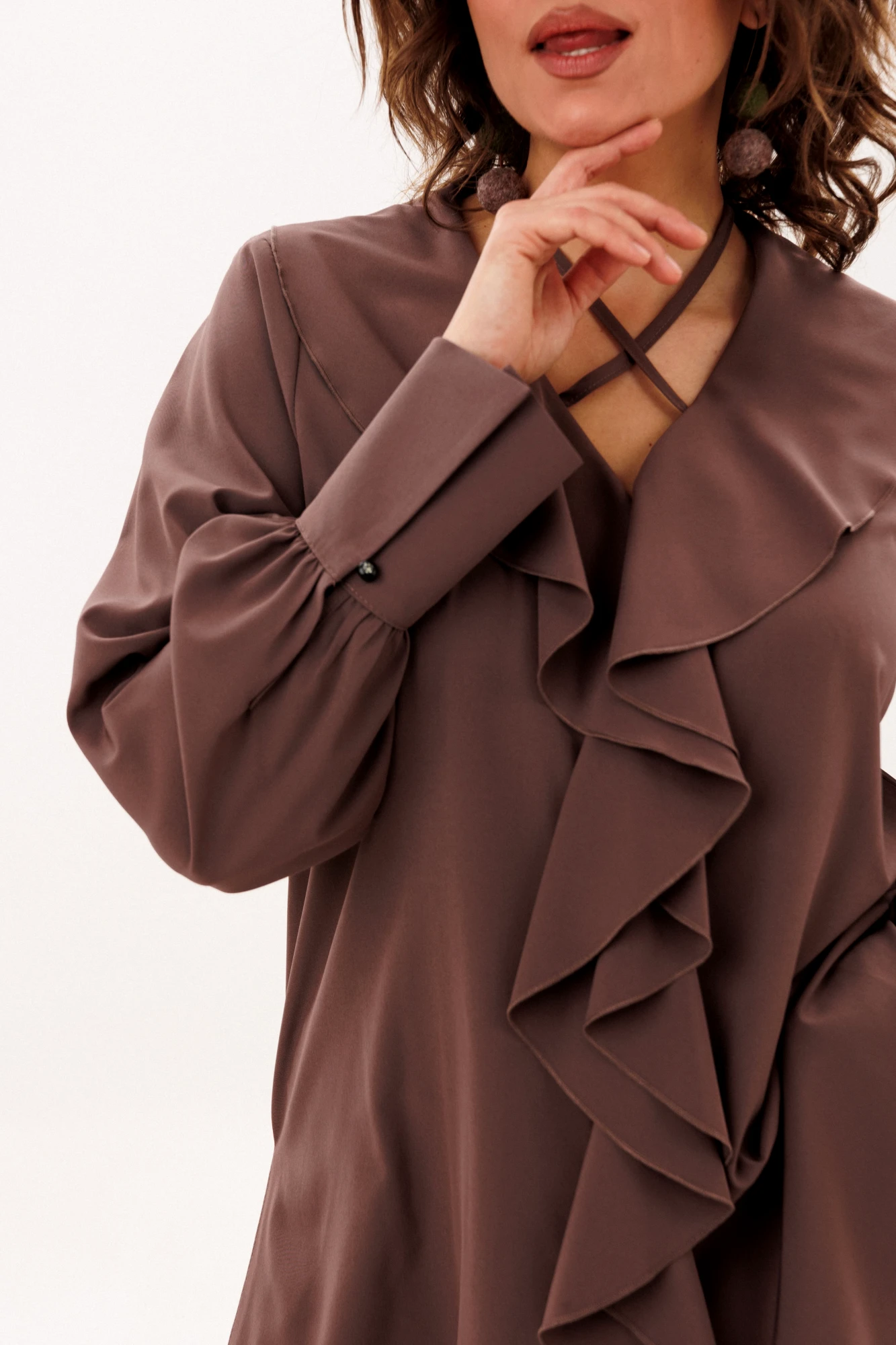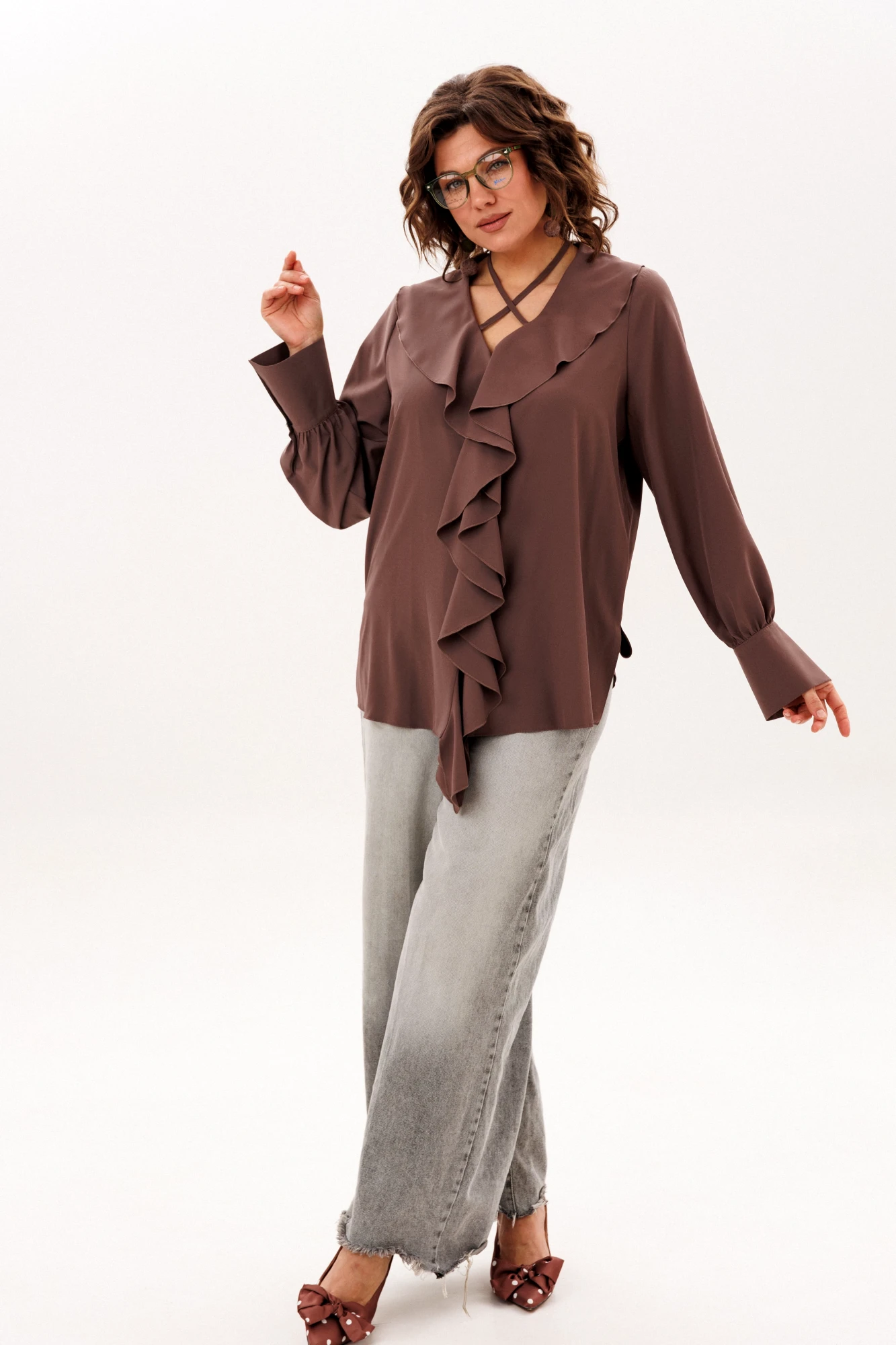 Особое очарование блузе придает ее цвет - нежный «молочный шоколад». Этот бархатистый, «вкусный» оттенок словно тает на коже, добавляя образу пленительной мягкости и делая эту модель настоящим искушением для настоящих ценительниц романтичного стиля.