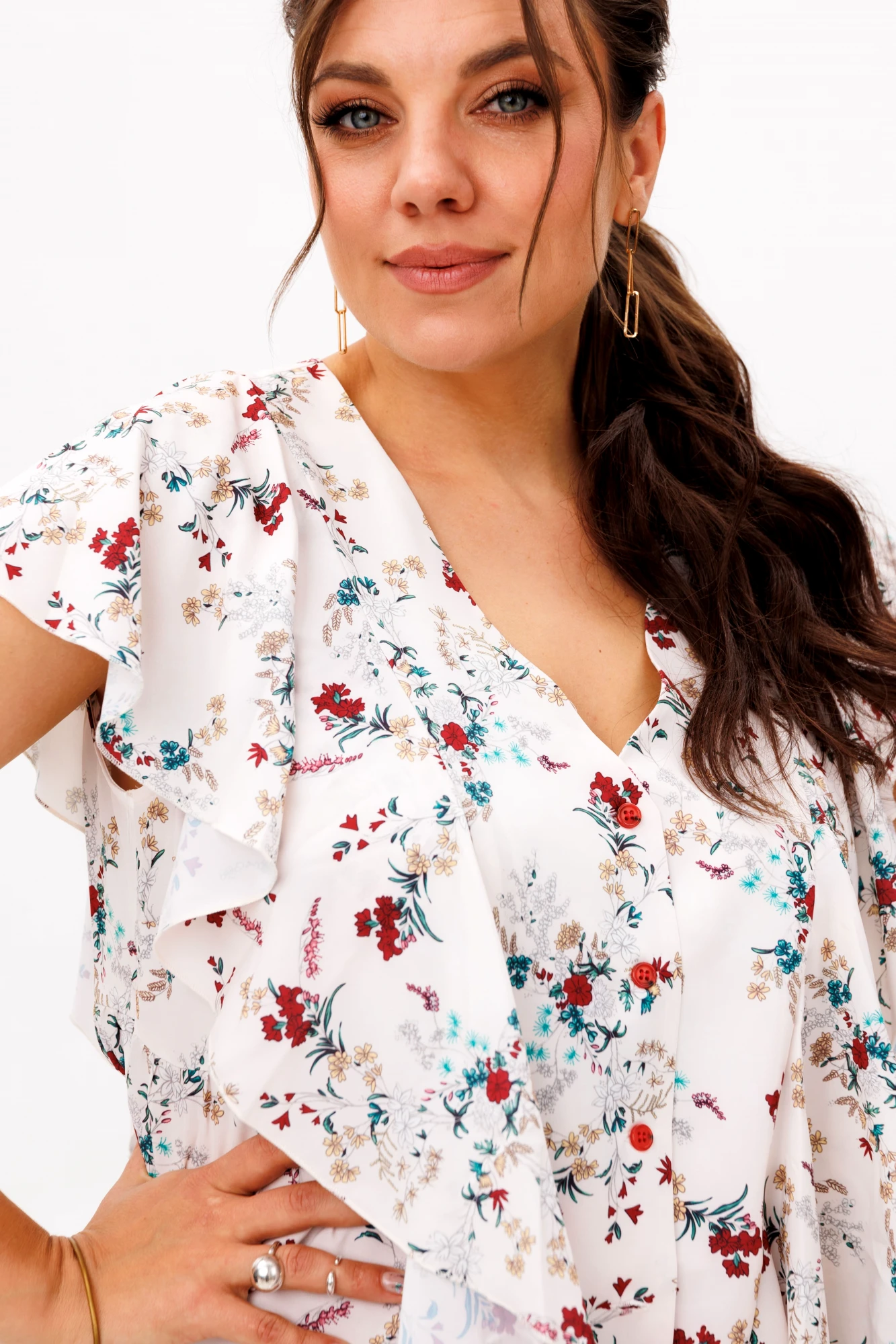 Эта блуза «кветки» легко становится любимой - она гармонично сочетается с брюками, юбками или джинсами, создавая мягкие, кокетливые образы на каждый день.