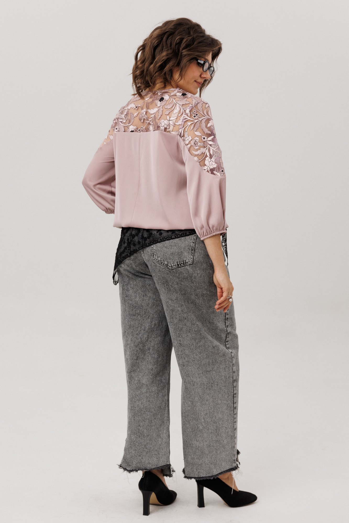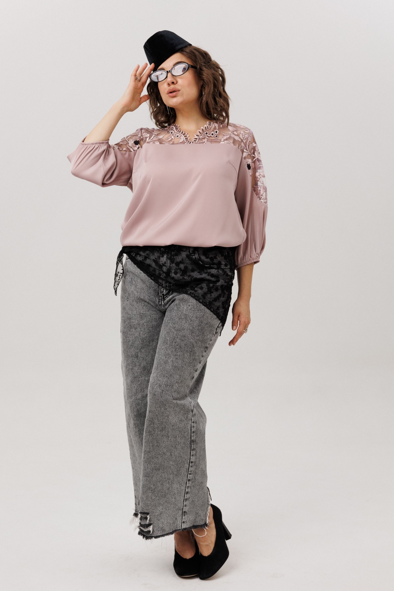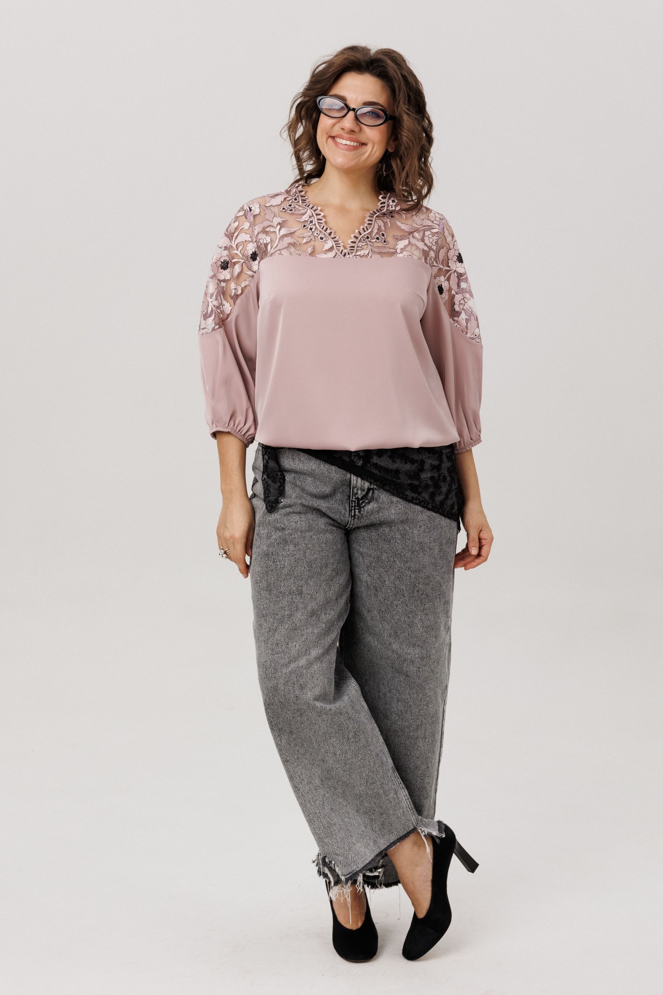 Эта блуза - воплощение изящной женственности и воздушного очарования. Её свободный, струящийся силуэт мягко обволакивает фигуру, даря ощущение лёгкости и невесомости. Фигурный вырез горловины плавными линиями подчёркивает красоту линий, добавляя образу утончённости в этом шикарном цвете «пудровая вуаль». Верхняя часть, словно лёгкое кружевное облако с изысканными кокетками на полочке, спинке и изящными вставками на рукавах, переходит в благородный гладкий атлас, мерцающий приглушённым блеском. Рукава три четверти, собранные у низа на тонкую резинку, и такой же аккуратный низ самой блузы создают мягкие, едва уловимые волны, добавляя образу воздушности и динамики. Эта вещь от Анелли - искусное сочетание романтичного кружева и мягкого сияния атласа, которое способно превратить любой день в маленькое событие. Она станет идеальным спутником как для светского праздника, так и для тёплого корпоративного вечера, где царят красота и элегантность.