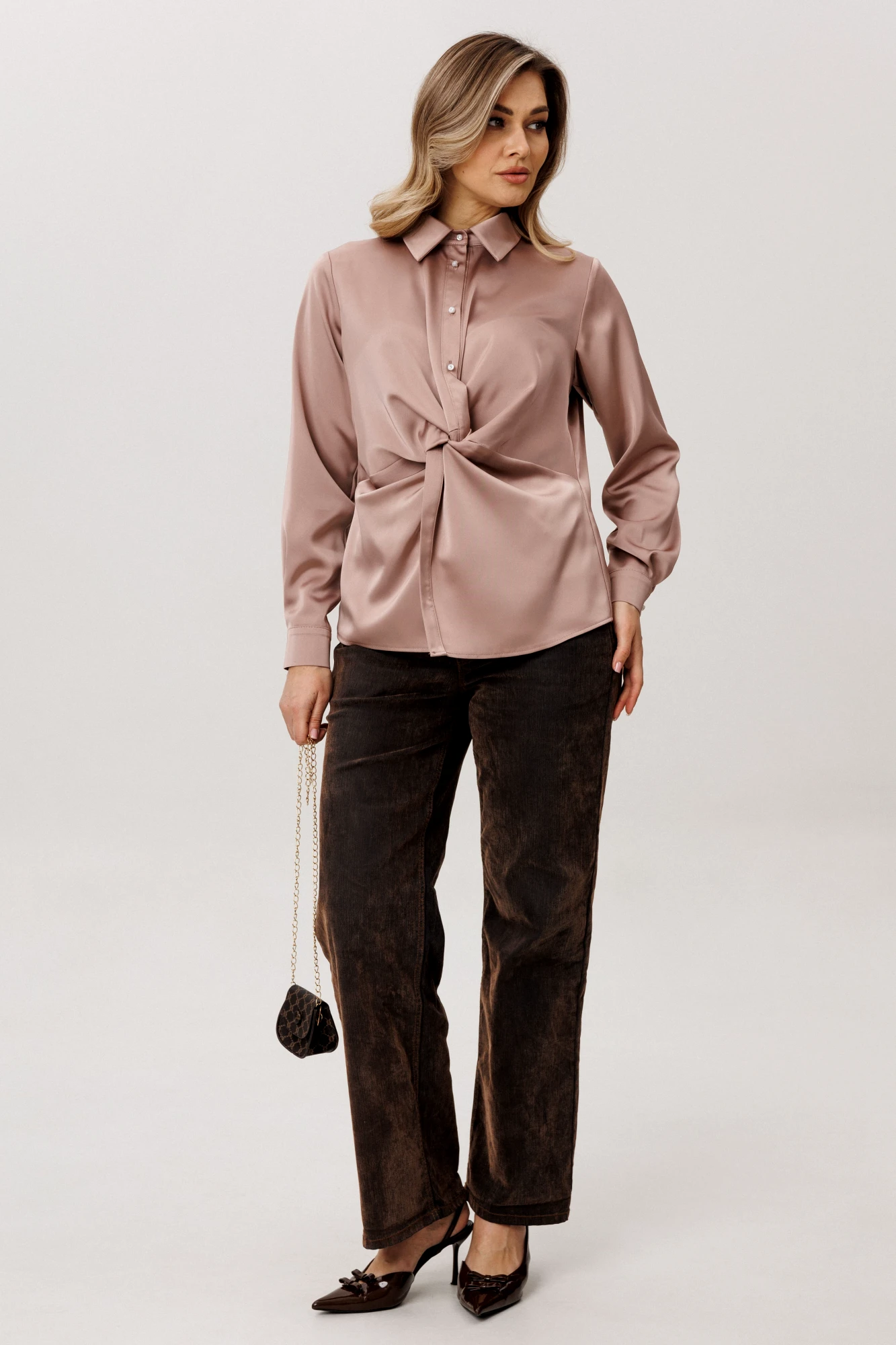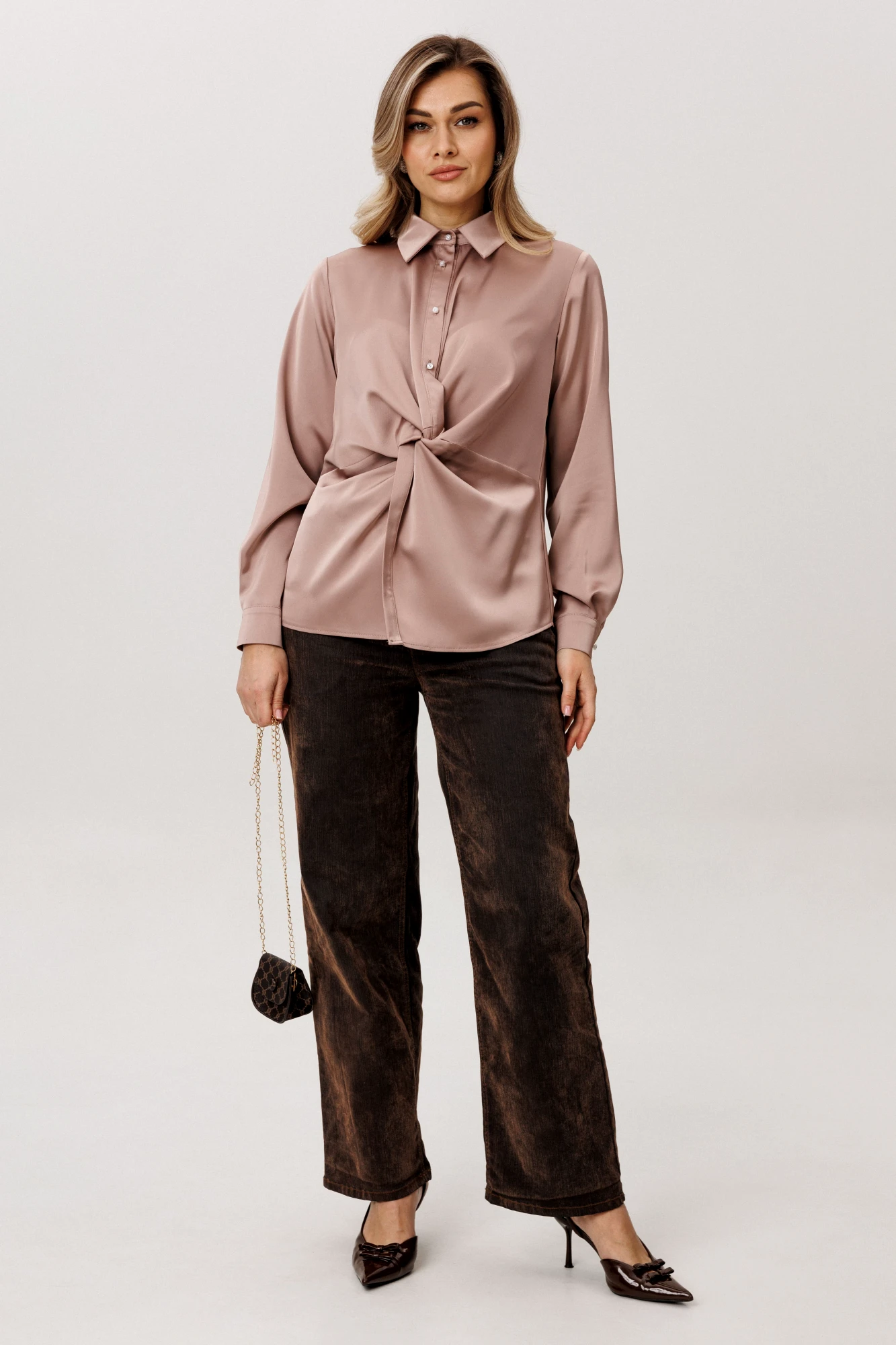 Блуза в цвете «айс карамель» создана для того, чтобы даже самый обычный день наполнился ощущением особенного стиля и утонченной женственности.