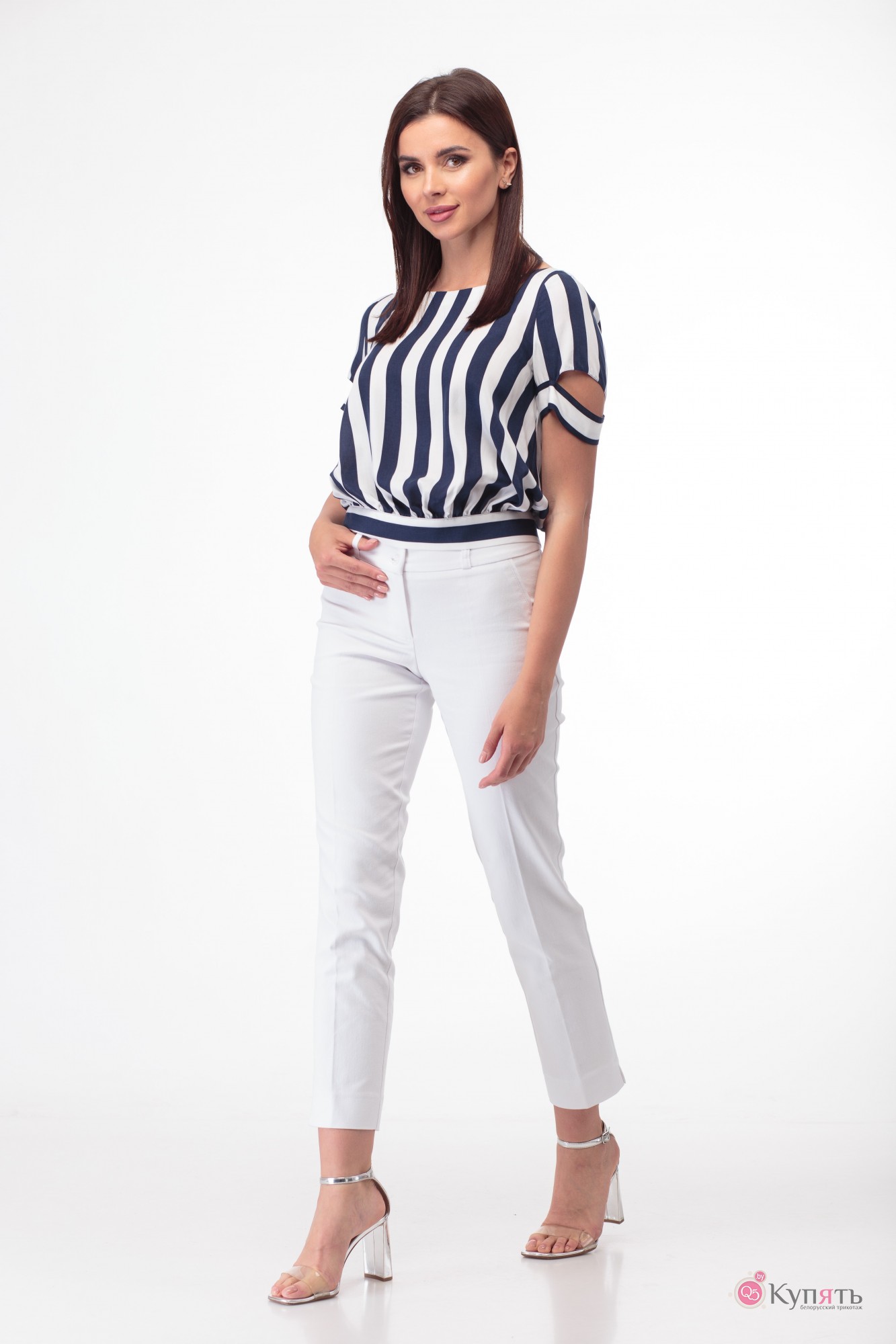 Блуза сфотографирована в образе с брюками Anellistyle – 228 белого цвета.