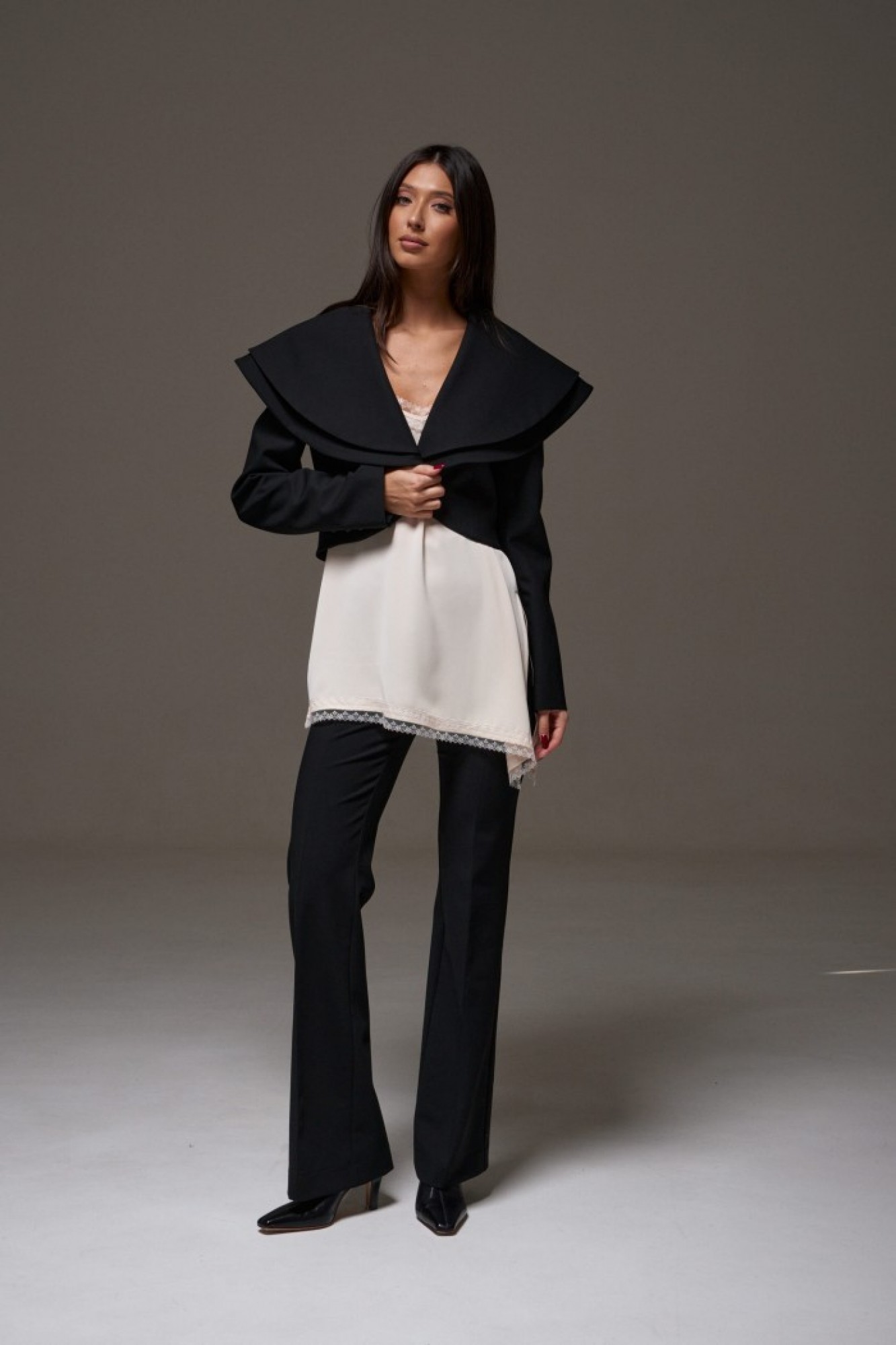 Длина по длинному боковому шву с учетом кружева 60 см. Длина разреза с учетом кружева 32 см.