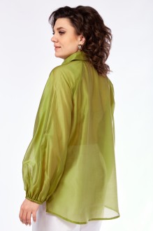 Блуза женская свободного кроя с центральной потайной застежкой на петли и пуговицы. Рукав реглан, собран по низу на резинку. Воротник стояче-отложной с отрезной стойкой. По боковым швам обработаны разрезы.