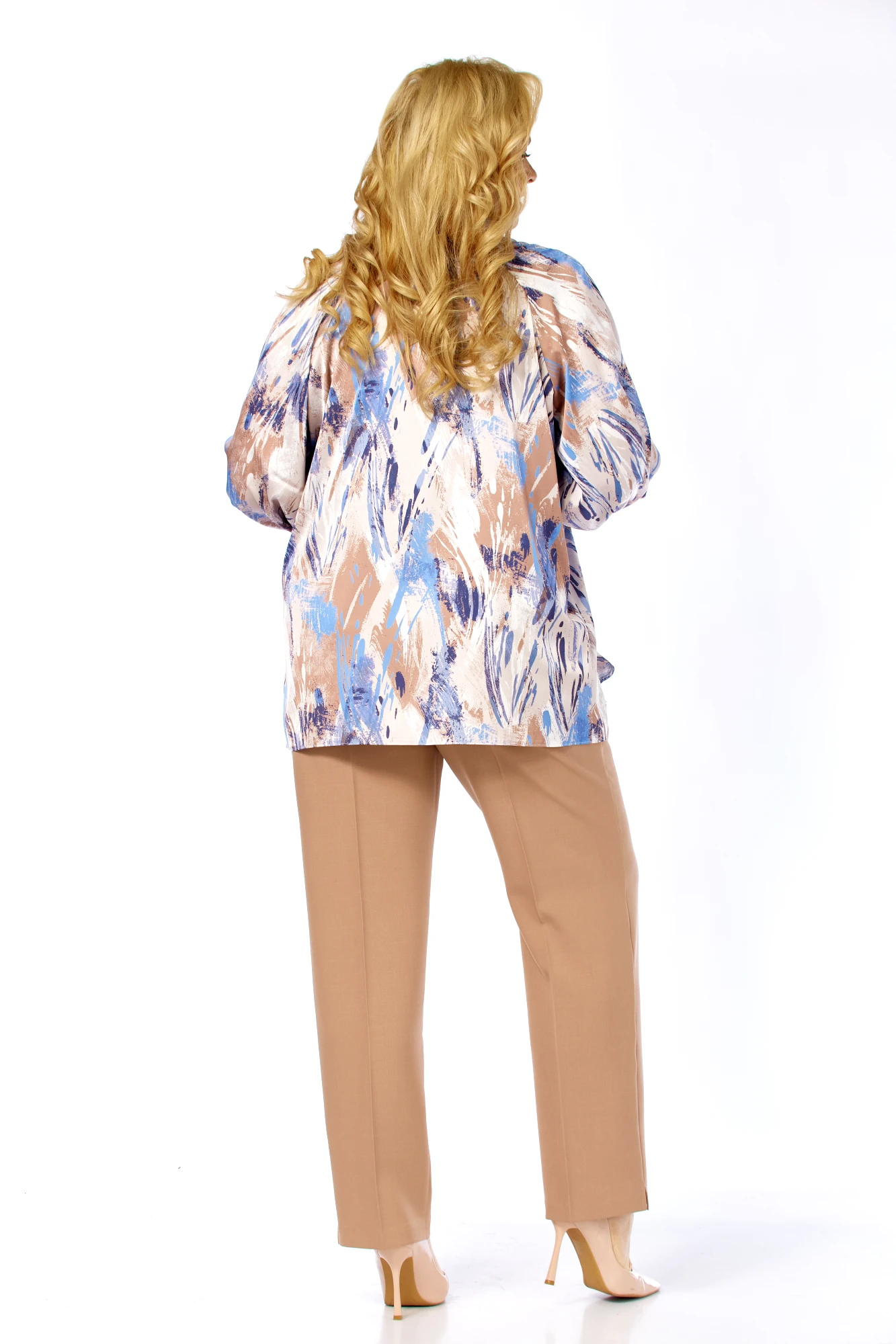 Блузка Элль-Стиль 2456 а бежево-голубой принт