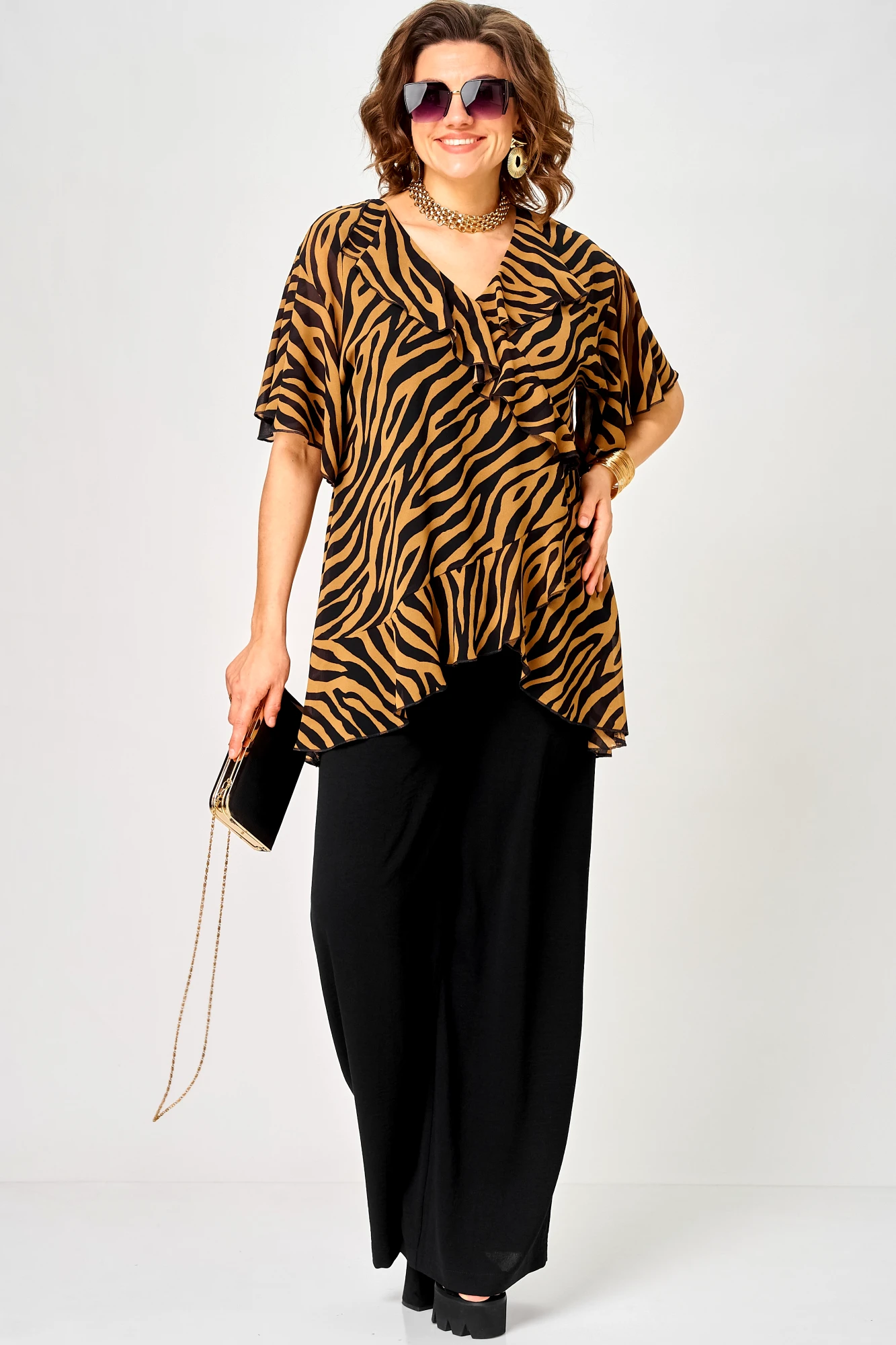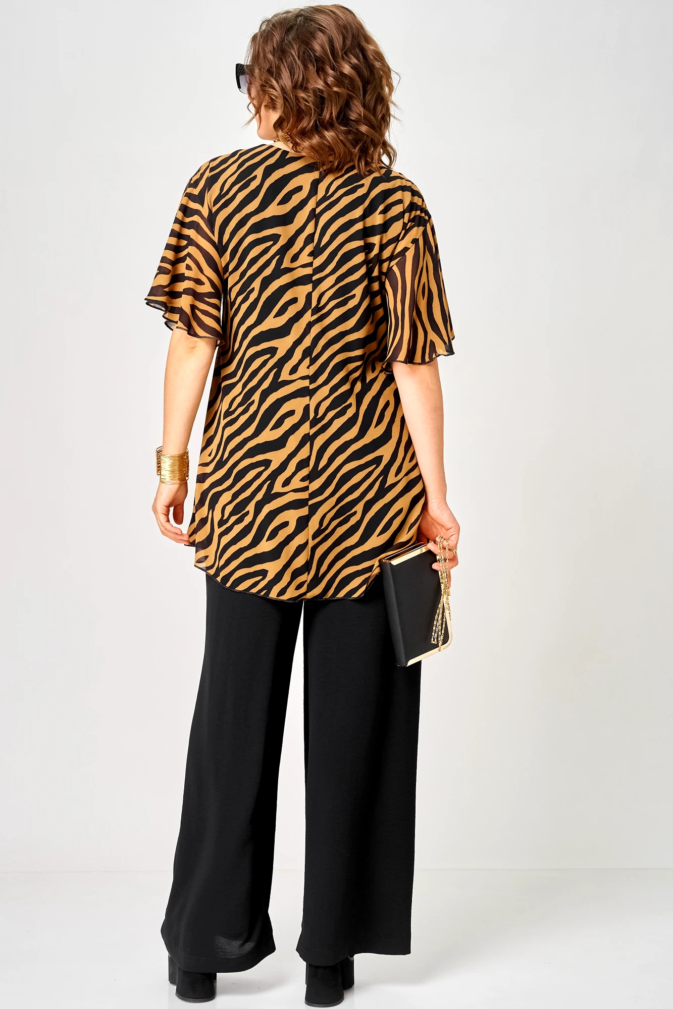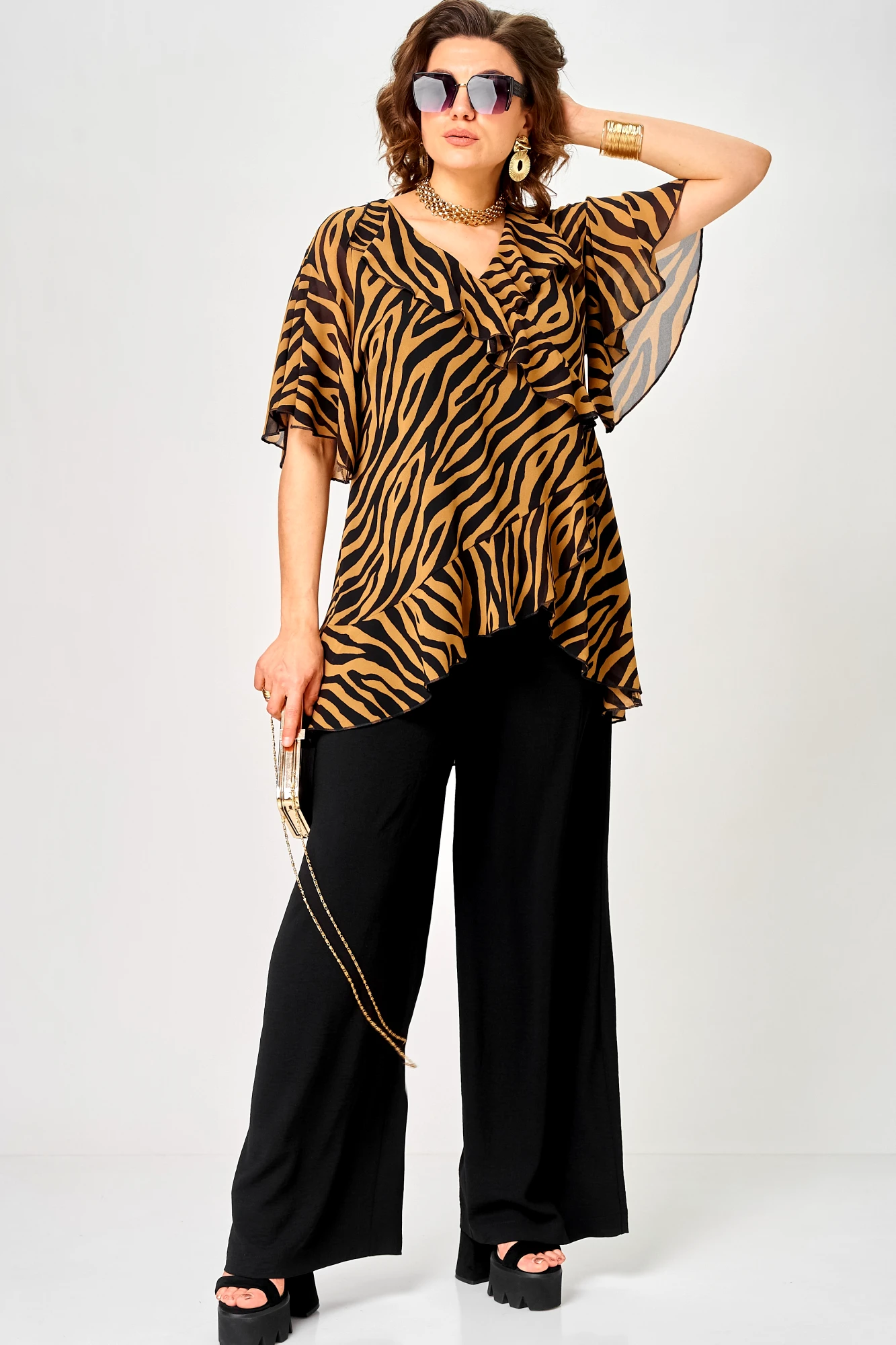 Блузка EVA GRANT 198 -1 принт зебра, кофе