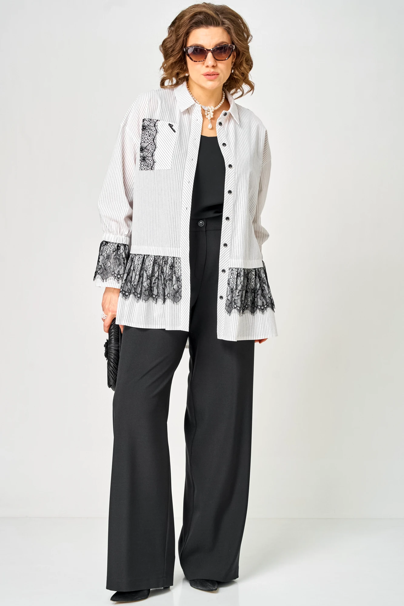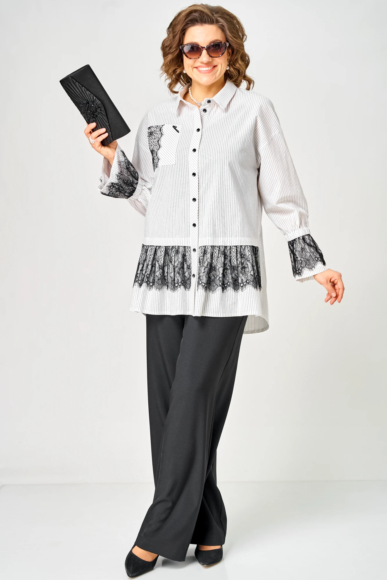 Блузка EVA GRANT 5002 белый, полоска