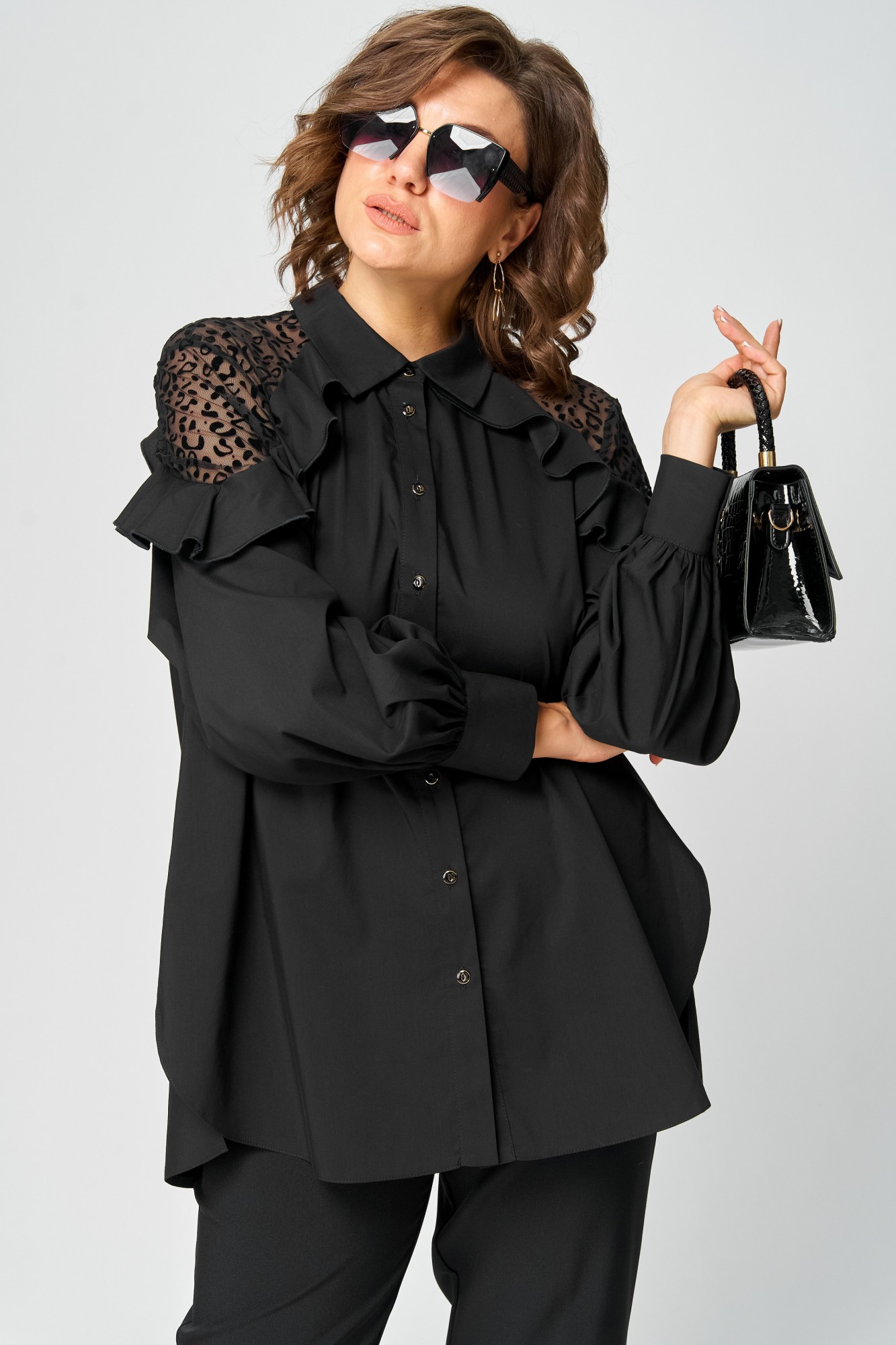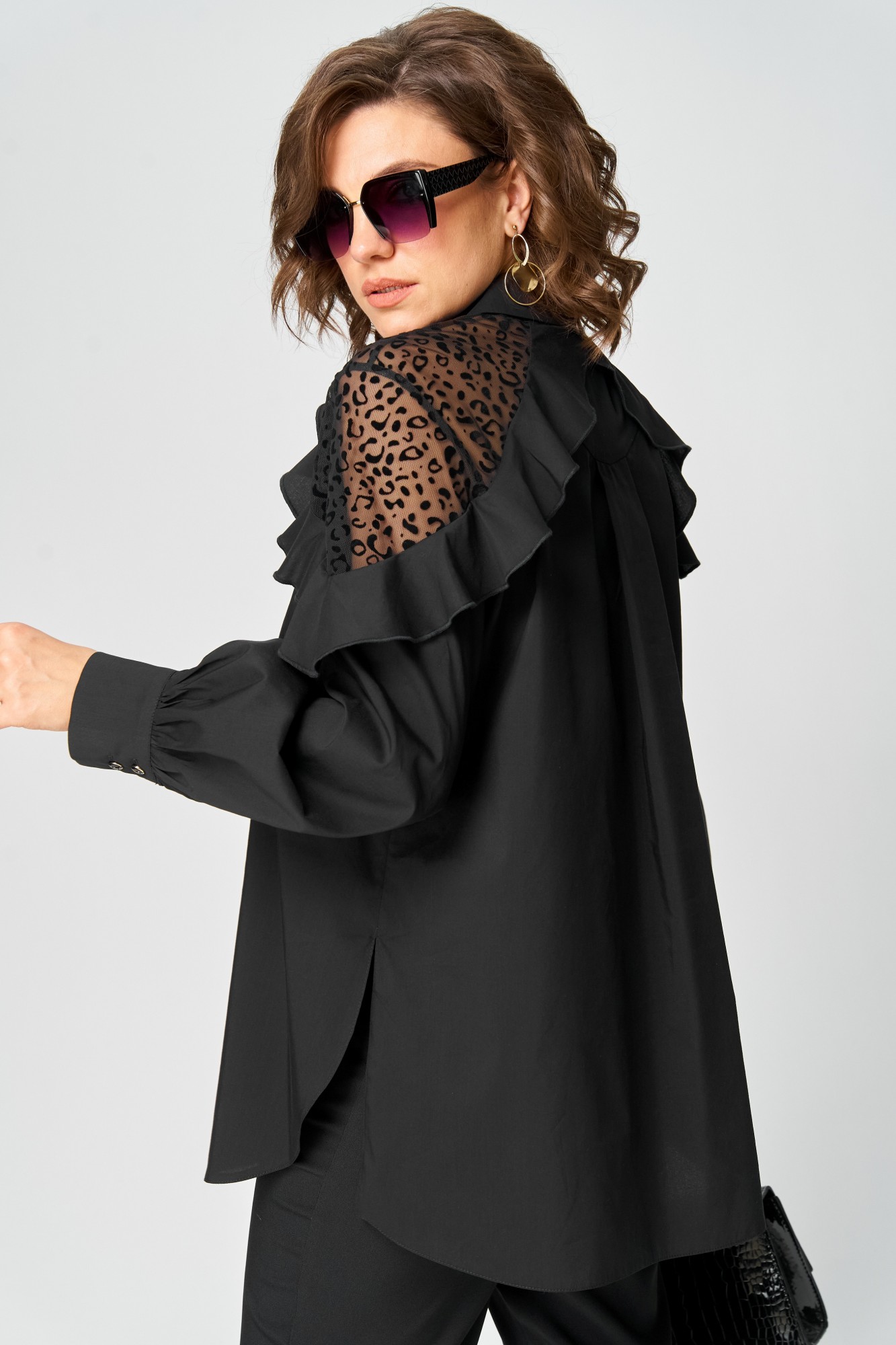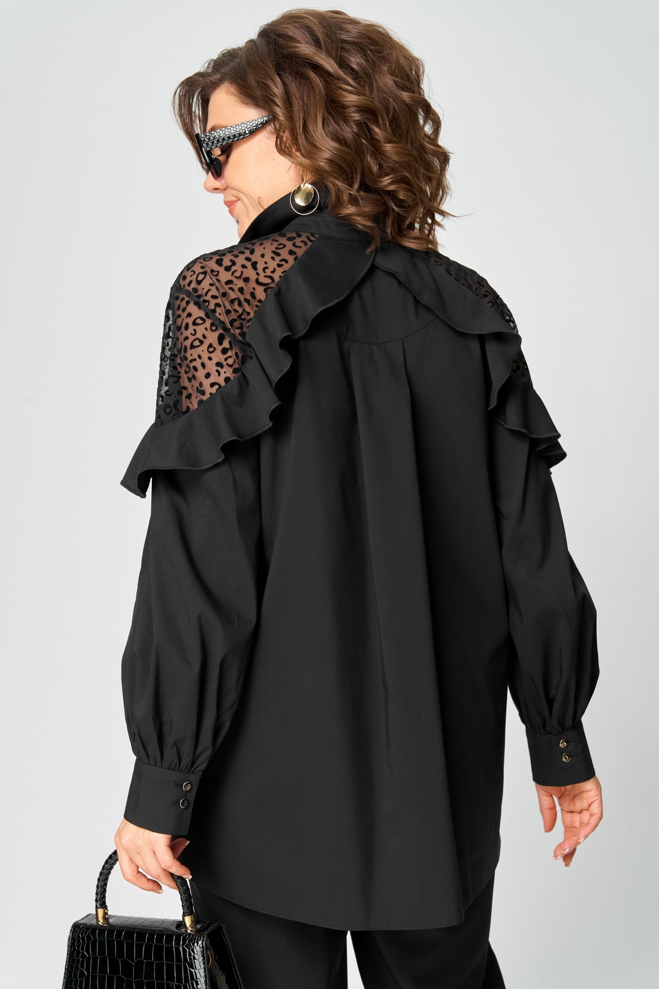 Блузка женская шикарная красивая нарядно-повседневная свободного силуэта выполнена их хлопка в сочетании с элегантным кружевом. Вырез горловины воротник на стойке рубашечного типа, рукав втачной с декоративным подрезом из кружева по низу на притачной манжете. Застежка до верху на обметанные петли и пуговицы. Низ блузы фигурный, в боковых швах обработан разрезы.