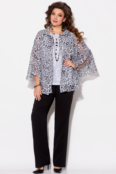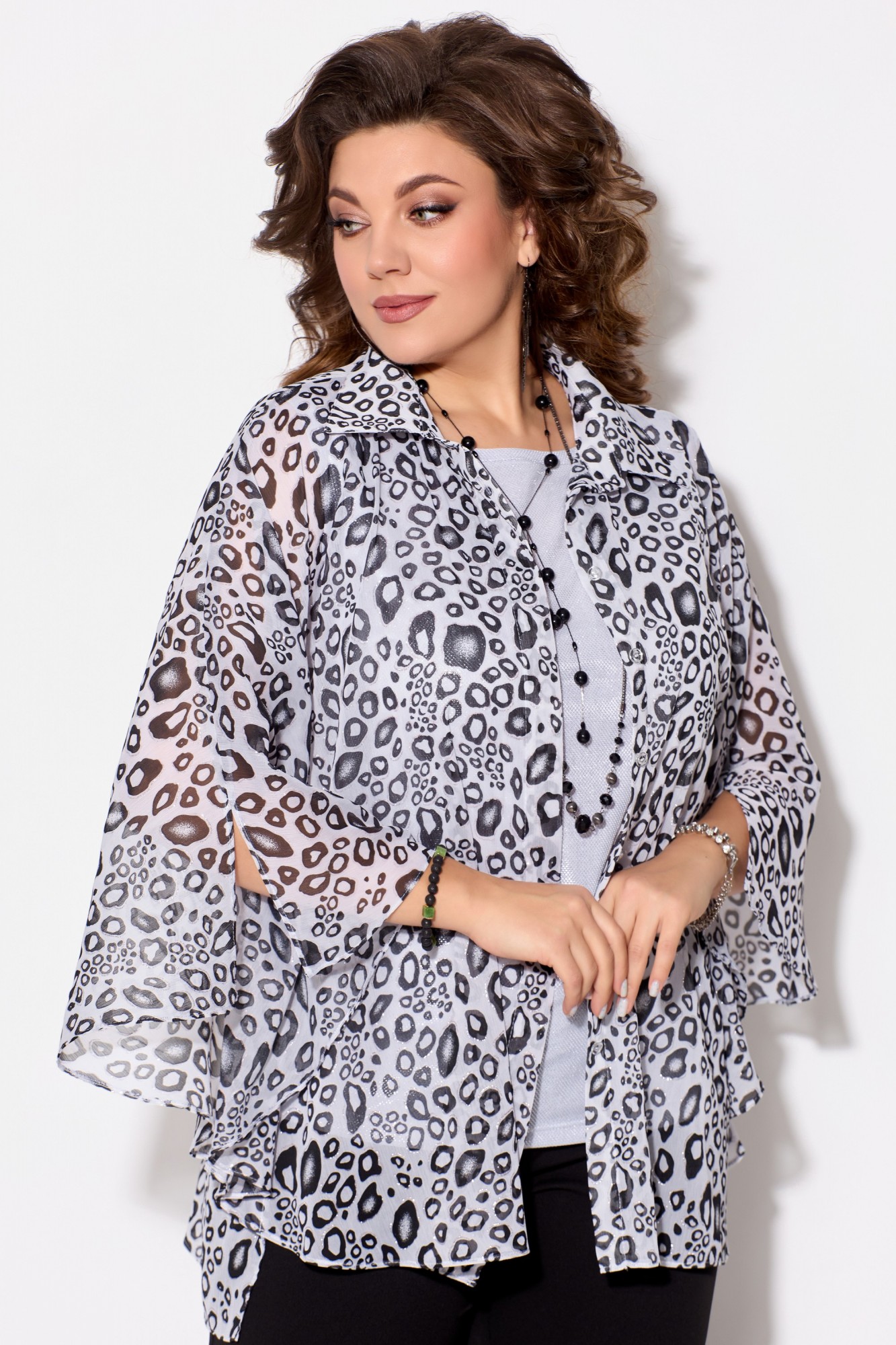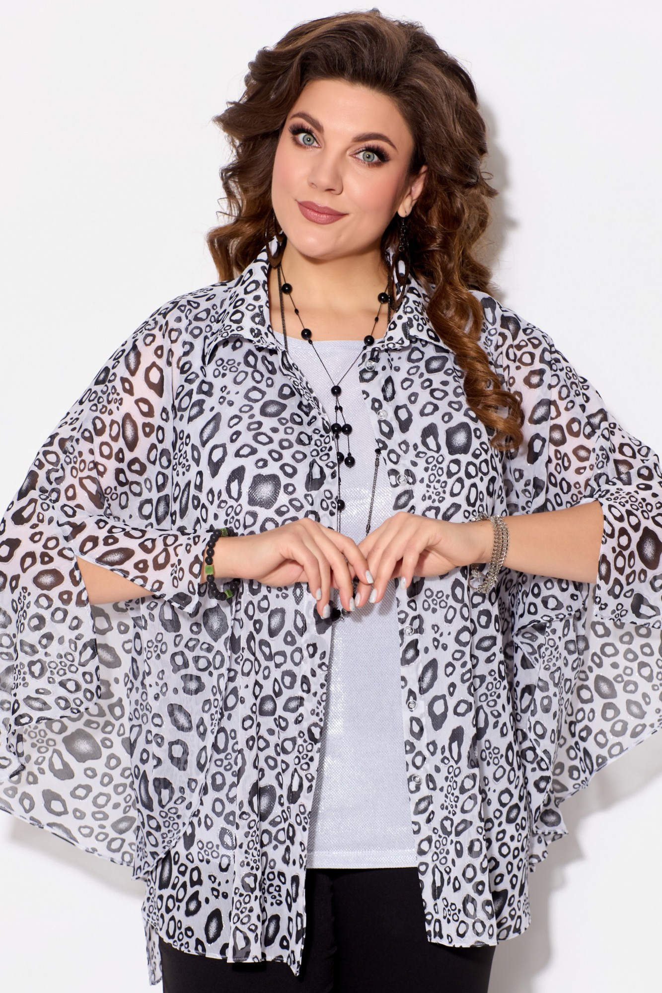 Комплект женский "Ветрана" двойка. Блузка расширенная к низу. Полочка на потайную застежку на петли и пуговицы. Воротник рубашечного типа на стойке. Низ обработан швом в подгибку. Топ прямого силуэта с выточкой по груди. Горловина и пройма обработаны планкой, низ в подгибку.