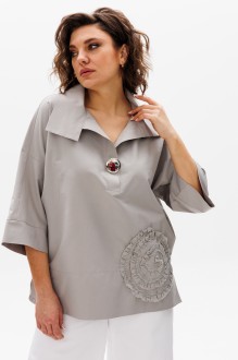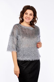 Блузка нарядная прямого силуэта, из интересной ткани с бахромой. Вырез горловины округлой формы, со спущенным рукавом длиной 3/4.