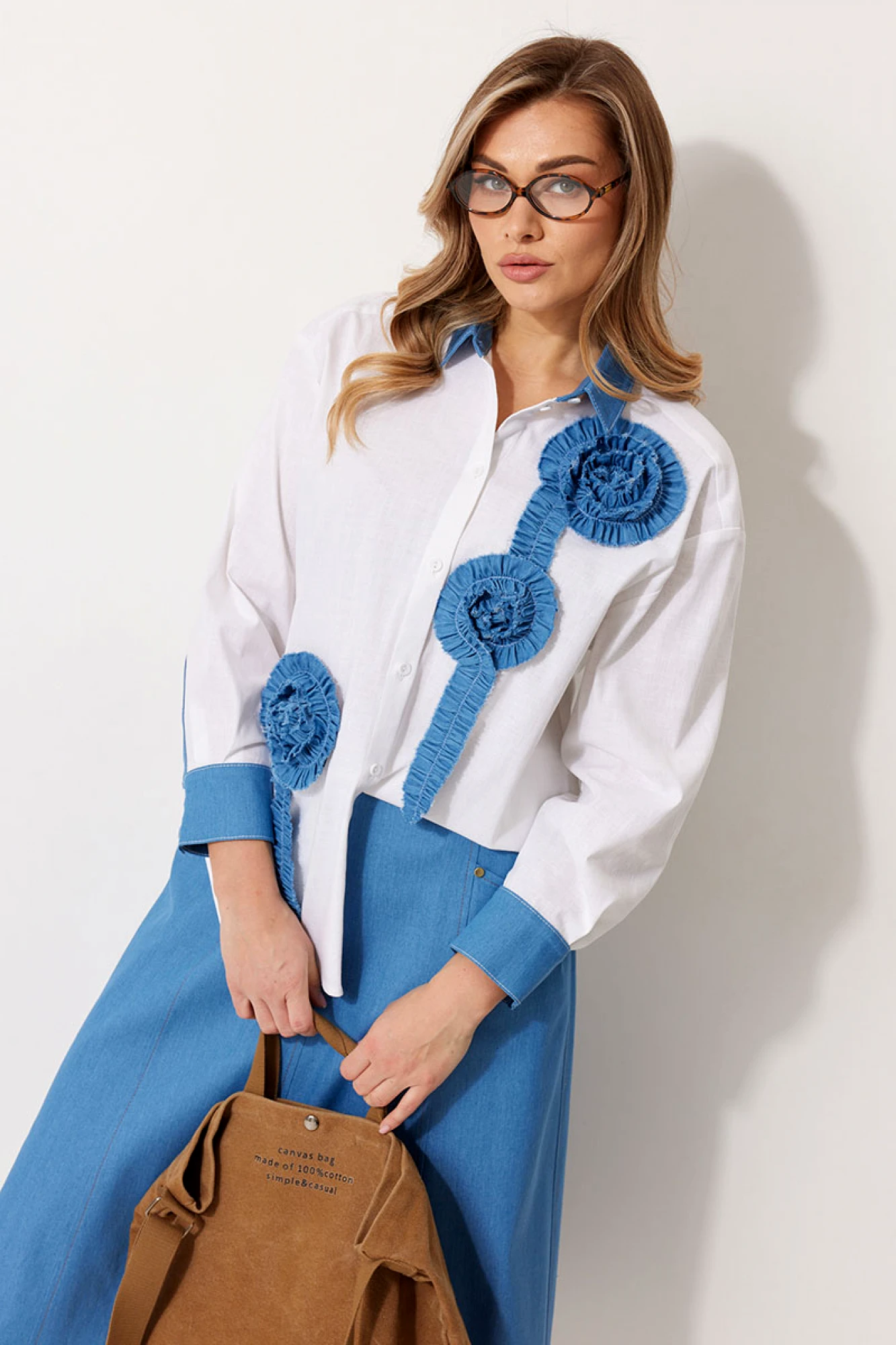 Блузка KALORIS 2276 бело-голубая