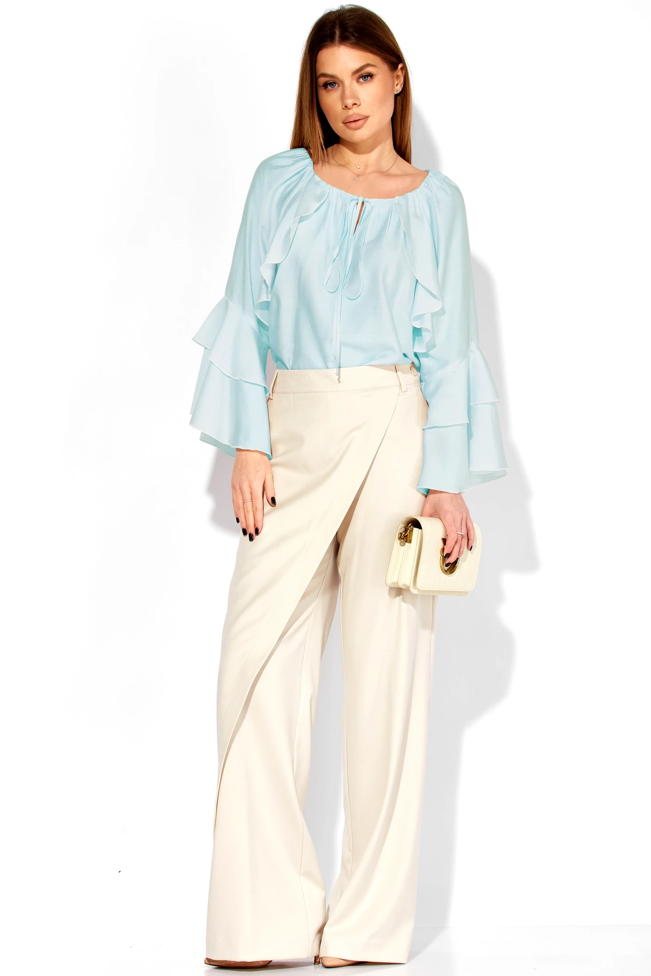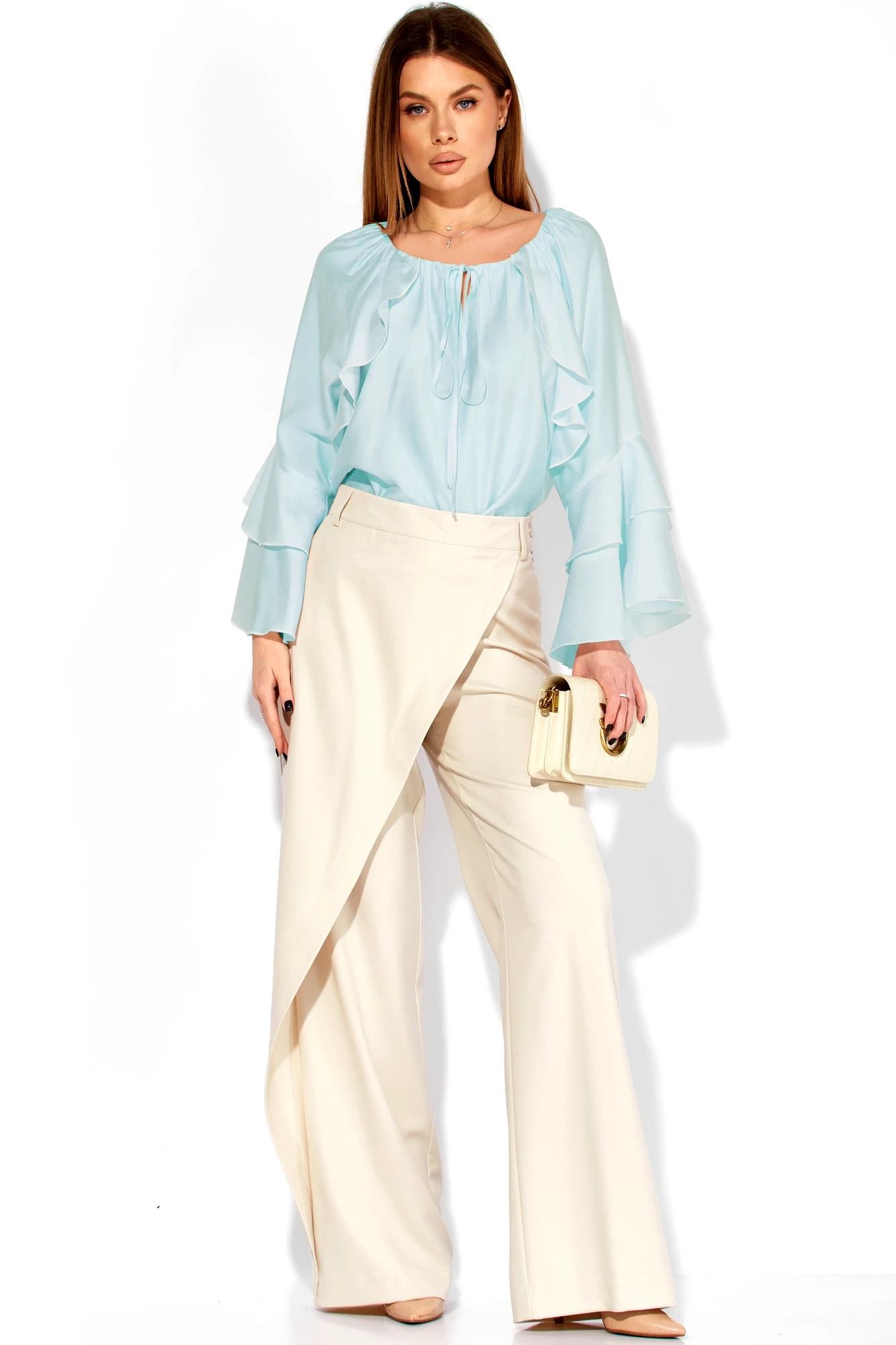 Представляем вам изысканную блузку от LAIKONY, которая станет настоящим акцентом вашего гардероба! Эта модель свободного силуэта идеально облегает фигуру и заканчивается на линии бедер, придавая вам непринужденный и стильный вид. Вырез горловины округлый со сборкой и завязками подчеркивает вашу шею и декольте, создавая утонченный образ. В боковых швах элегантные разрезы. Спинка блузки оформлена кокеткой, а в центре нижней части располагается аккуратная складка, придающая модели объем и динамичность. Блузка выполнена из мягкой вискозы, не тянется. Эта блузка станет идеальным выбором как для повседневной носки, так и для особых случаев. Сочетайте ее с юбками, брюками или шортами — она легко впишется в любой стиль! Не упустите возможность добавить эту великолепную блузку в свой гардероб! На фото с нашими брюками L-024. Также будет прекрасно смотреться с брюками L-942-2 нашей весенней коллекции.