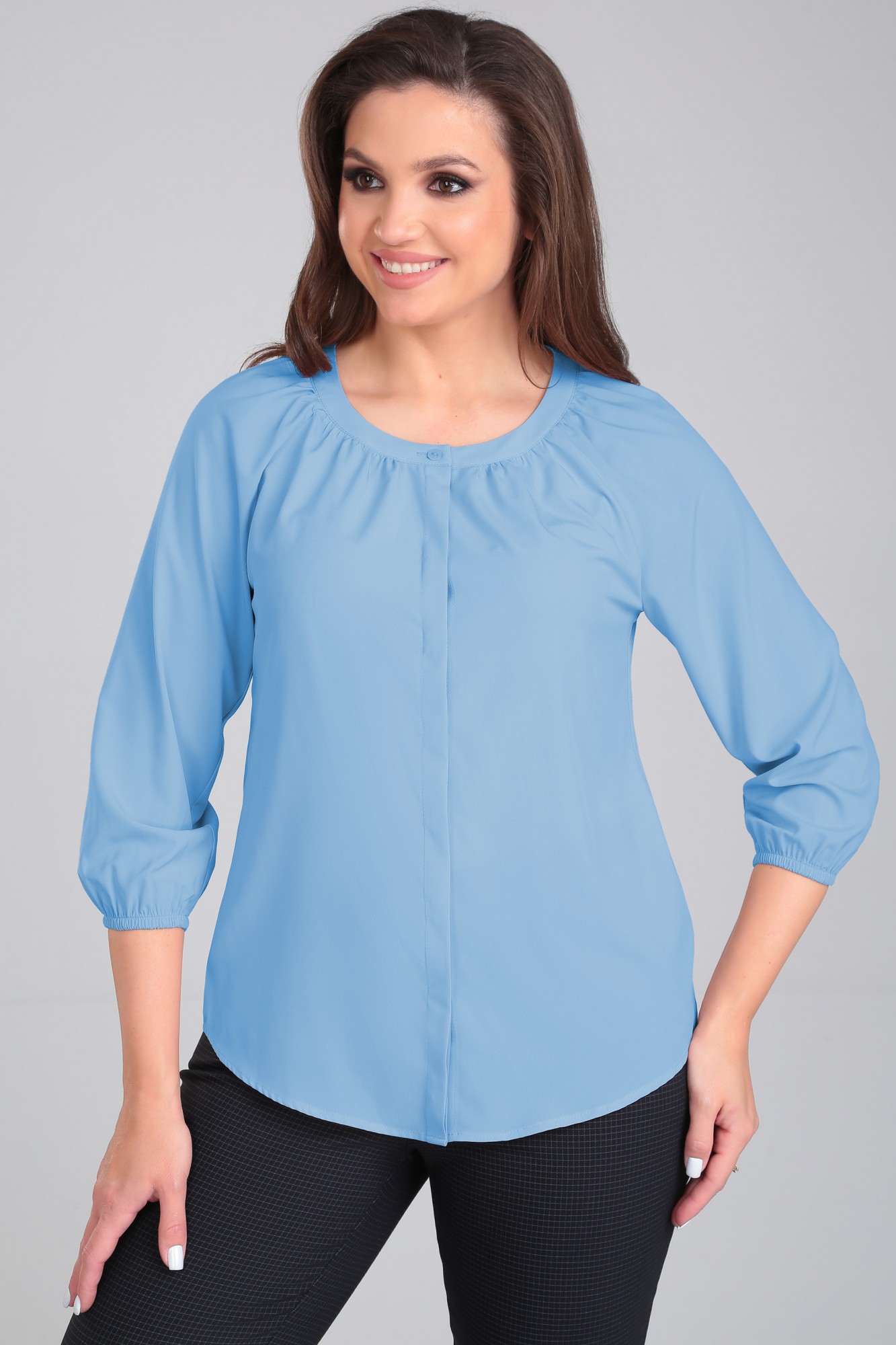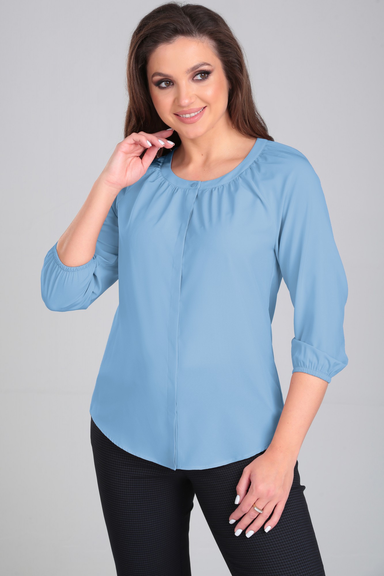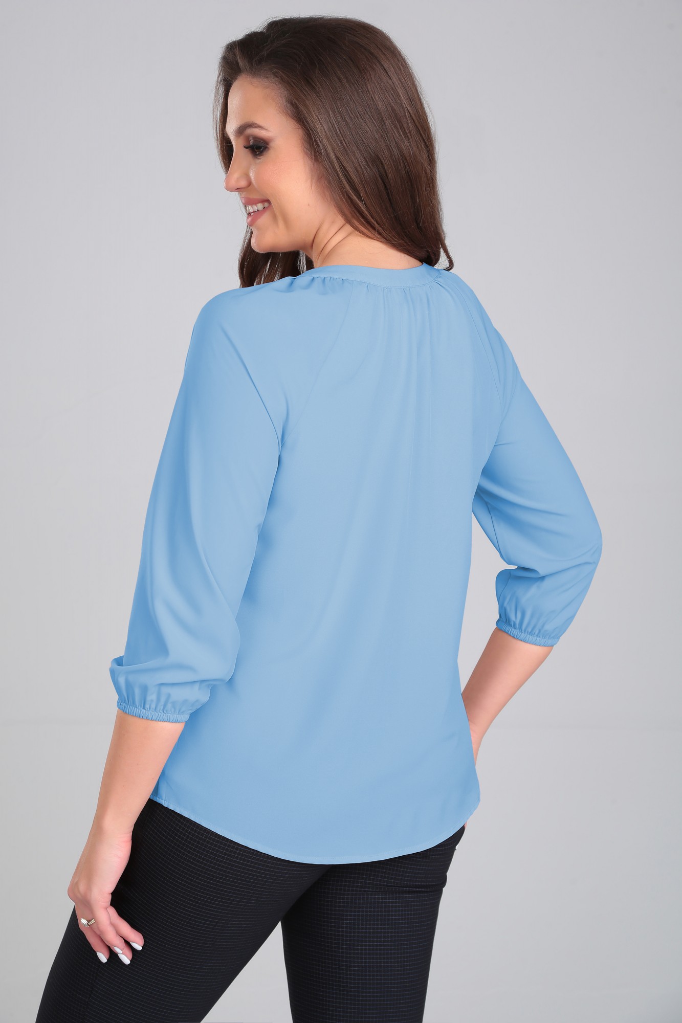 Блуза из креп-шифона. Рукав реглан, 3/4 на резинке по низу. Застежка центральная бортовая с цельнокроеной планкой застегивающаяся на потайные петли-пуговицы, вырез горловины круглый с притачной планкой и сборкой по горловине.