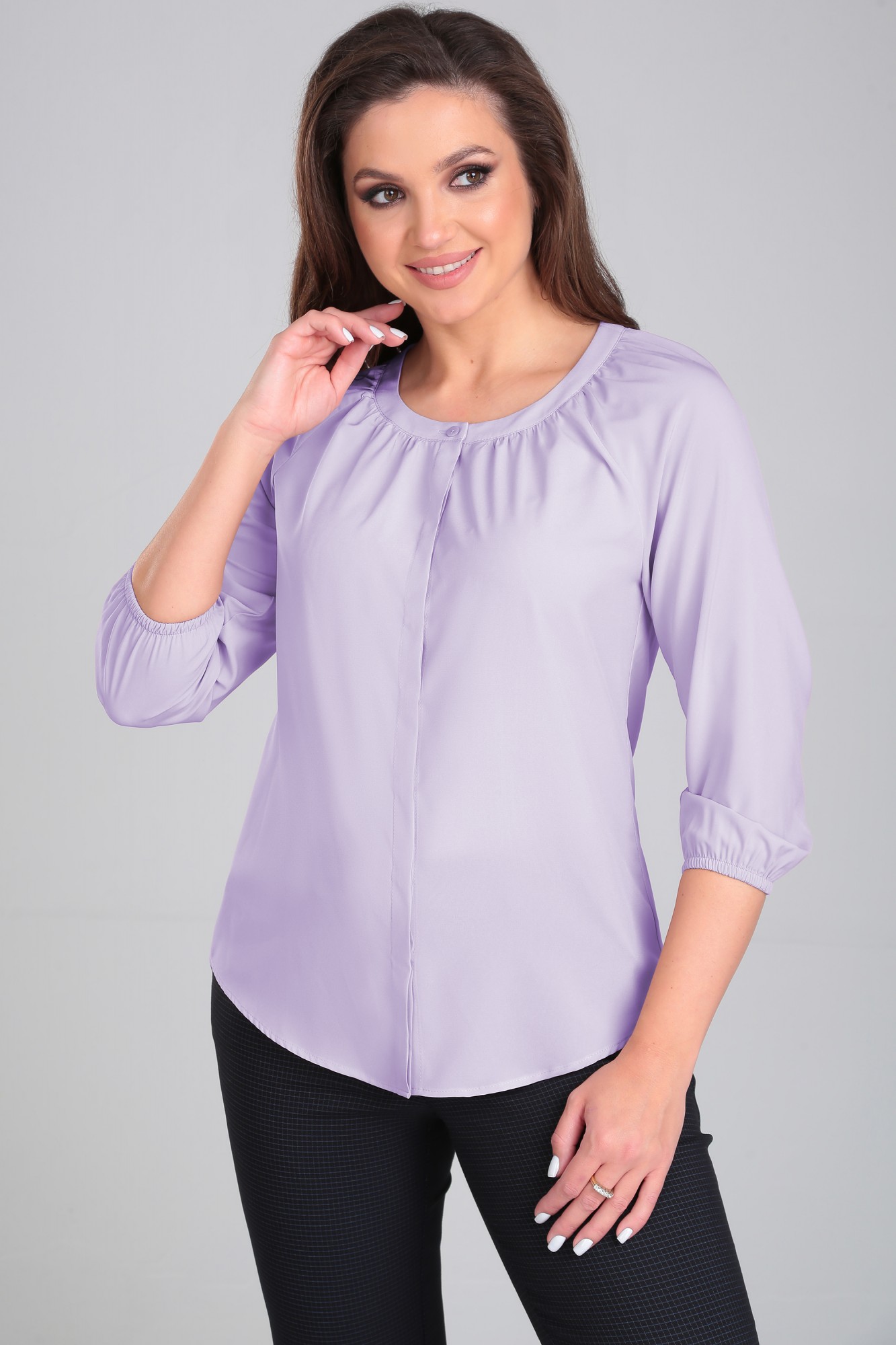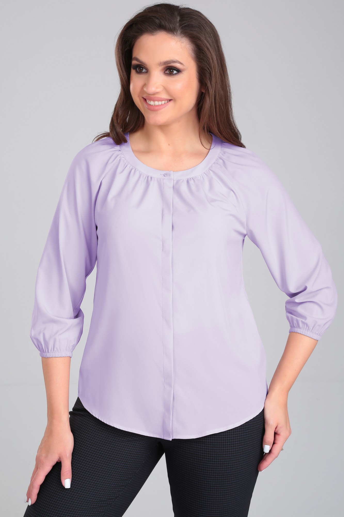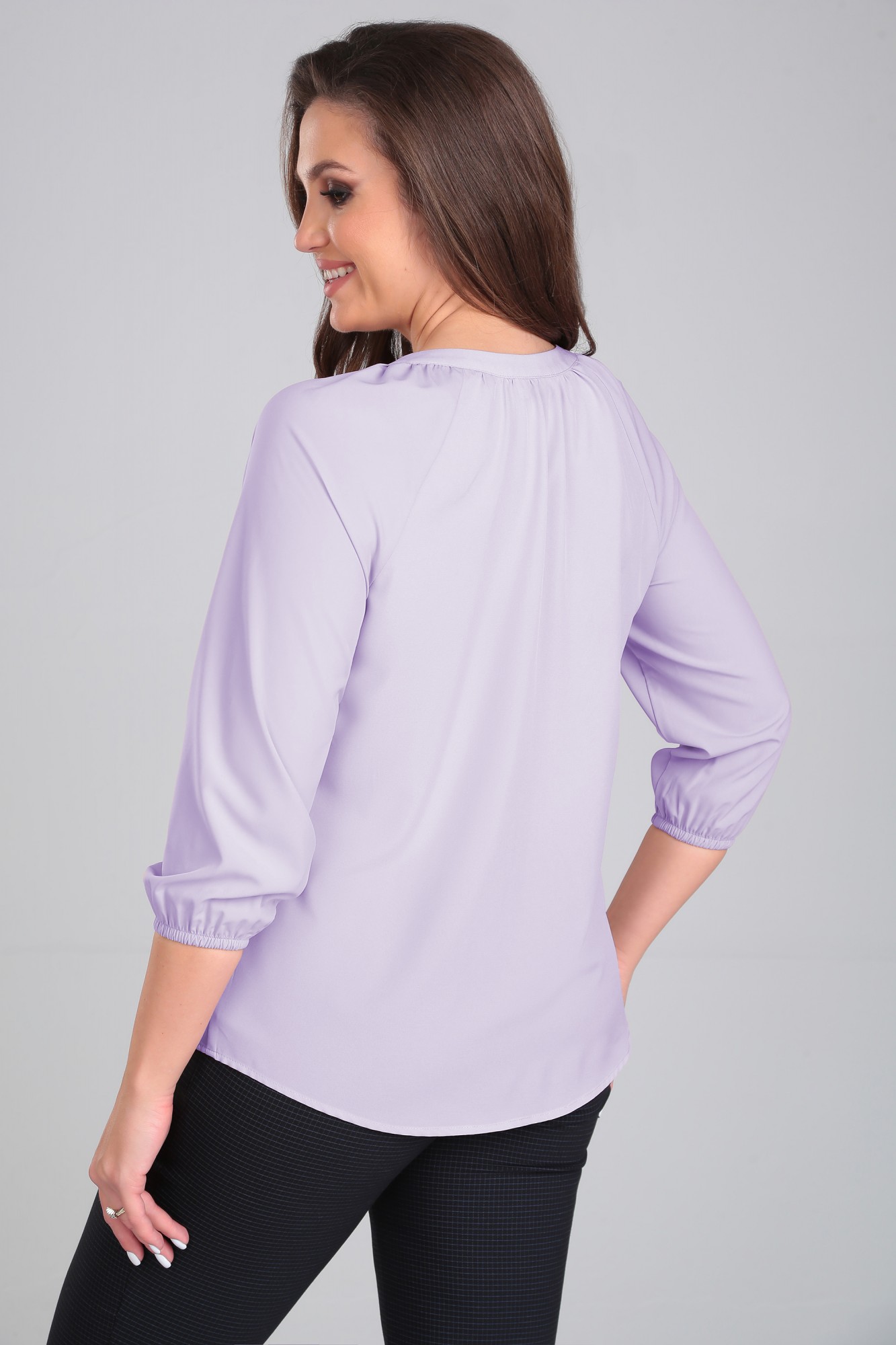 Блуза из креп-шифона. Рукав реглан, 3/4 на резинке по низу. Застежка центральная бортовая с цельнокроеной планкой застегивающаяся на потайные петли-пуговицы, вырез горловины круглый с притачной планкой и сборкой по горловине.