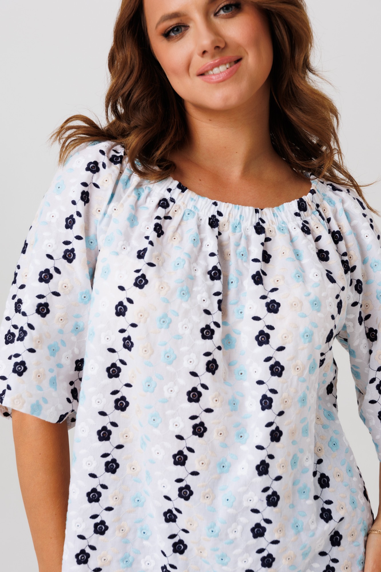Летняя женская блузка из ткани шитье с рукавом. Блуза легкая, модная, идеально подходит на лето, позволит выглядеть ярко и элегантно, а чувствовать себя максимально комфортно. Красивая модная базовая оверсайз блузка больших размеров имеет свободный крой и не сковывает движения, обеспечивает оптимальную посадку практически на любую фигуру. Подойдет для каждого случая - будь то деловой стиль на работу в офисе, повседневный или вечерний образ. Свободная, как футболка, кофточка из экологичного материала будет удобна и для беременных. Невесомая блуза позволит легко создавать как нарядные, так и базовые образы на каждый день.
