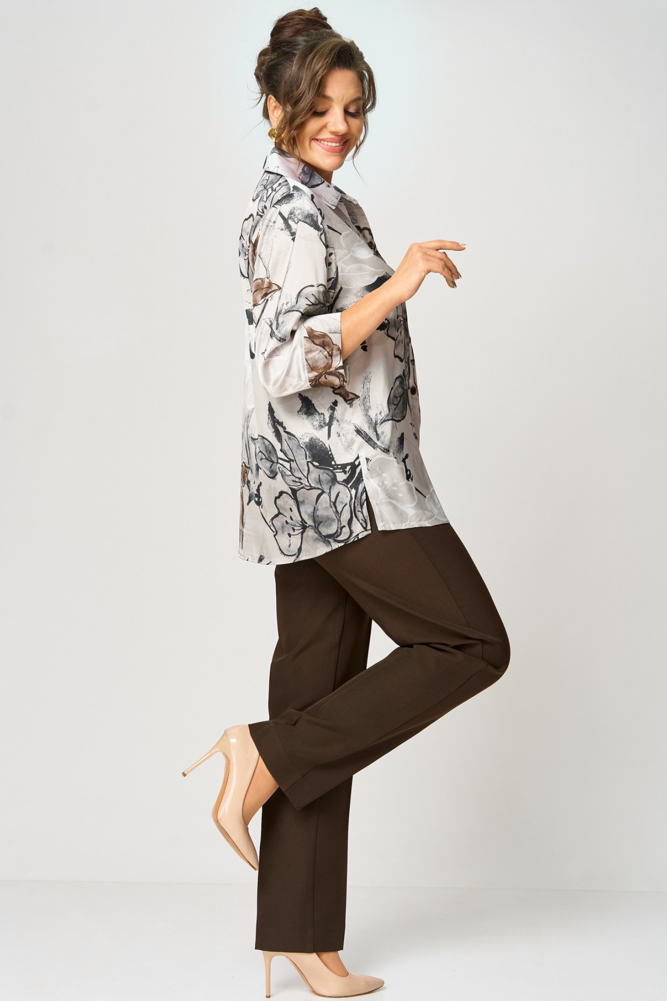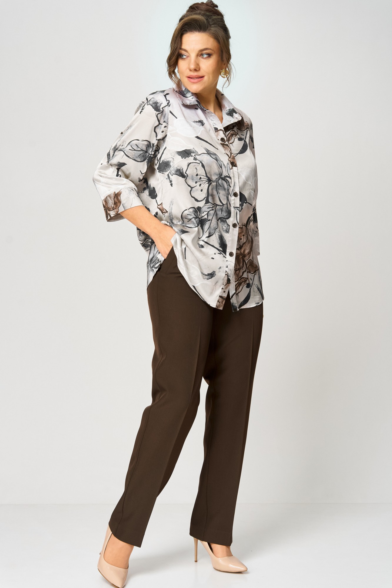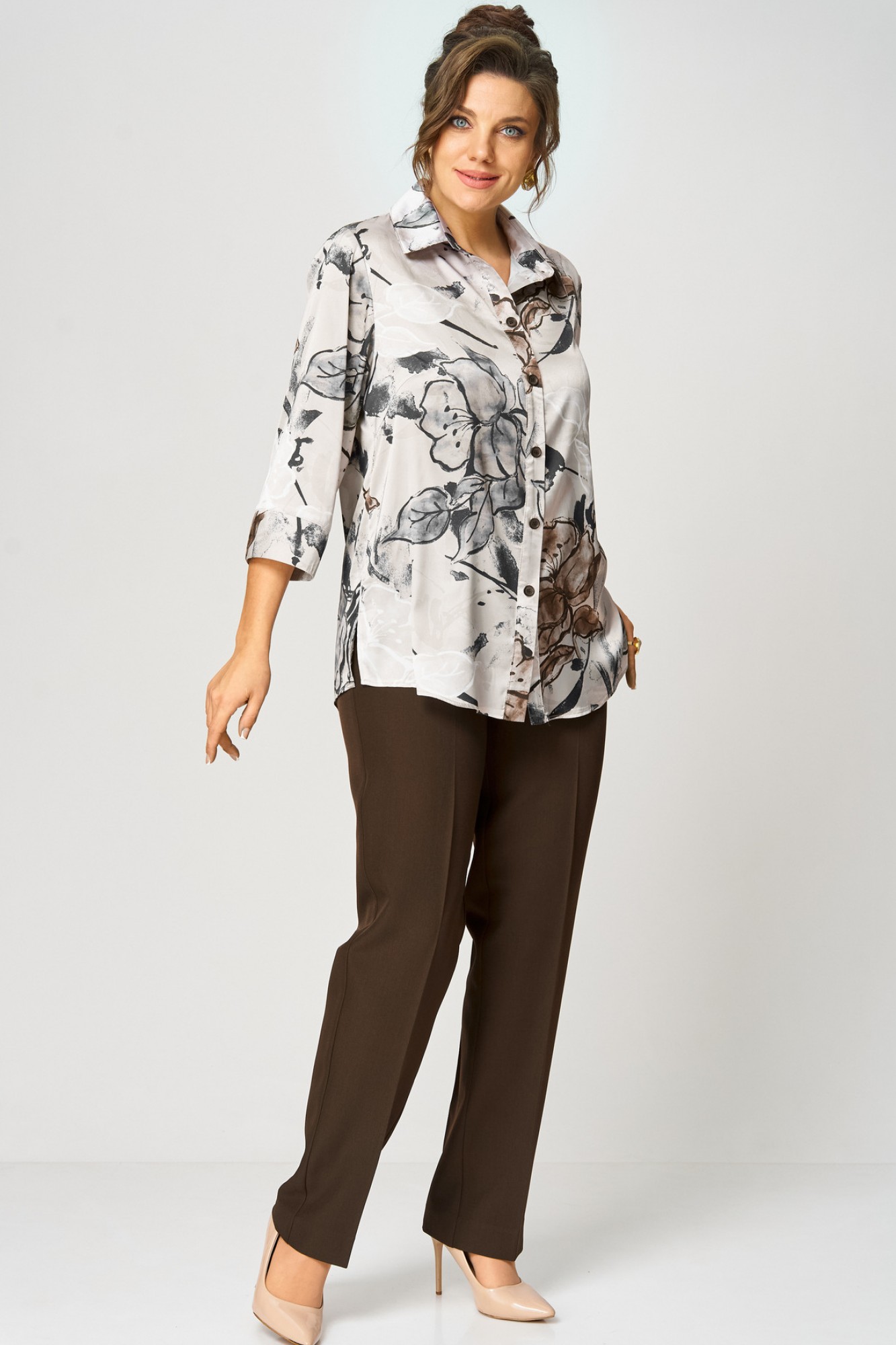 Блузка БелЭльСтиль 877 бежево-коричневый