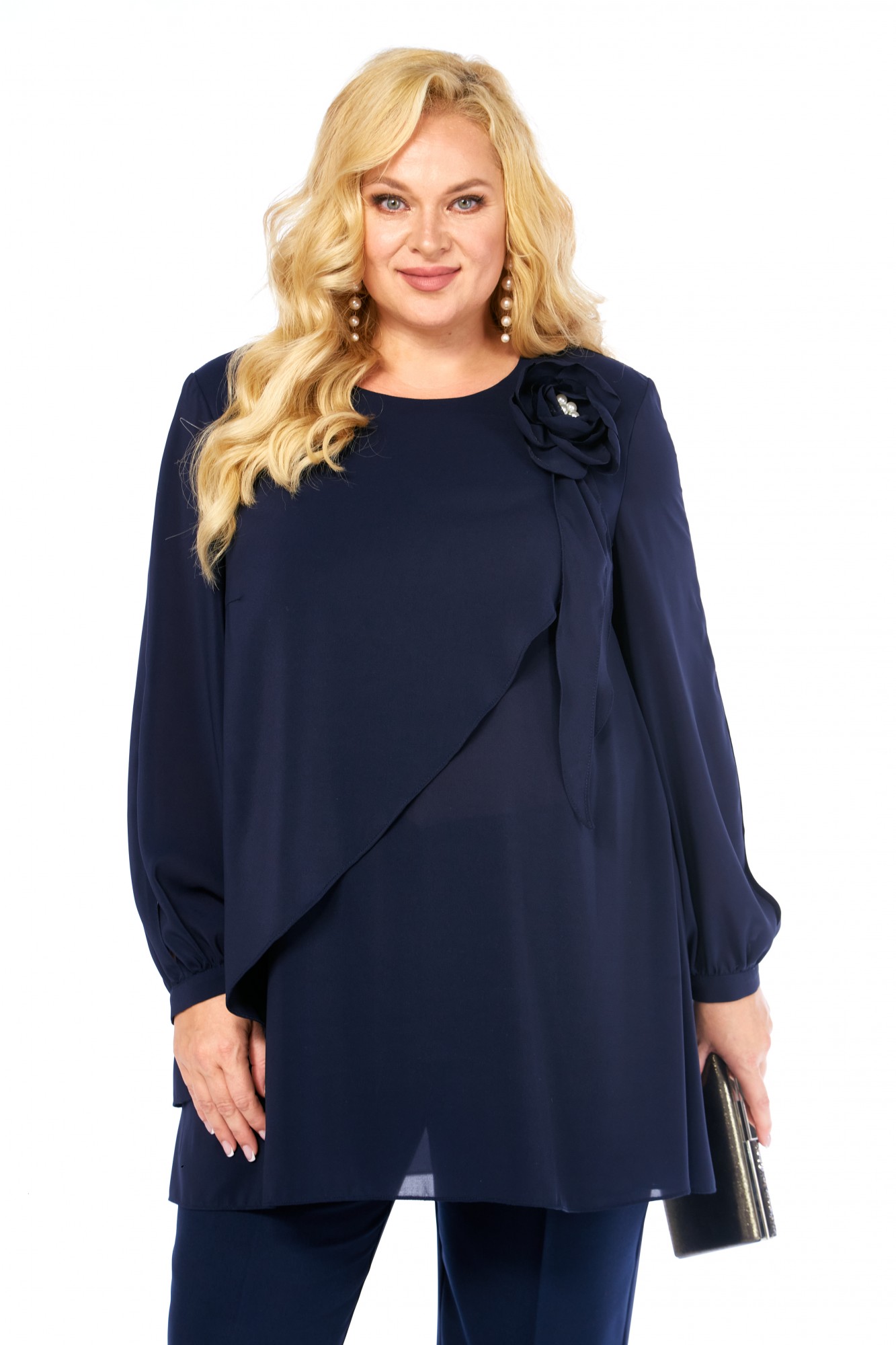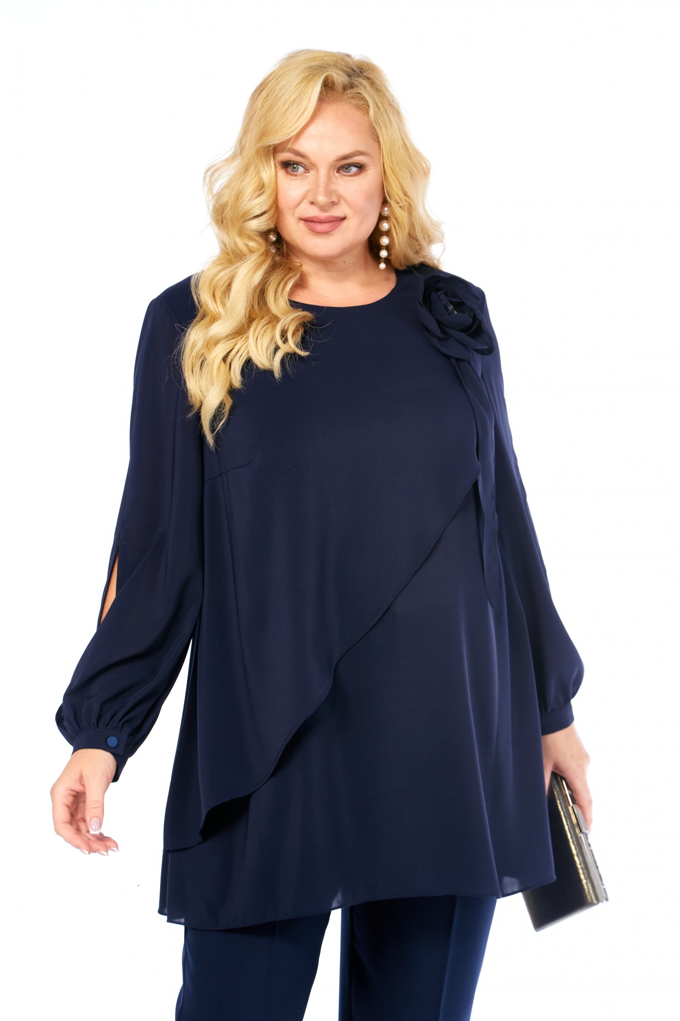 Блуза полуприлегающего кроя позволит чувствовать себя ярко и уверенно, выполнена из струящегося из креп-шифона. Вырез горловины аккуратной округлой формы. Рукав втачной, свободный, низ имеет фигурный разрез, что обеспечивает легкость и декоративный эффект. Декоративный элемент в виде изящного цветка входит в комплектацию (элемент съемный).