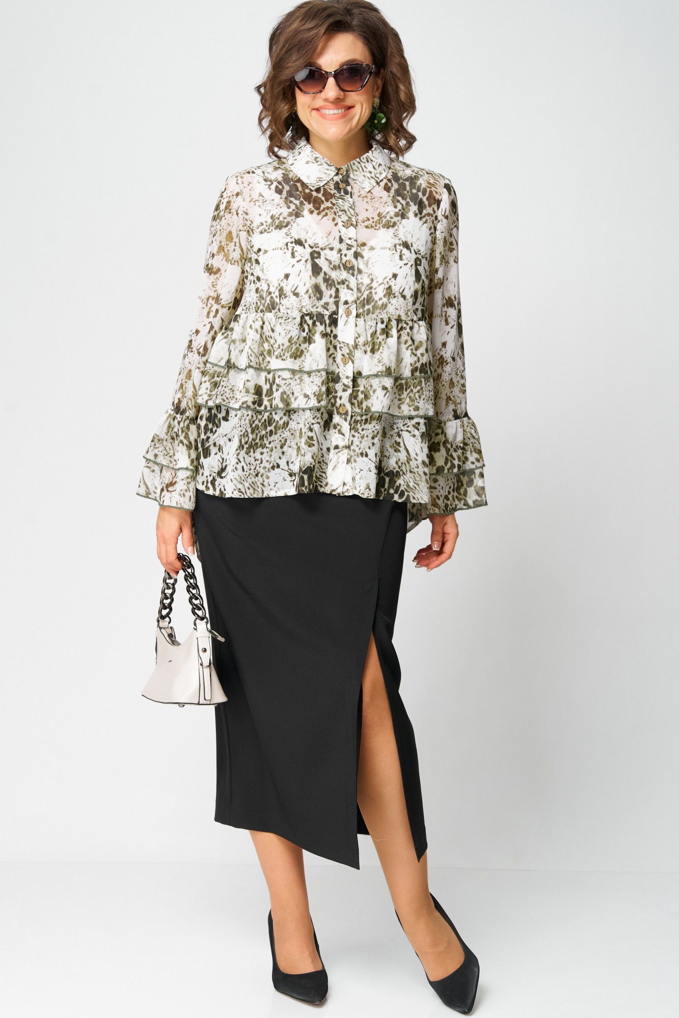 Блузка EVA GRANT 7221 принт олива