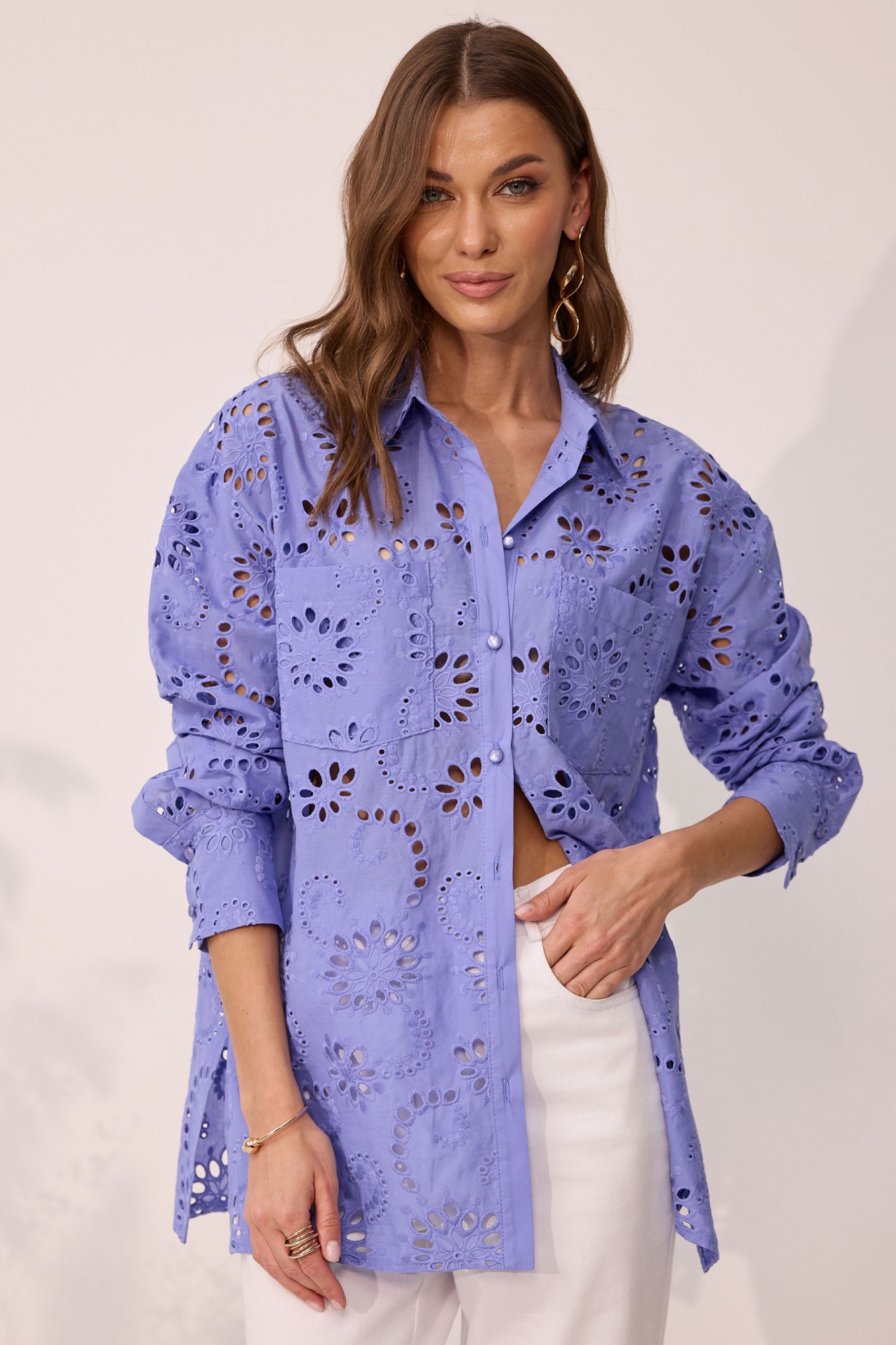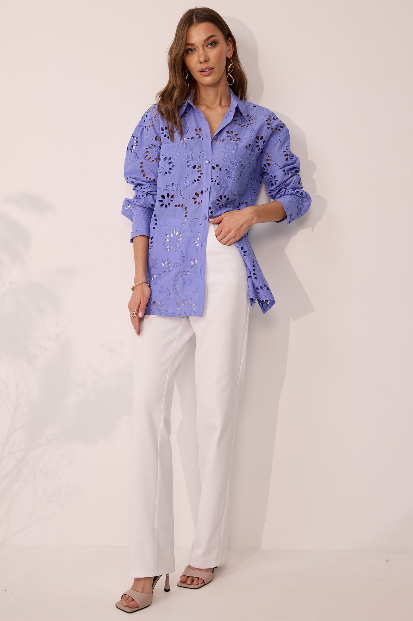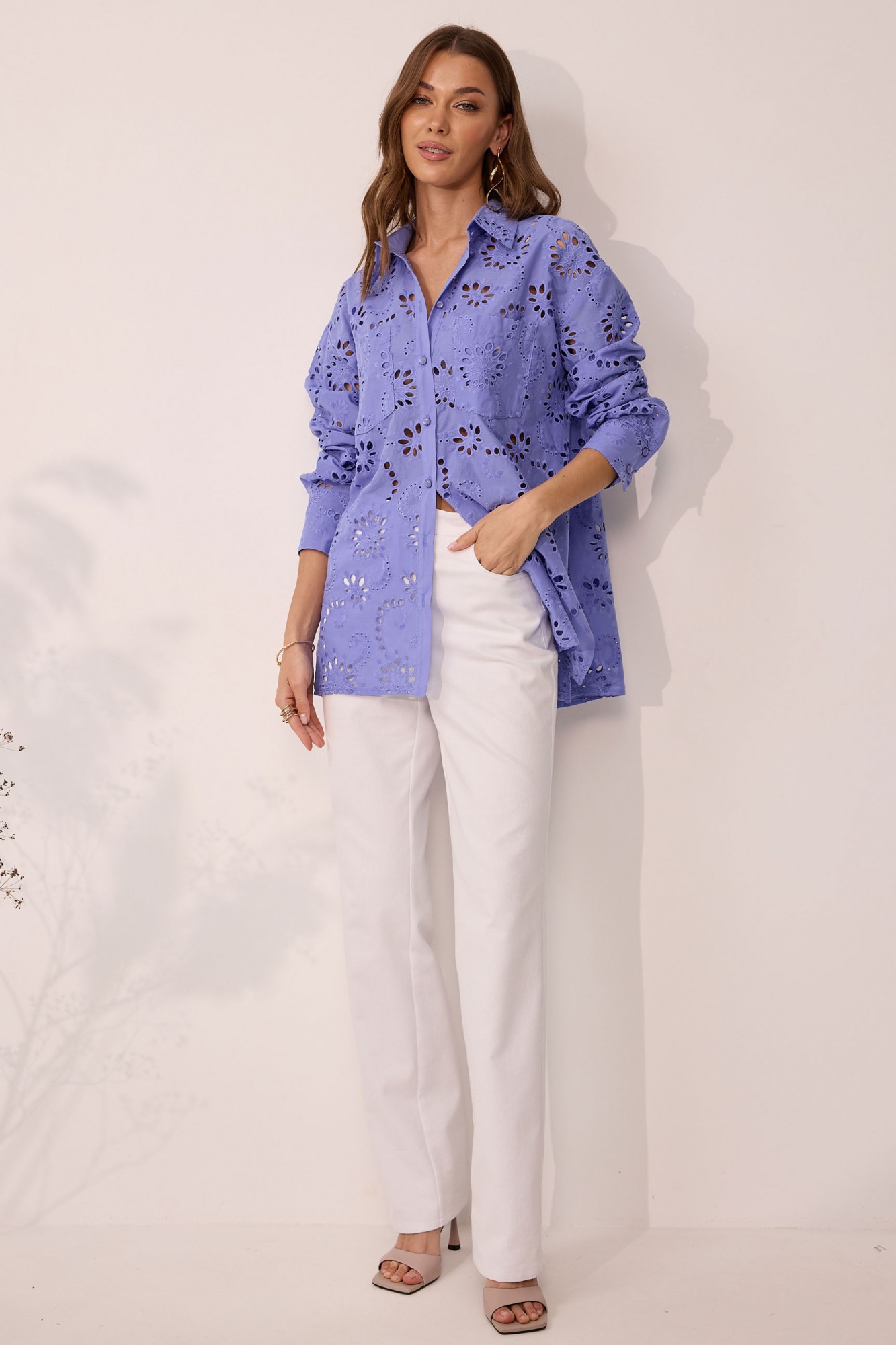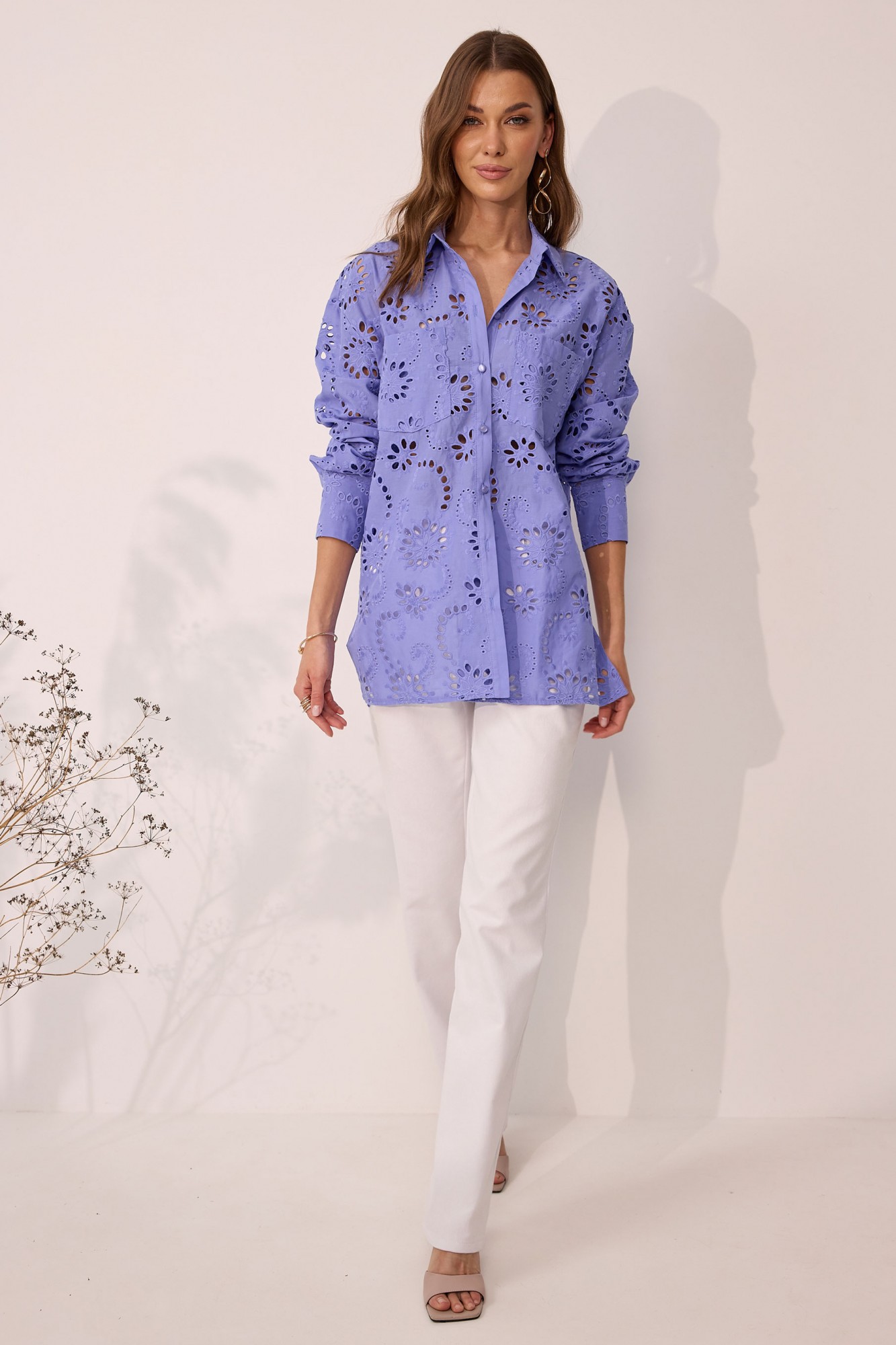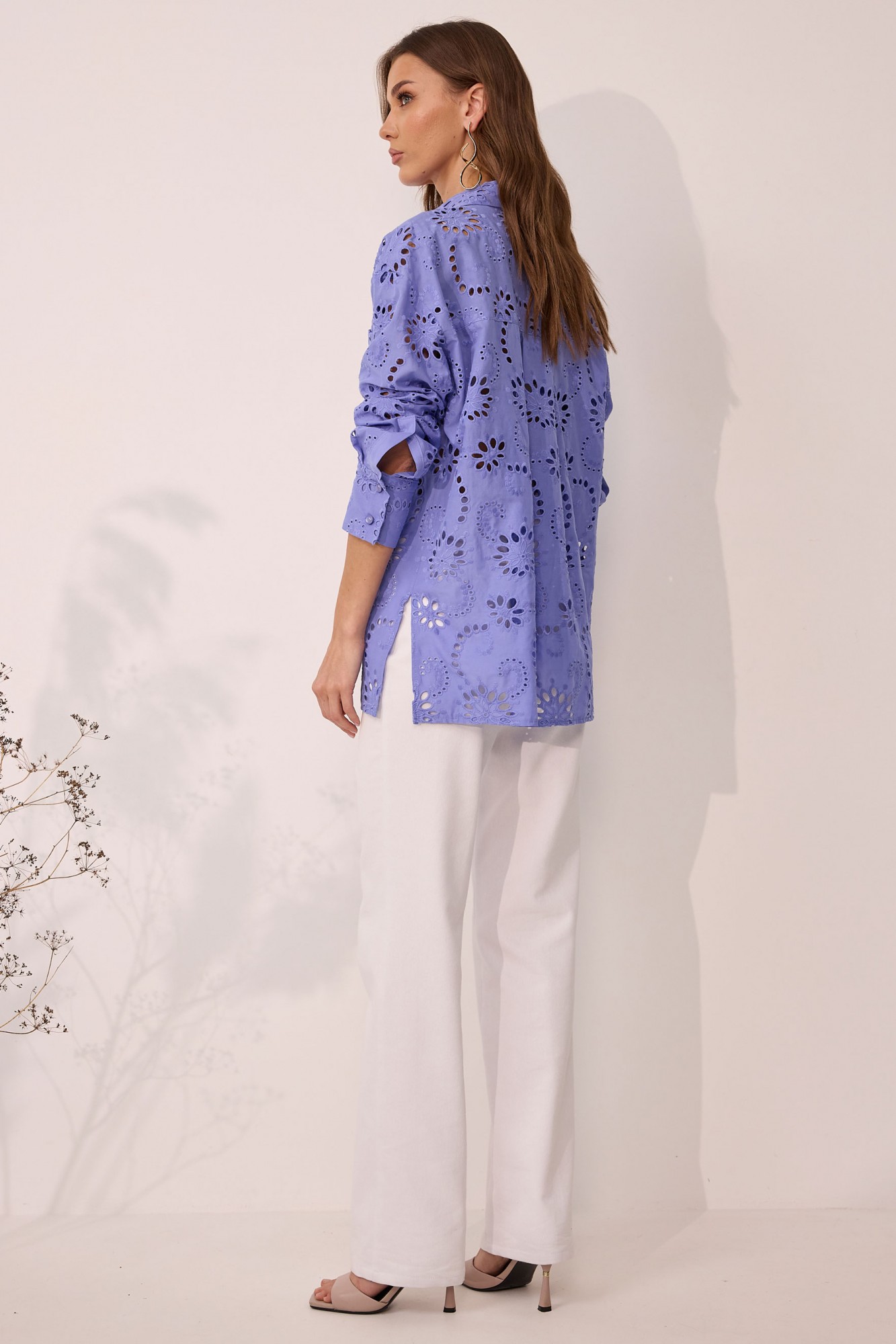 Элегантная белая блузка из роскошного ришелье создаст безупречный образ для вашего гардероба. Блузка с классическим рубашечным воротником и центральной застежкой на петли и пуговицы обладает чистыми линиями и изысканным силуэтом. Длинные втачные рукава завершаются манжетами также на пуговицы, добавляя формальный штрих. Нагрудные карманы на передней части придают функциональность, в то время как оригинальные складки и кокетка на спинке дополняют дизайн, обеспечивая прекрасную посадку. Блузка дополнена деликатными разрезами по боковым швам, подчеркивающими её утончённый стиль. Идеальный выбор для создания как деловых, так и повседневных образов.