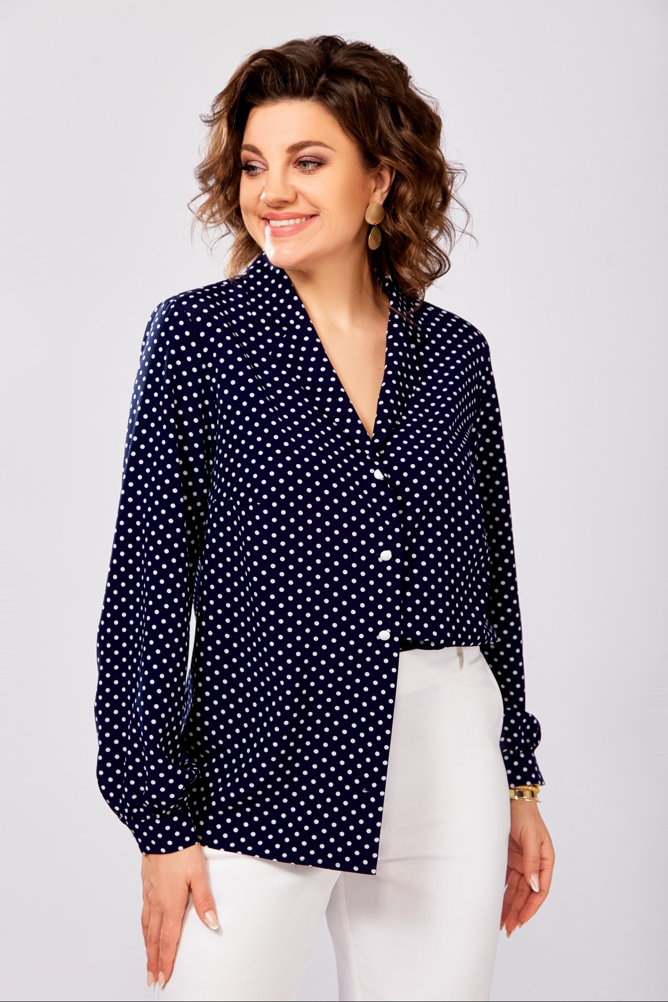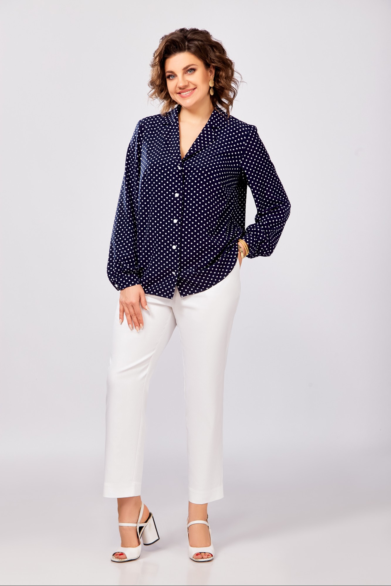 Блузка женская, прямого силуэта. По переду блузы обработаны нагрудные вытачки. Воротник – пиджачного типа. Застёжка центральная на петли и декоративные пуговицы. Спинка цельнокроеная. Рукав втачной одношовный, со сборкой. По низу рукава - притачная манжета, застёгивающаяся на петлю и декоративную пуговицу. Ремень не входит в комплект. Блуза прекрасно сочетается с брюками Модель 305,342.